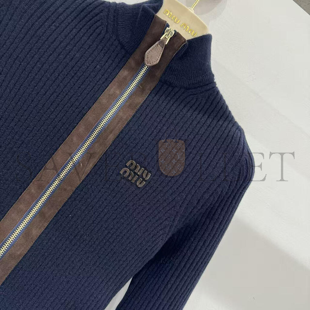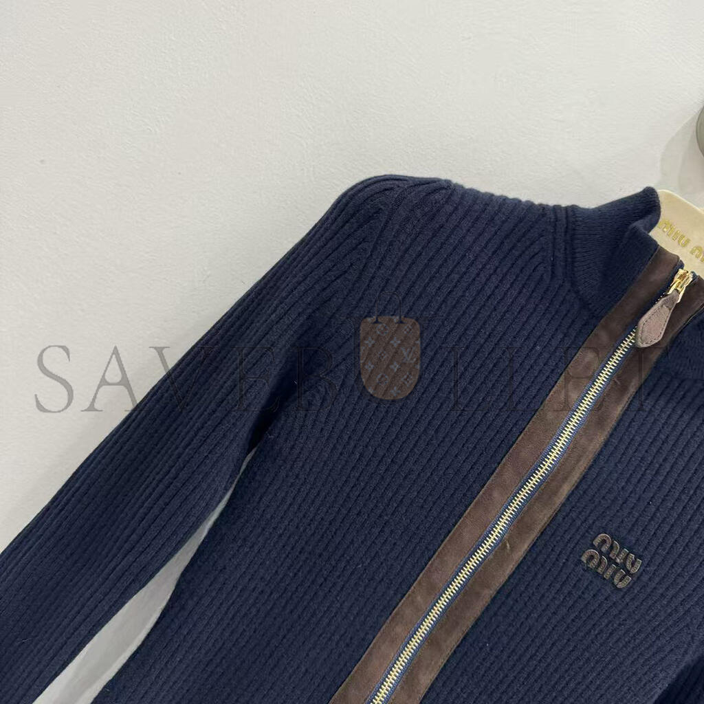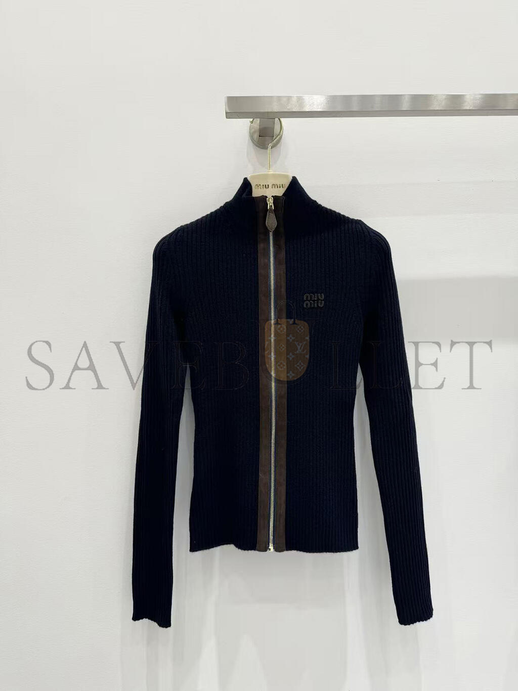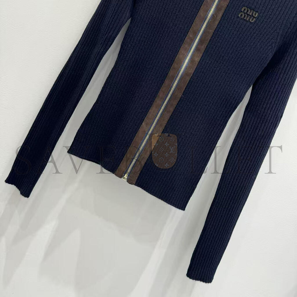 MIU MIU CASHMERE AND LEATHER ZIPPER CARDIGAN MMF992