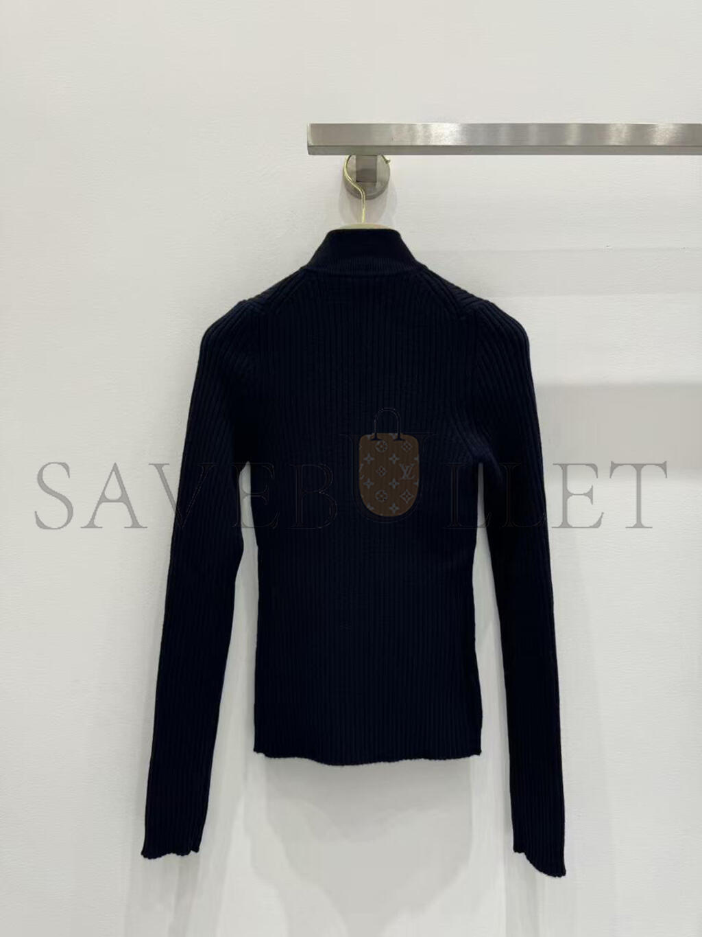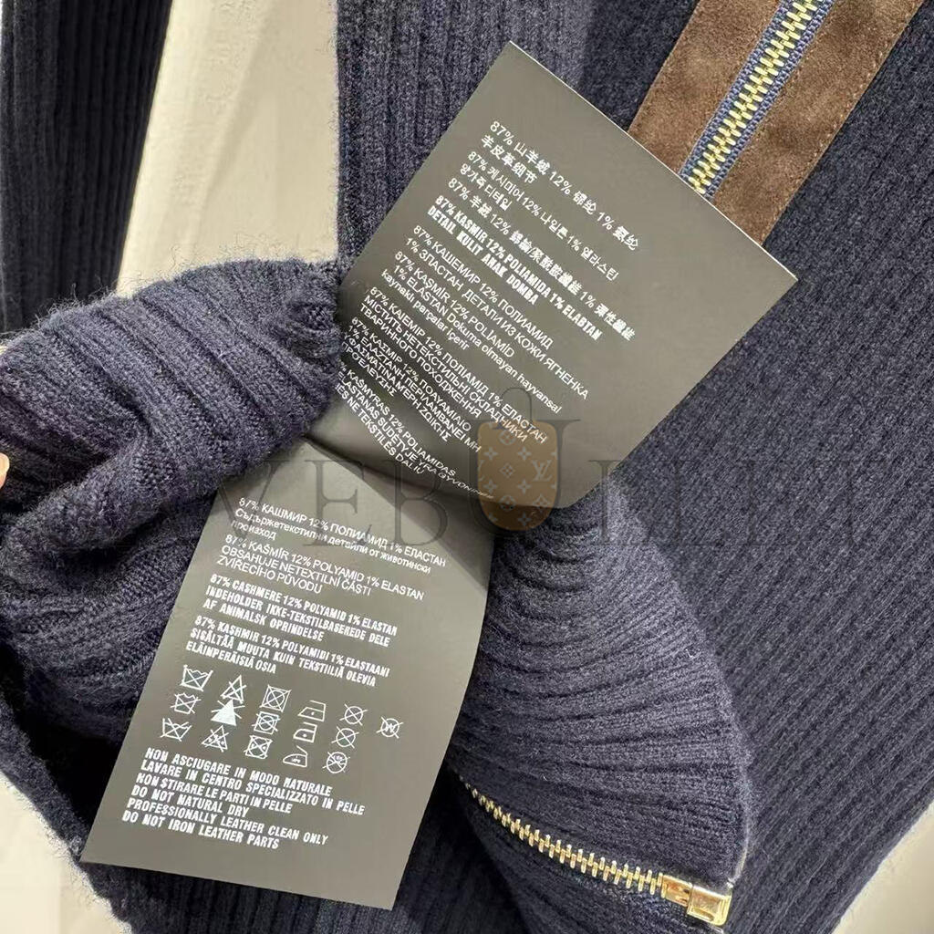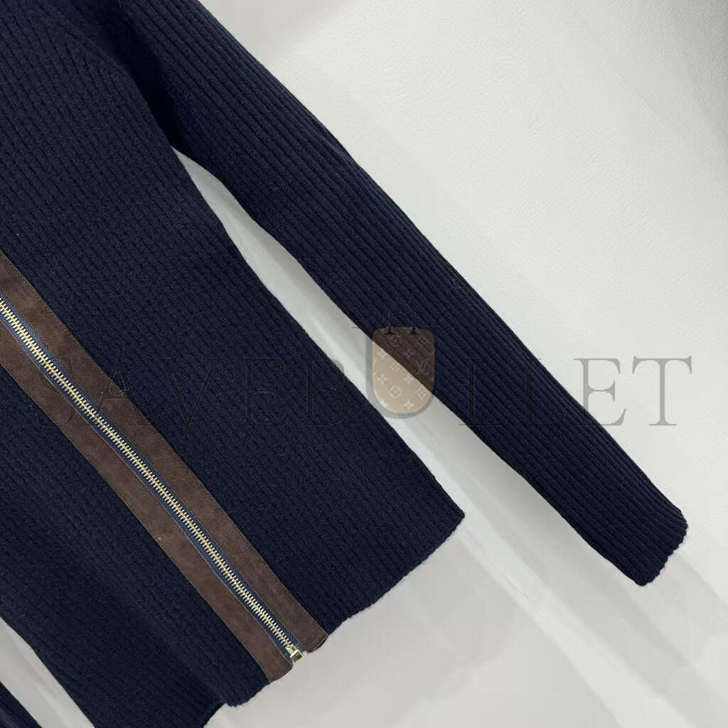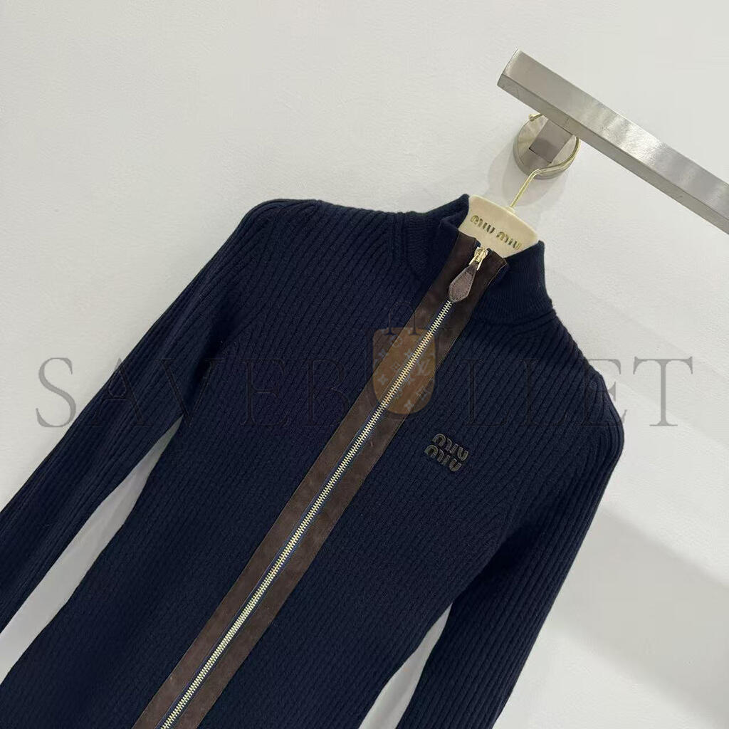 MIU MIU CASHMERE AND LEATHER ZIPPER CARDIGAN MMF992