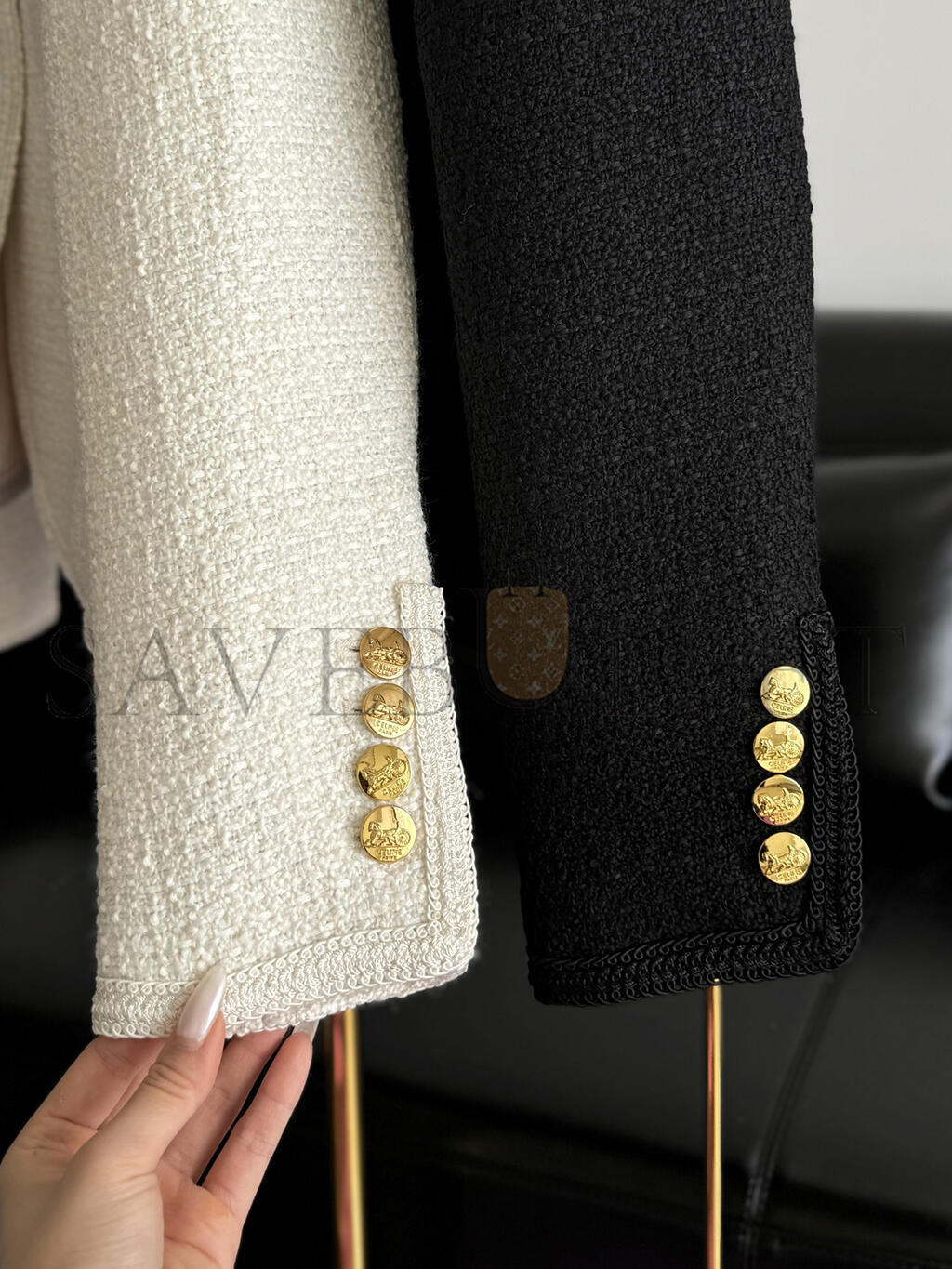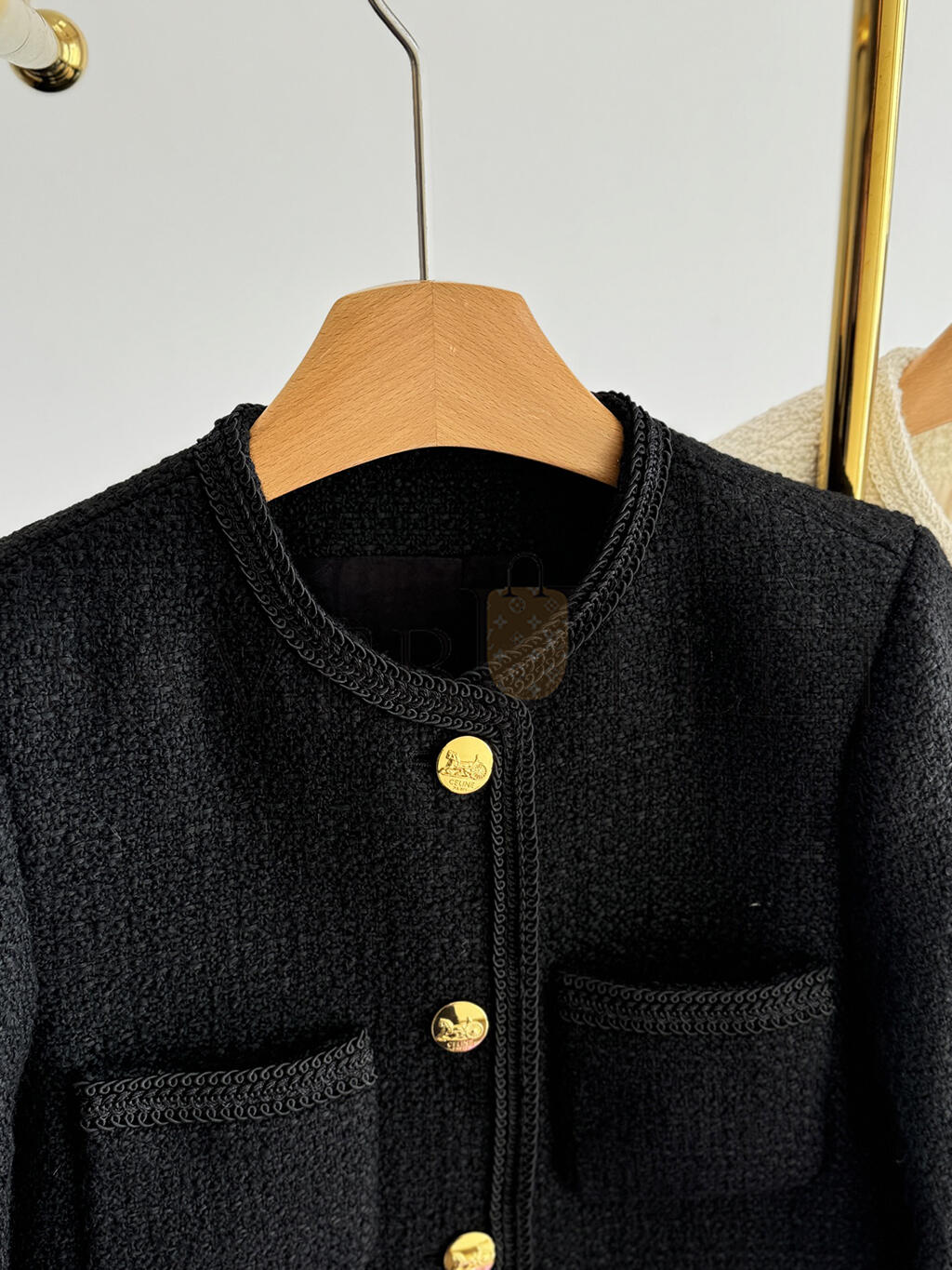 CELINE PATCH POCKET TWEED JACKET BLACK