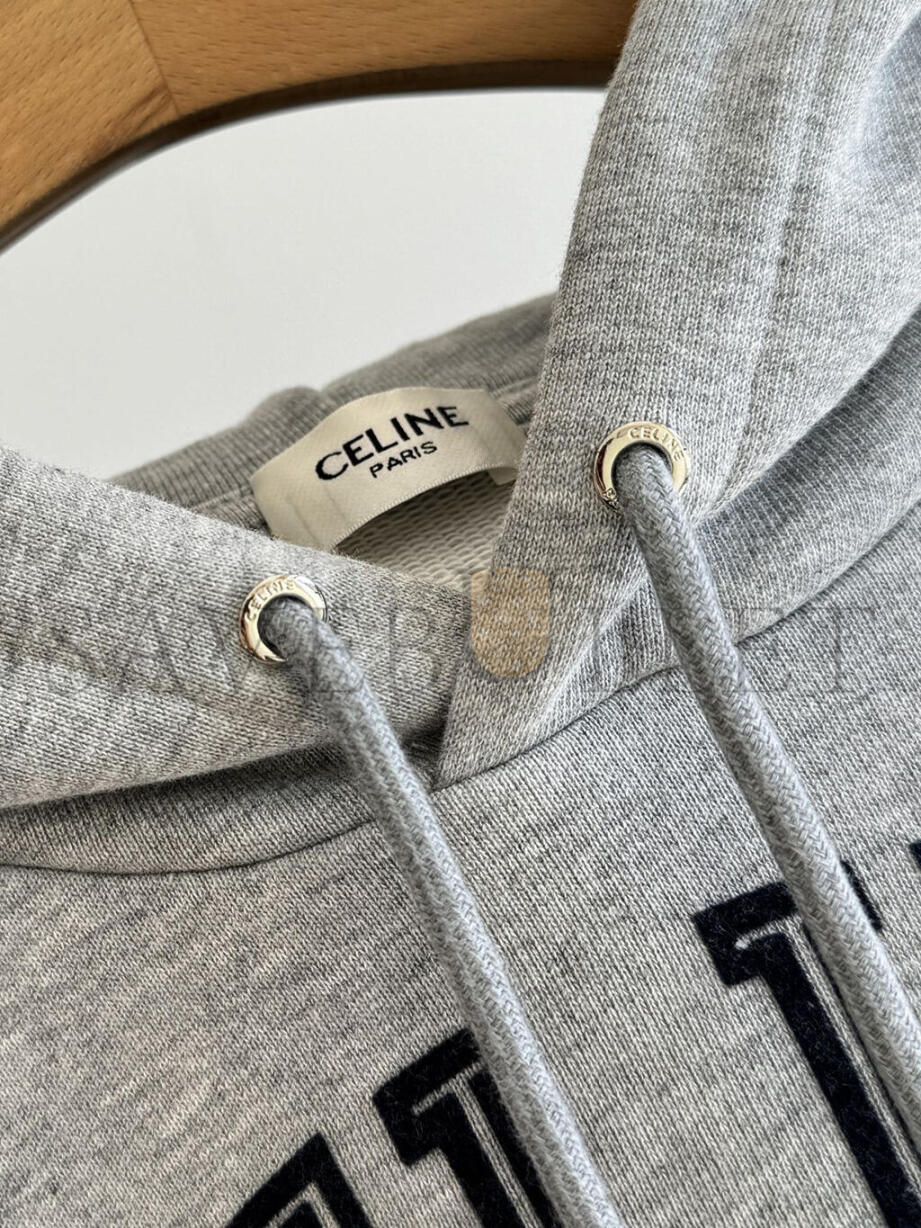 CELINE LOOSE HOODIE IN COTTON FLEECE GREY MELANGE NAVY RY0KI345F-09SH