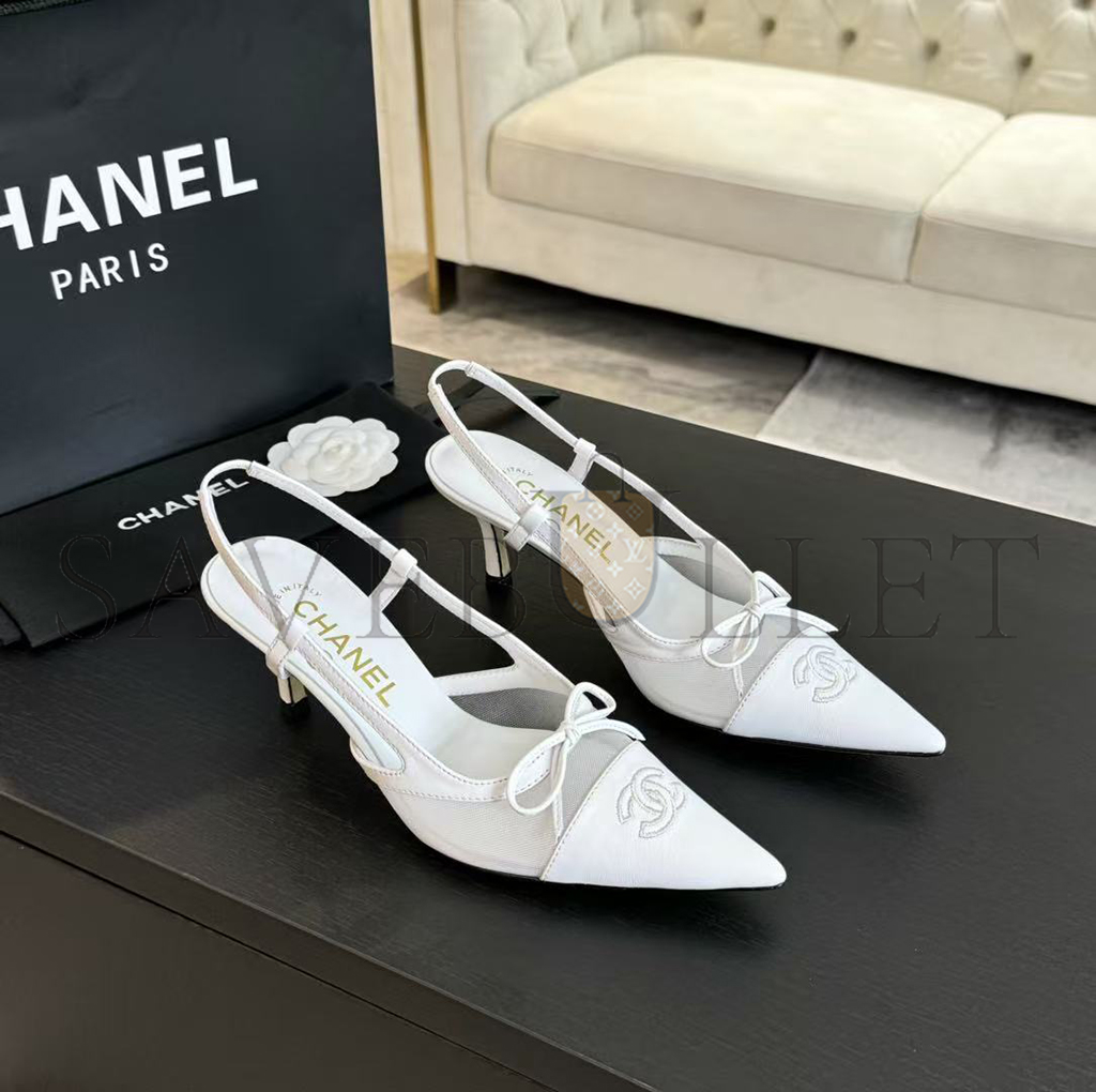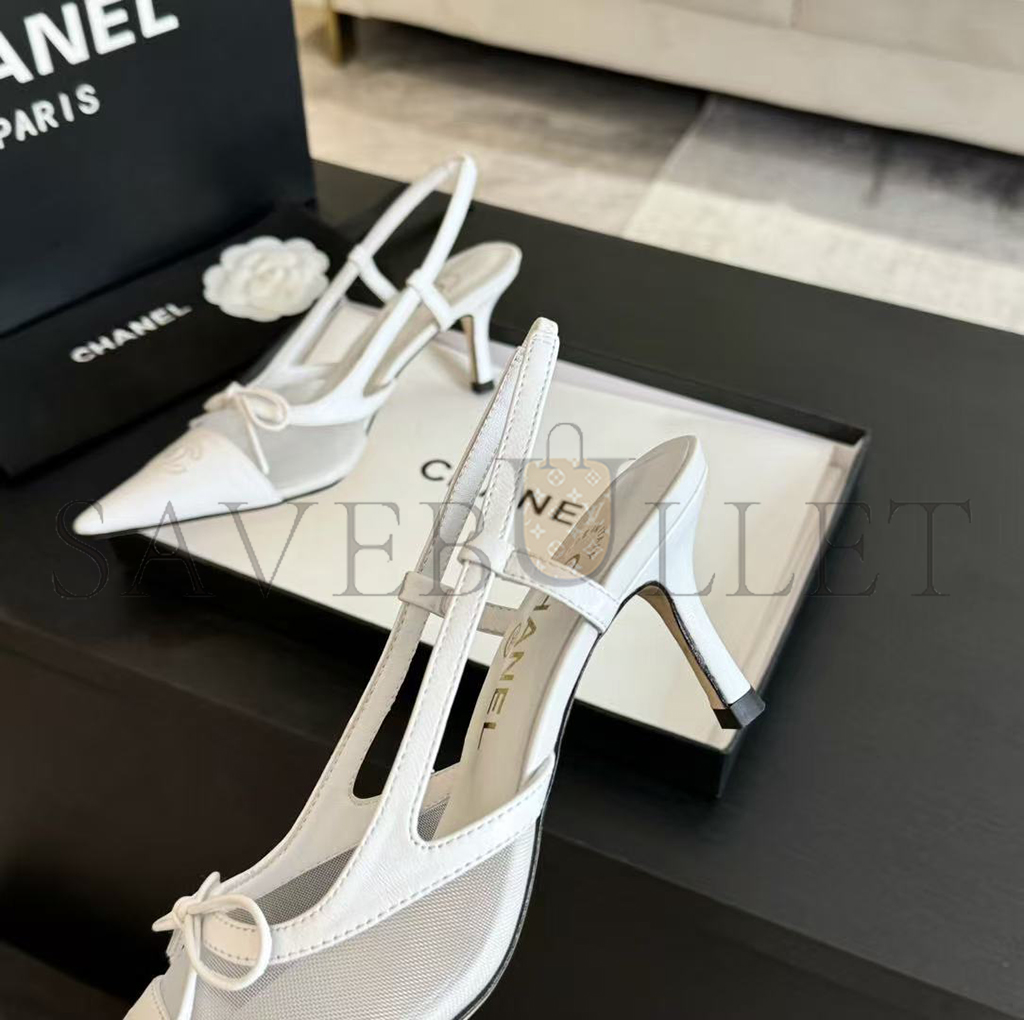 CHANEL WHITE MESH BOW SLINGBACK HEELS