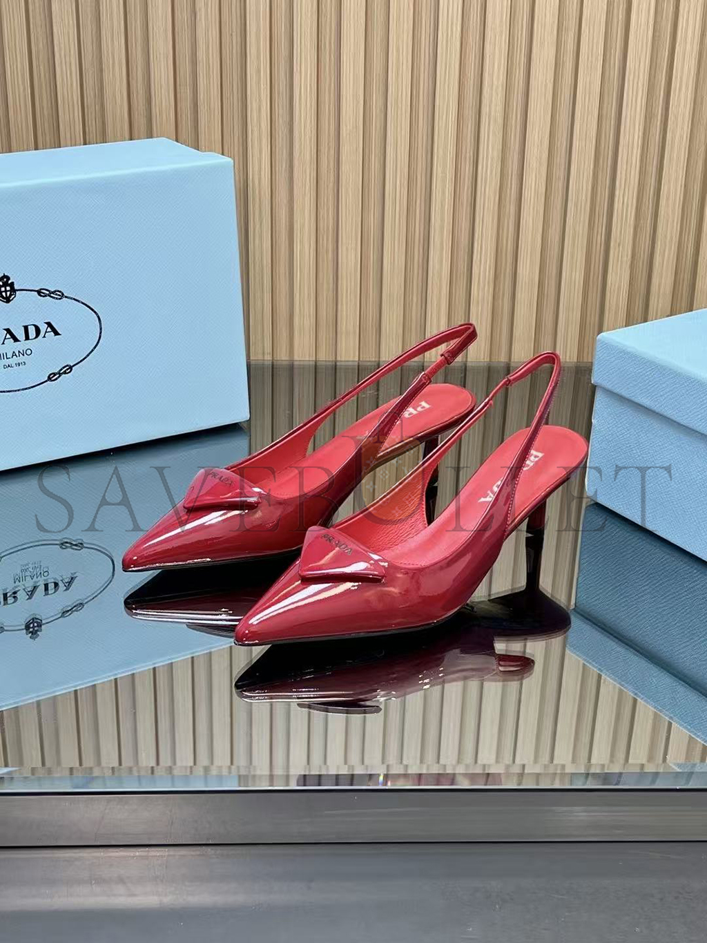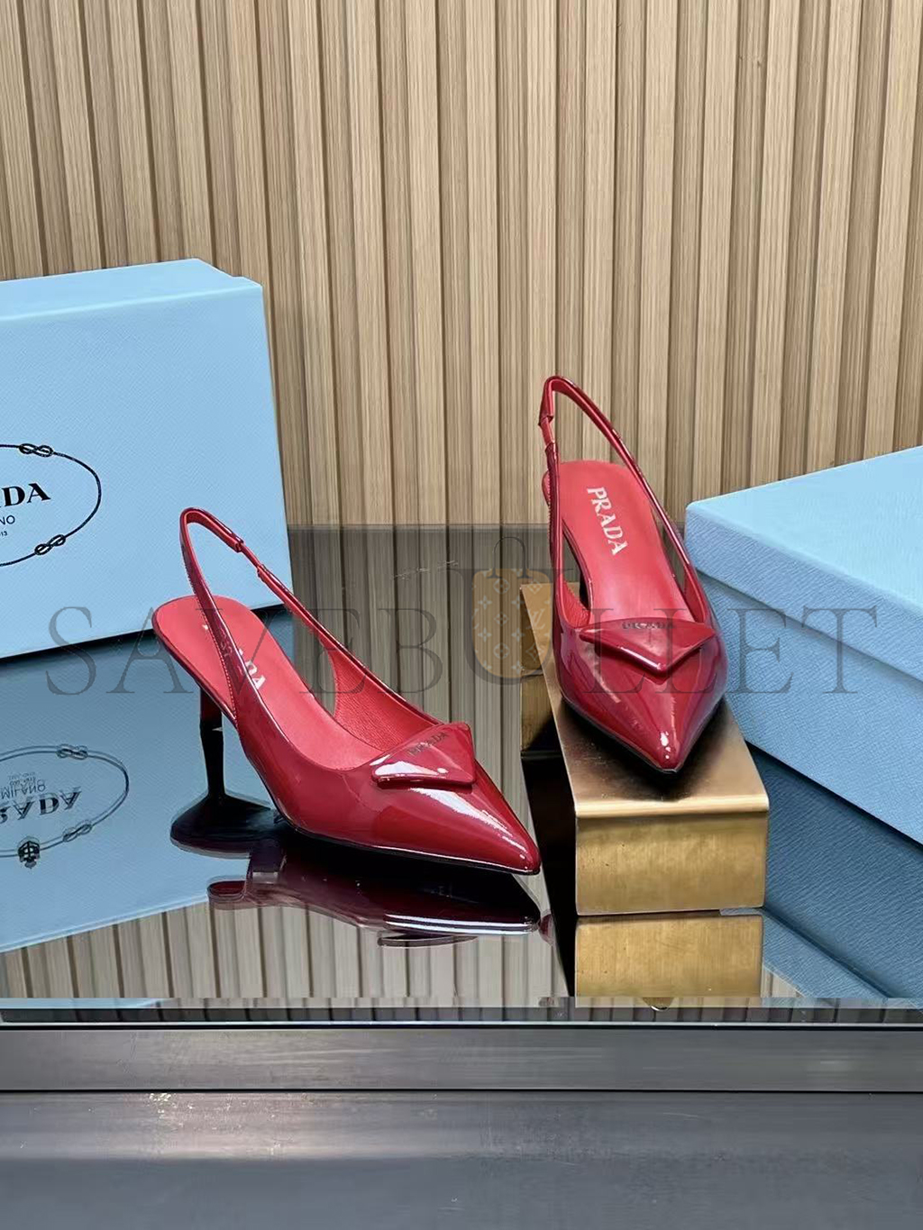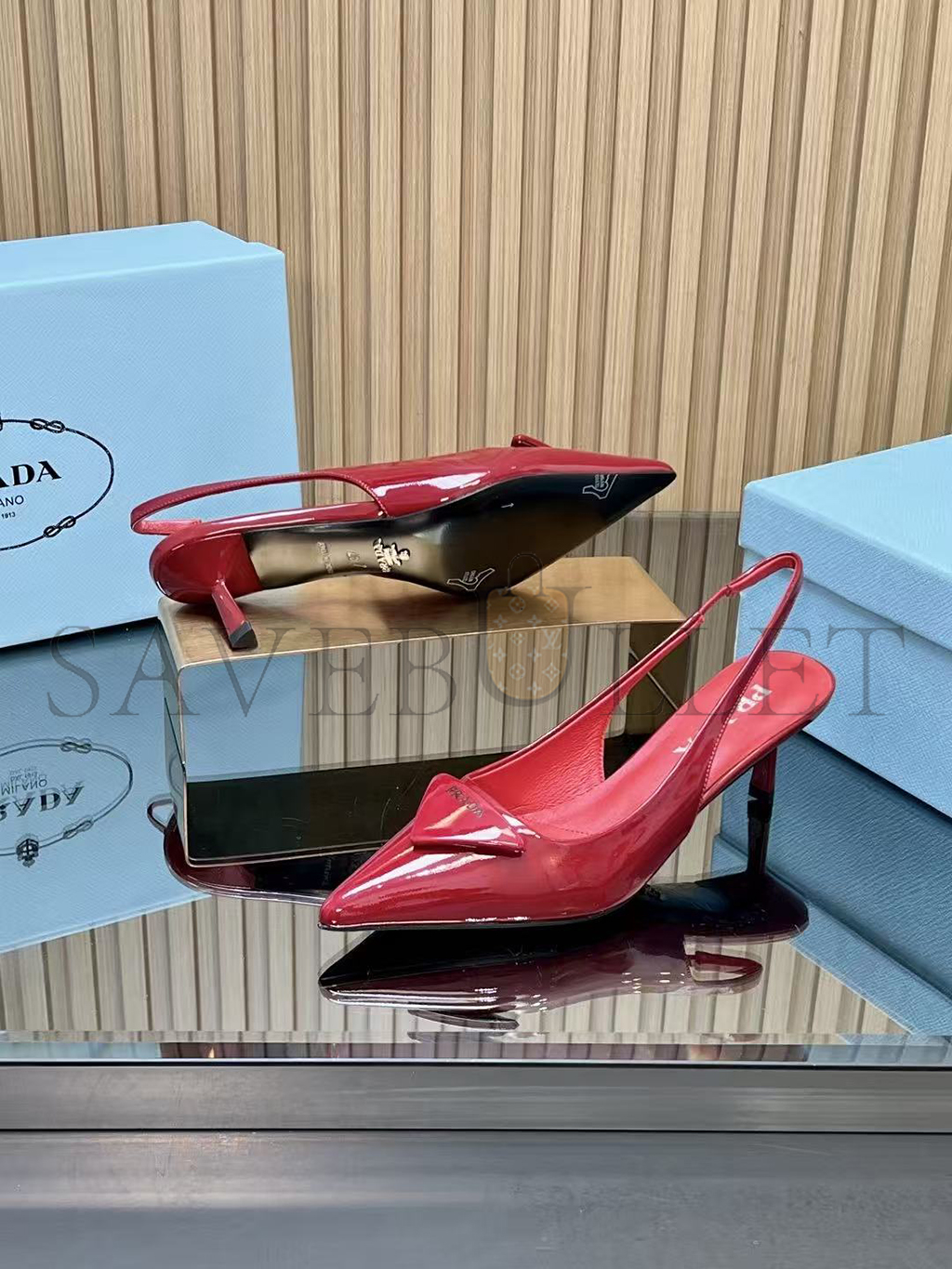 PRADA 55 PATENT LEATHER SLINGBACK PUMPS
