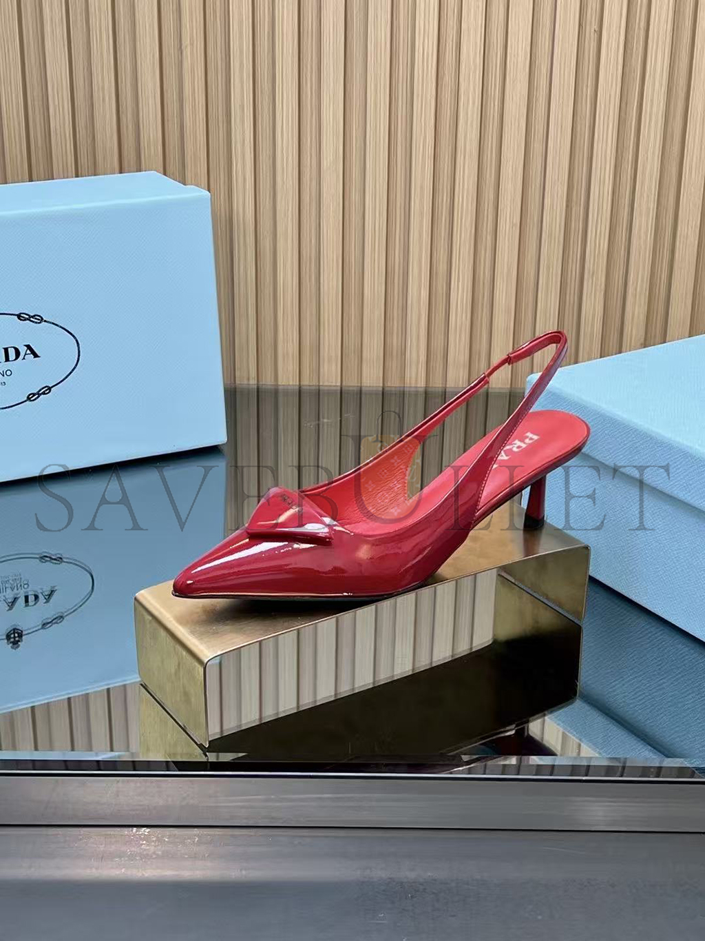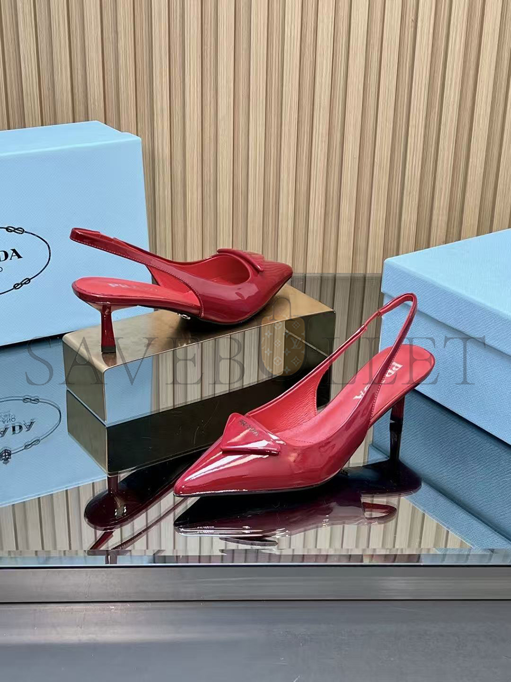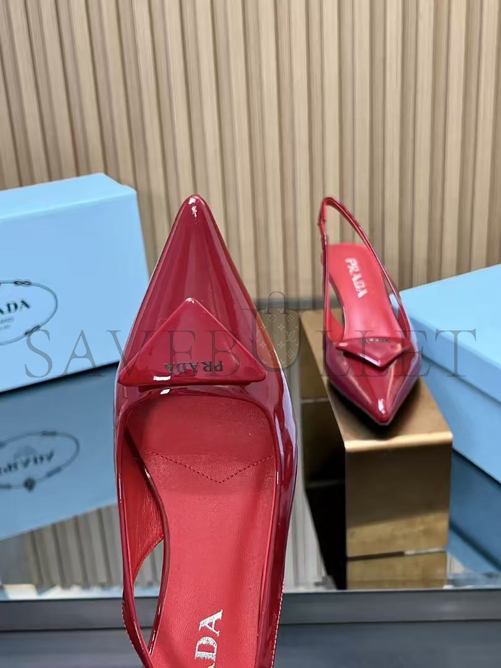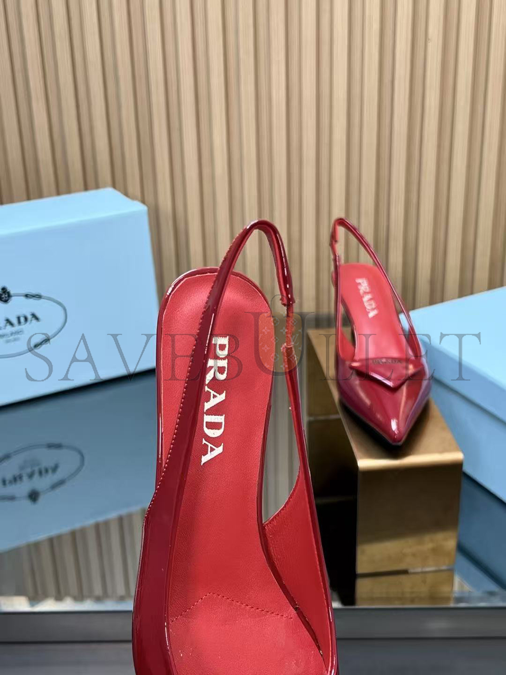 PRADA 55 PATENT LEATHER SLINGBACK PUMPS