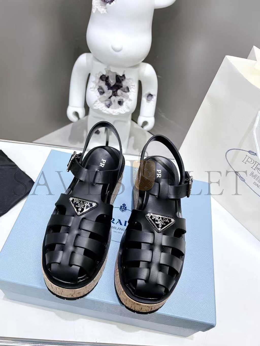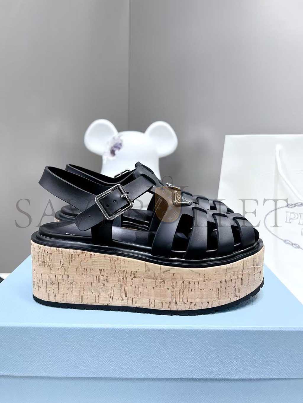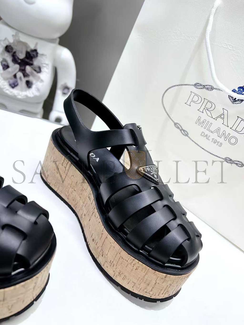 PRADA RUBBER WEDGE PLATFORM SANDALS 1X853M