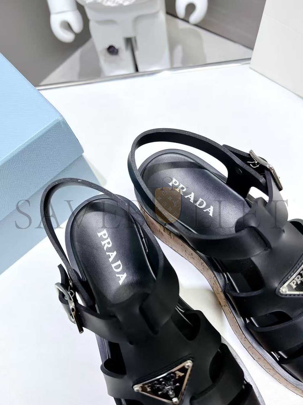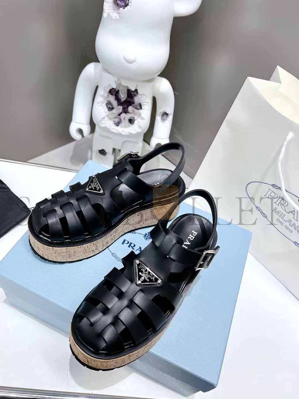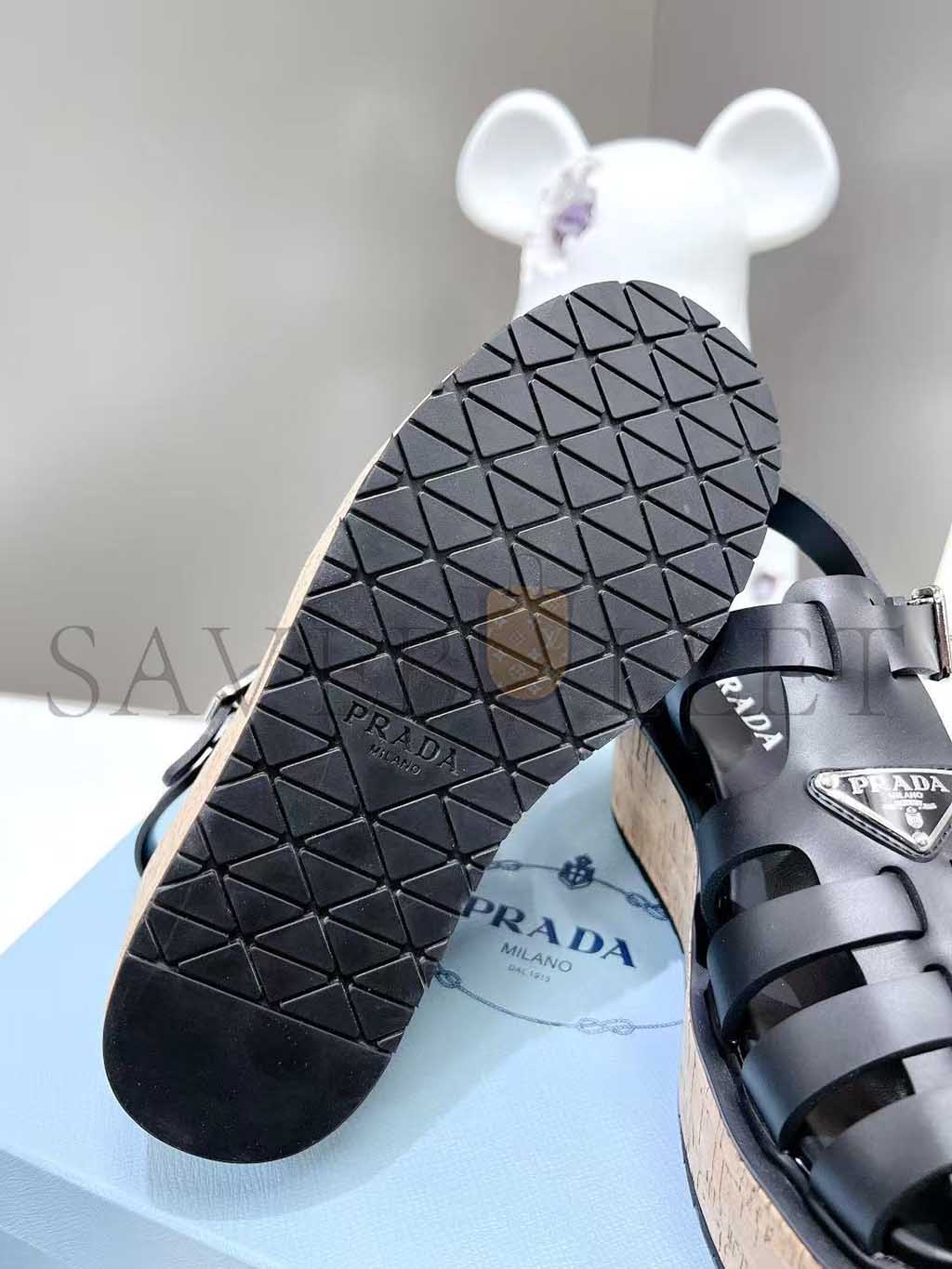 PRADA RUBBER WEDGE PLATFORM SANDALS 1X853M