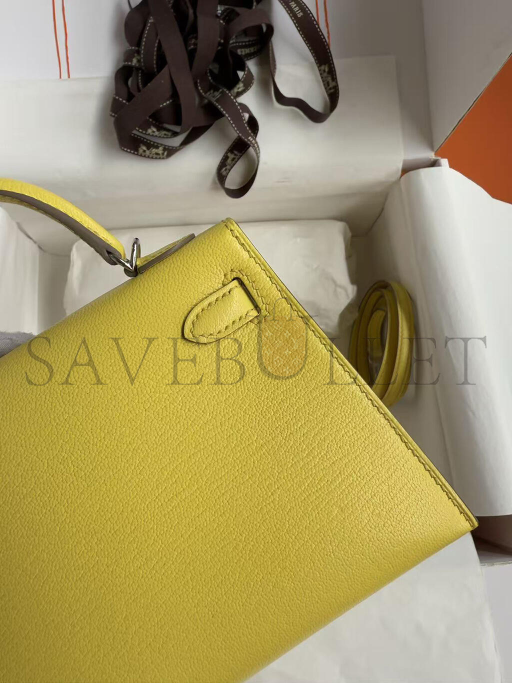 HERMES MINI KELLY CHÈVRE PALLADIUM HARDWARE (19*12*5.5cm)