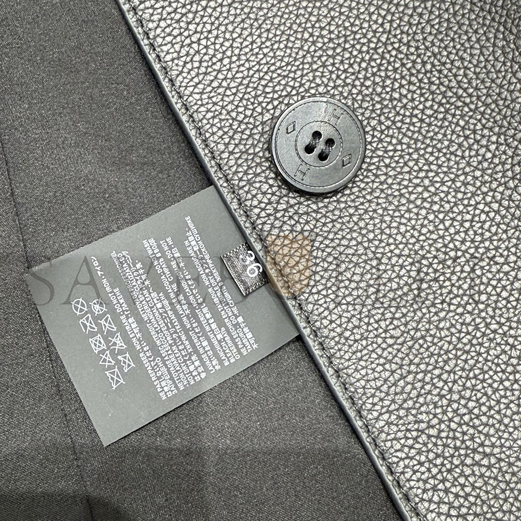 - Leather tab with "H" closure- Change purse with zip closure- 5 credit card slots- 2 pocketsMetallic finish: Palladium platedDimensions: L 17.5 x H 9..
