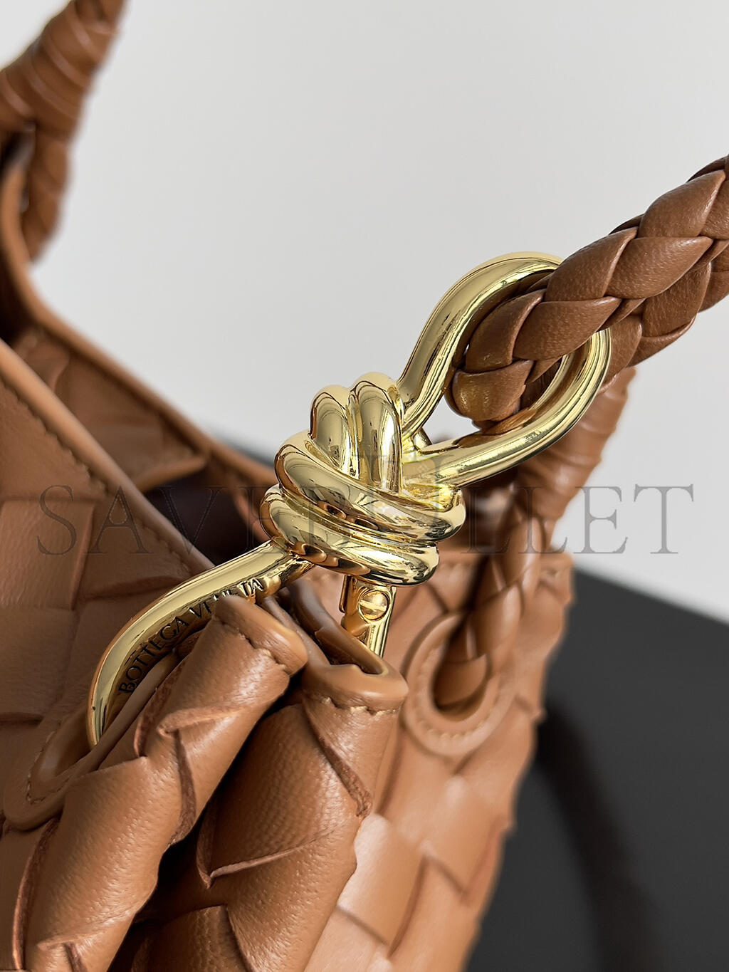 Shoulder bag in supple Intrecciato leather with signature knot detail and detachable cross-body strap.