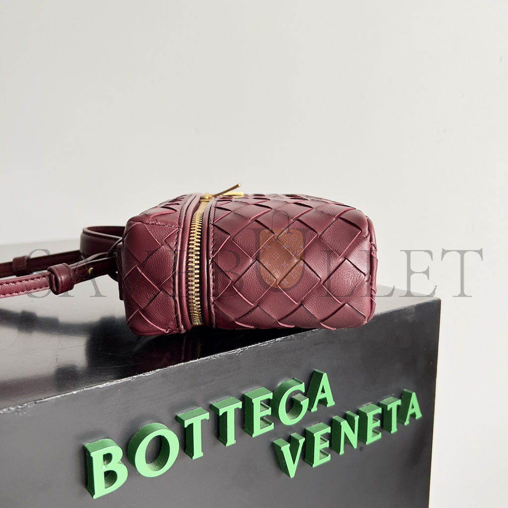 Intrecciato leather vanity case with detachable strap
