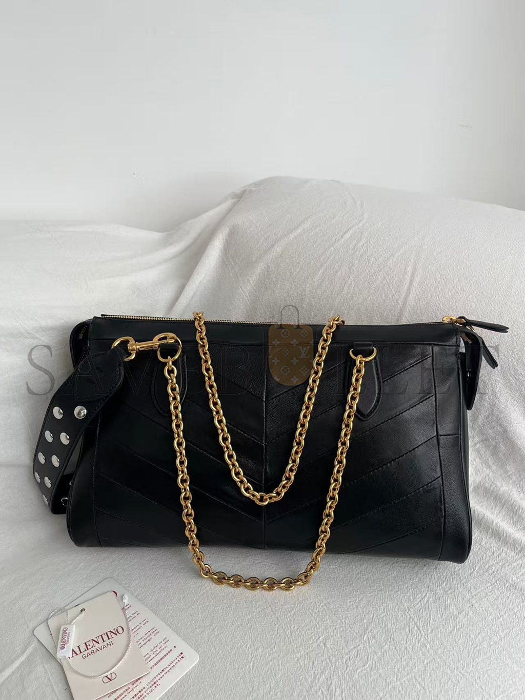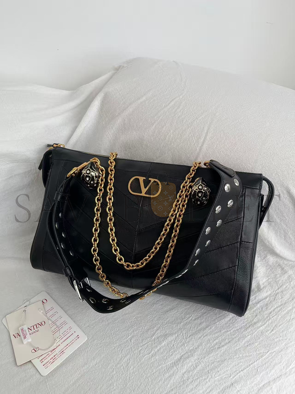 VALENTINO GARAVANI PANTHEA SHOULDER BAG IN NAPPA LEATHER WITH CHEVRON PATTERN 7W0B0S70UYF_0NO (33*19.5*9cm)