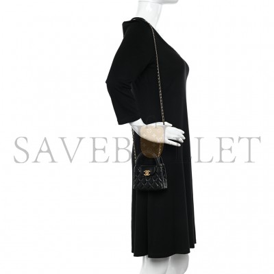 CHANEL SMALL BOWLING BAG DARK BROWN SUEDE ANTIQUE GOLD HARDWARE (24*15.5*11.5cm)