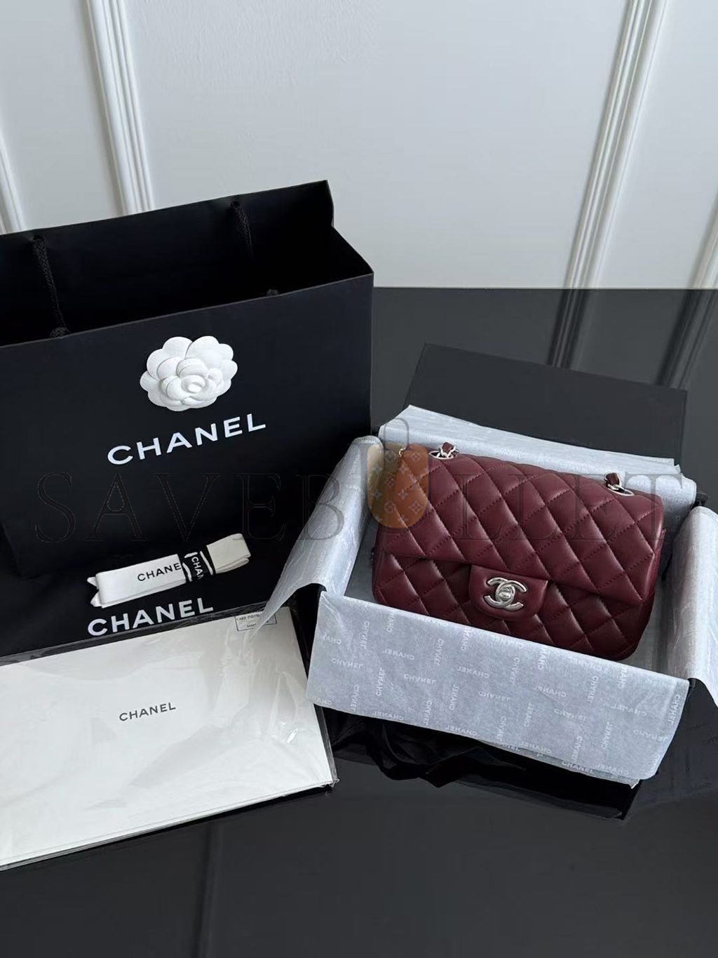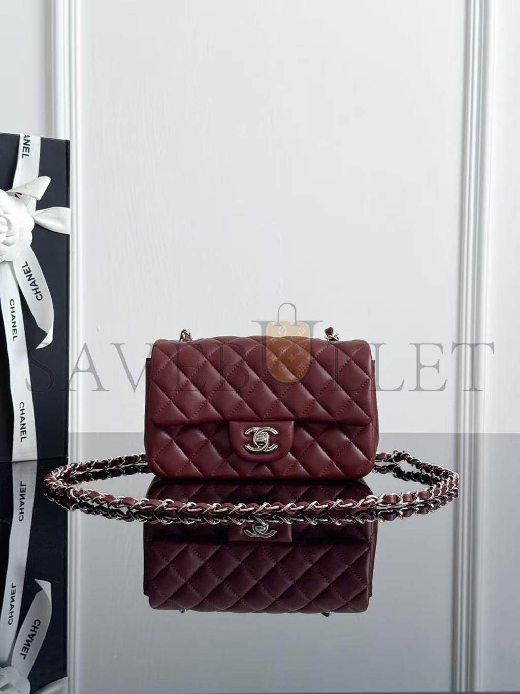 CHANEL MINI CLASSIC FLAP BAG BURGUNDY LAMBSKIN A01116 (20*13*6cm)