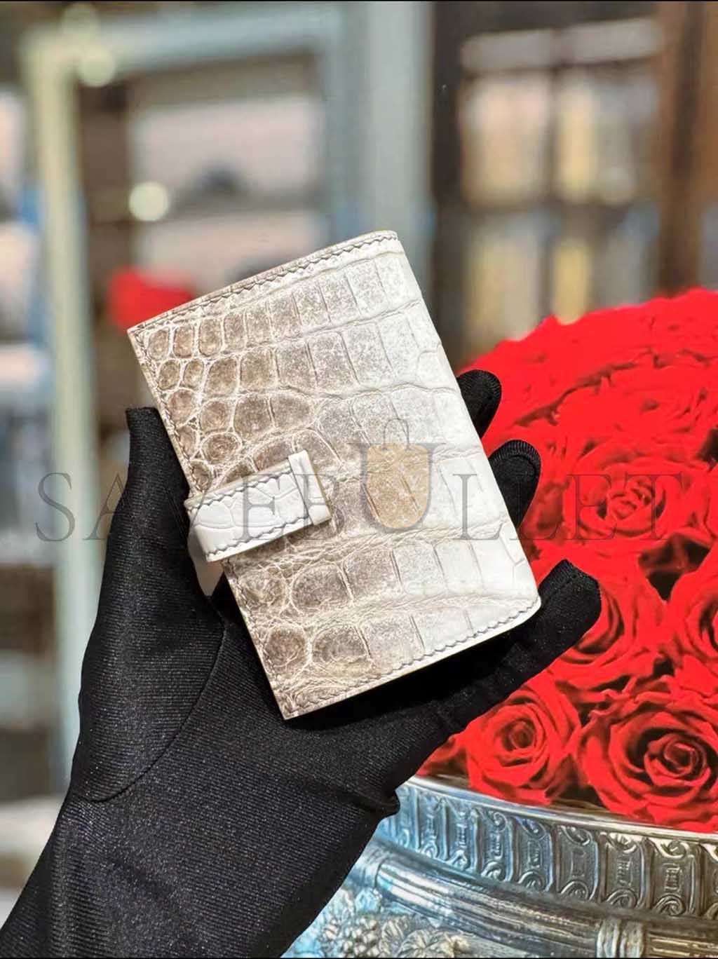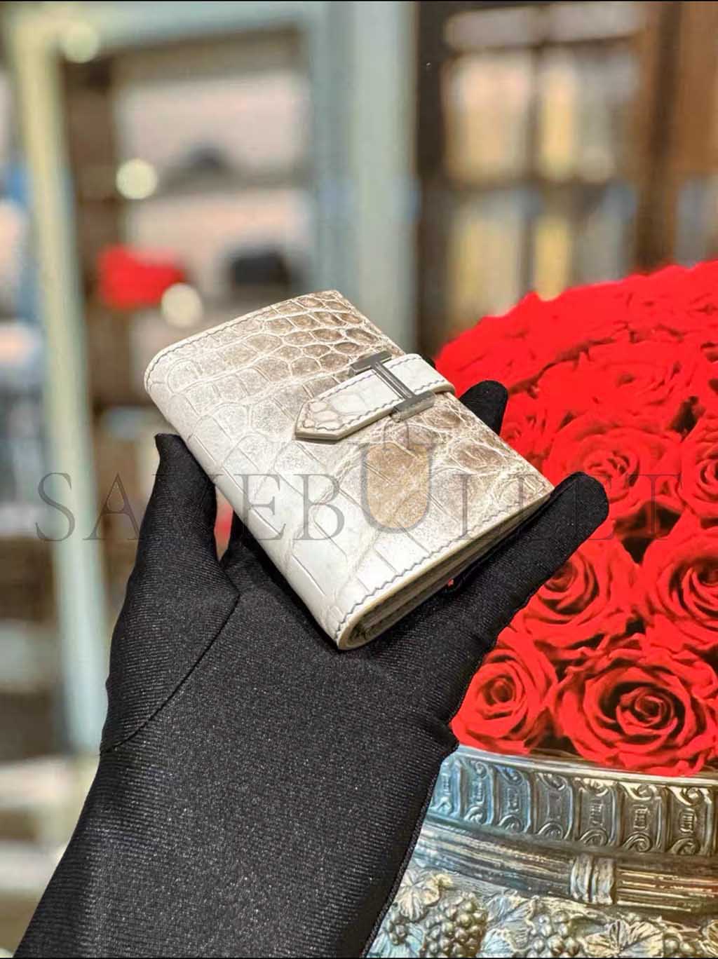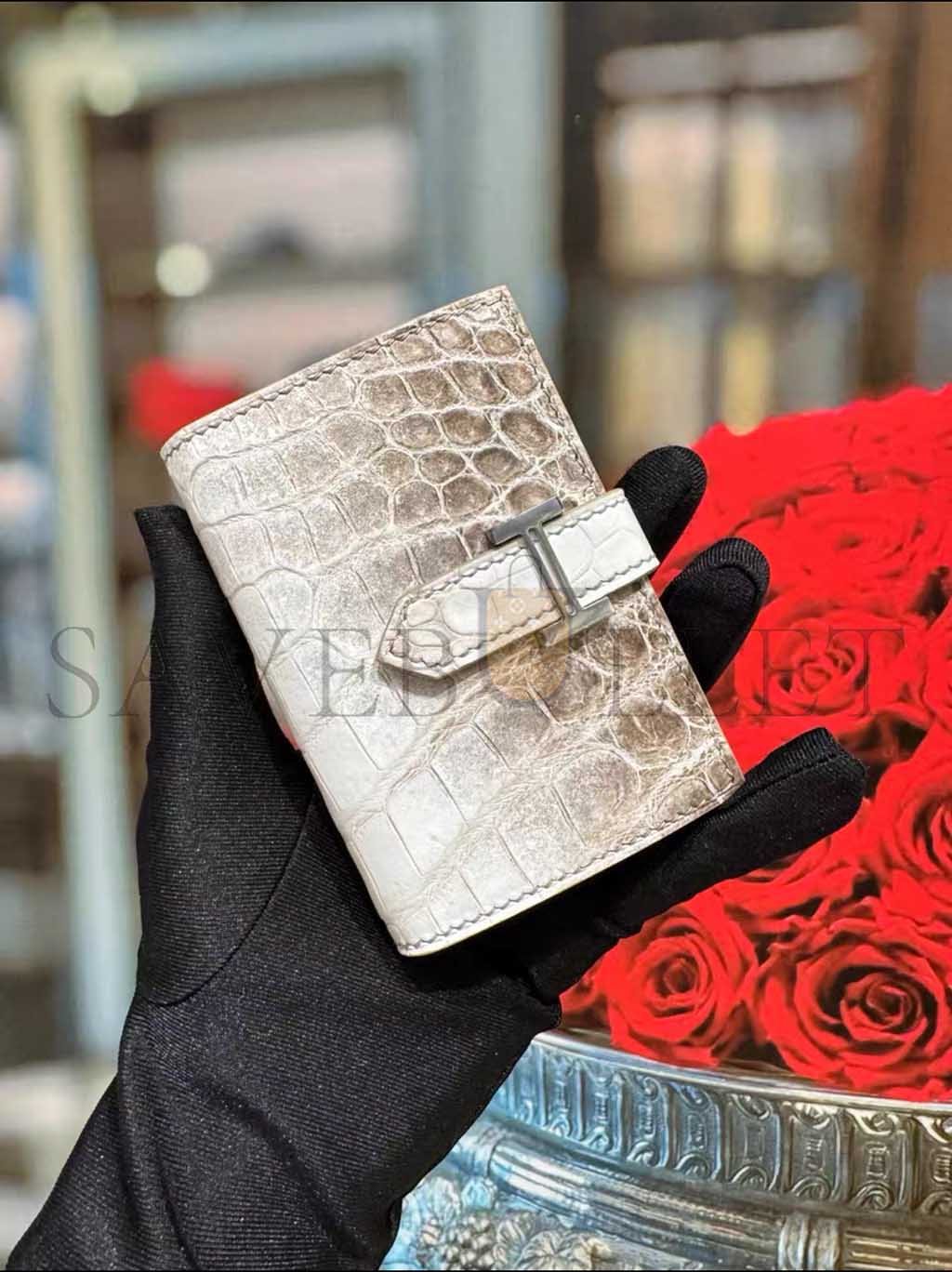 HERMES MASTER BEARN COMPACT WALLET IN HIMALAYA ALLIGATOR LEATHER (12*9.5*0.4cm)