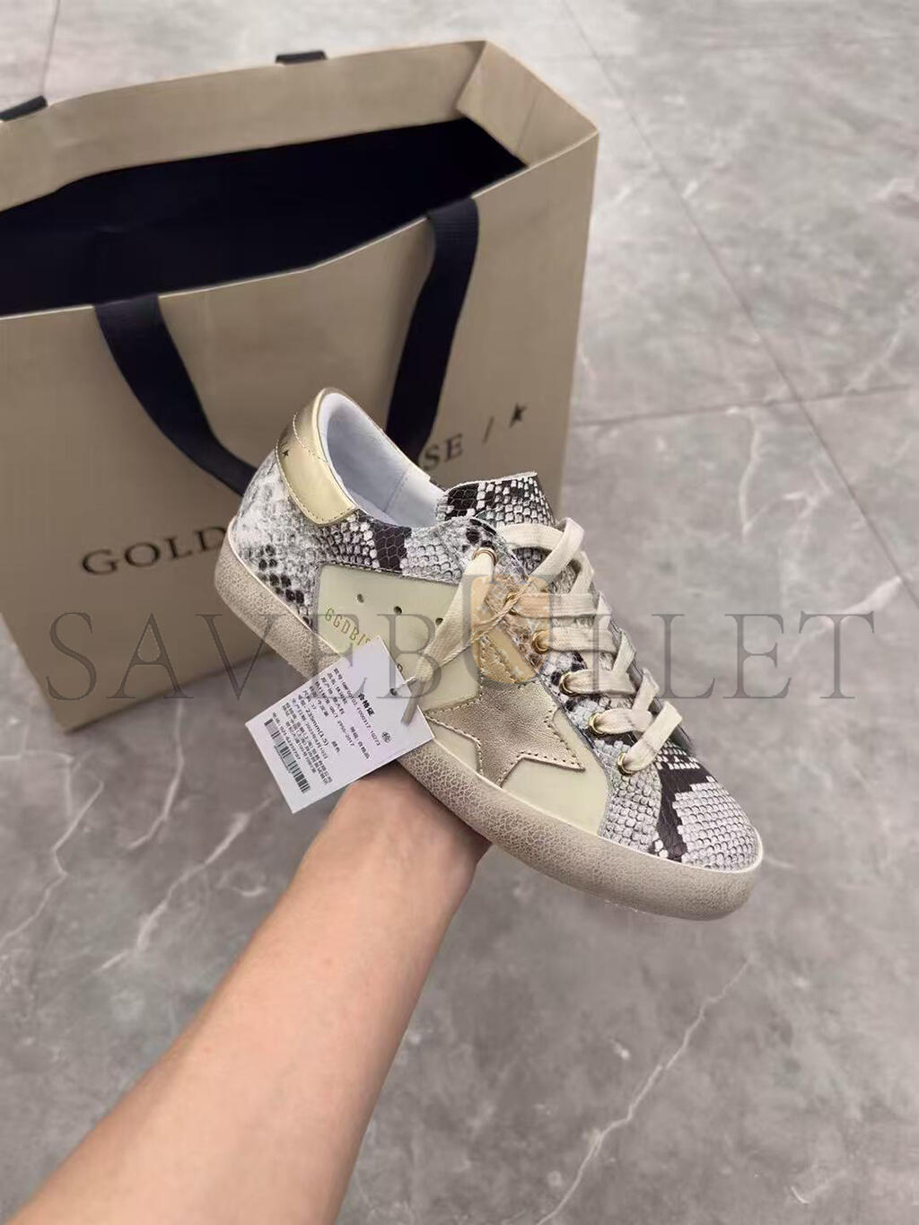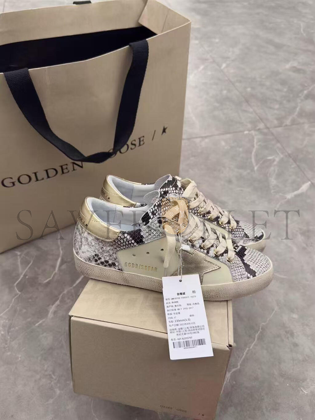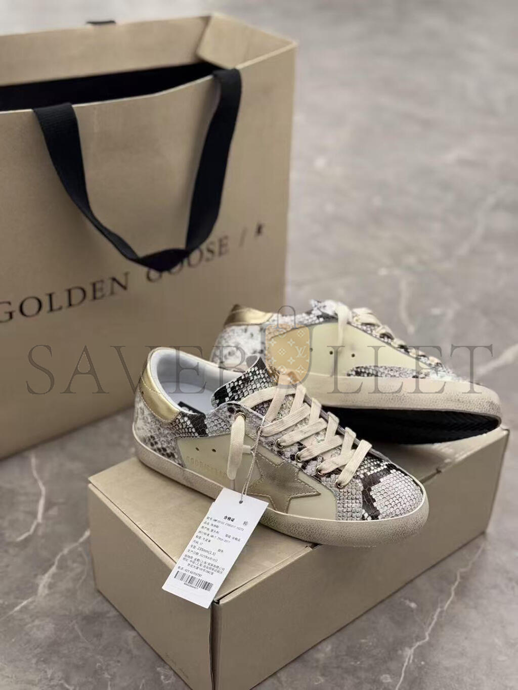 GOLDEN GOOSE SUPER STAR LOGO-EMBROIDERED TEXTURED LEATHER LOW-TOP TRAINERS