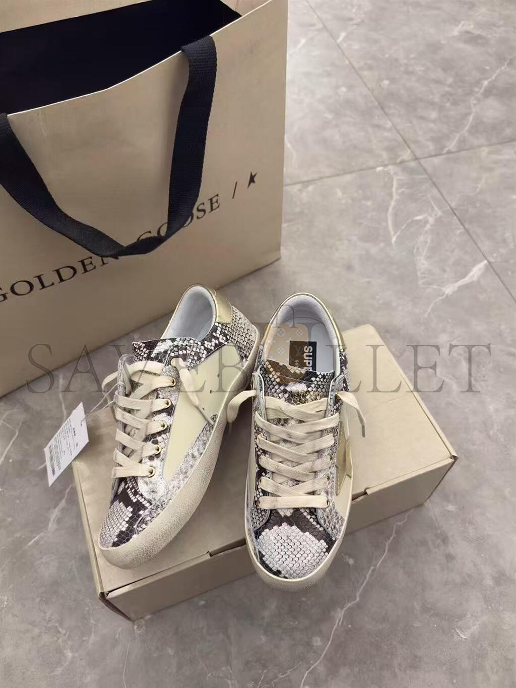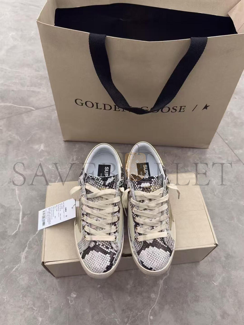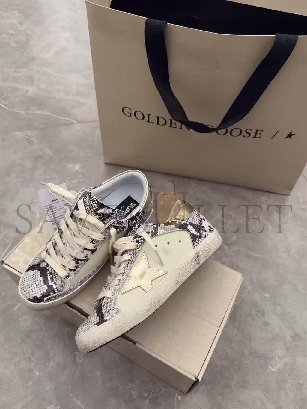 GOLDEN GOOSE SUPER STAR LOGO-EMBROIDERED TEXTURED LEATHER LOW-TOP TRAINERS