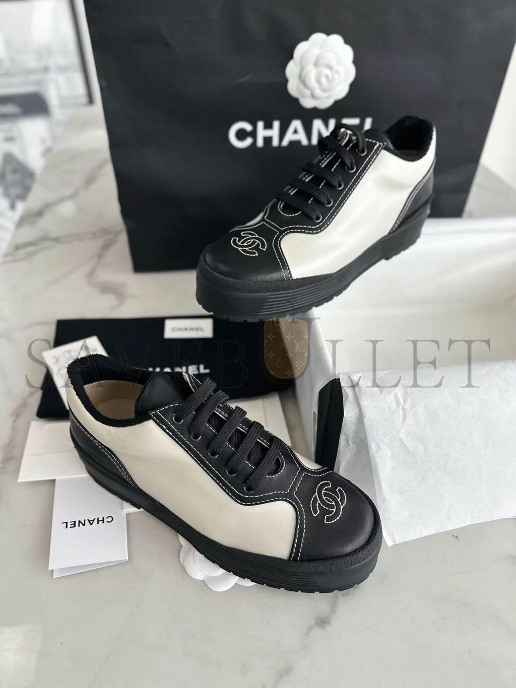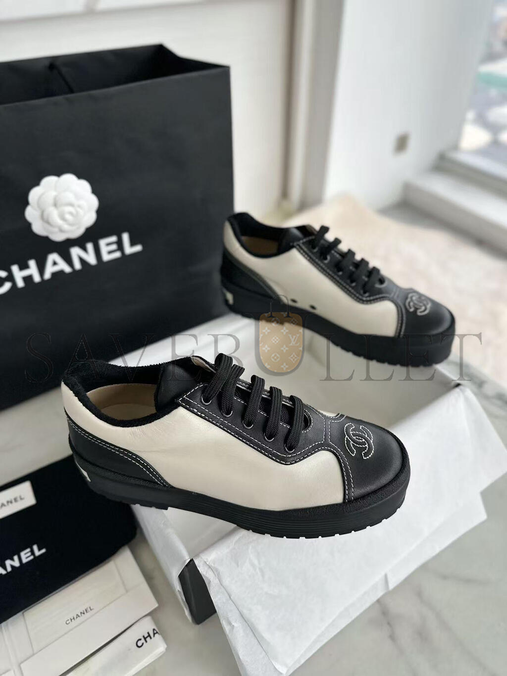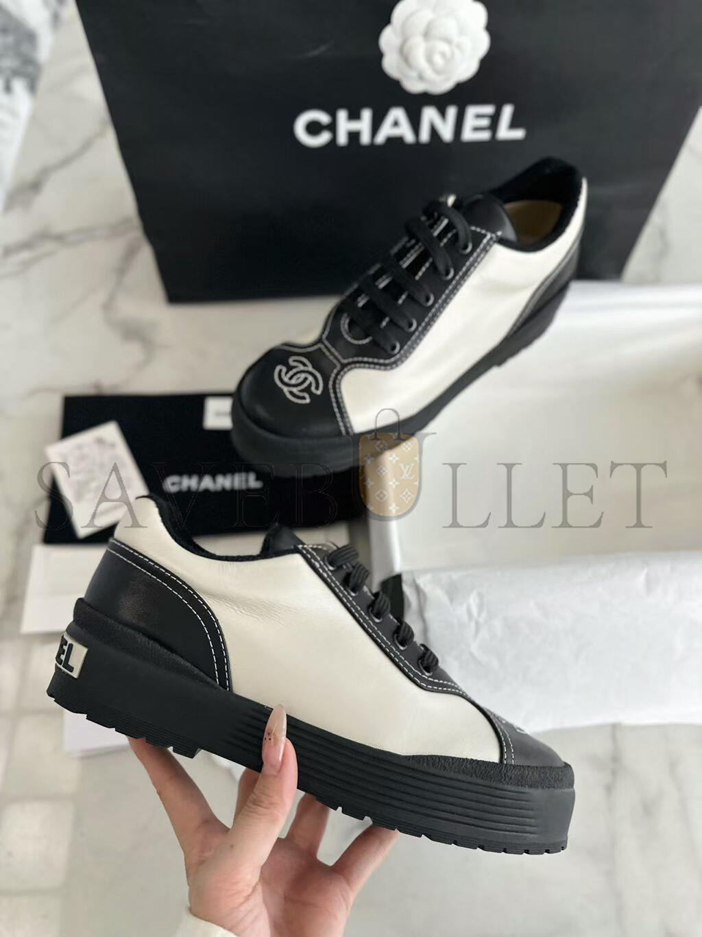 CHANEL CHANEL BLACK LEATHER CC PLATFORM SNEAKERS