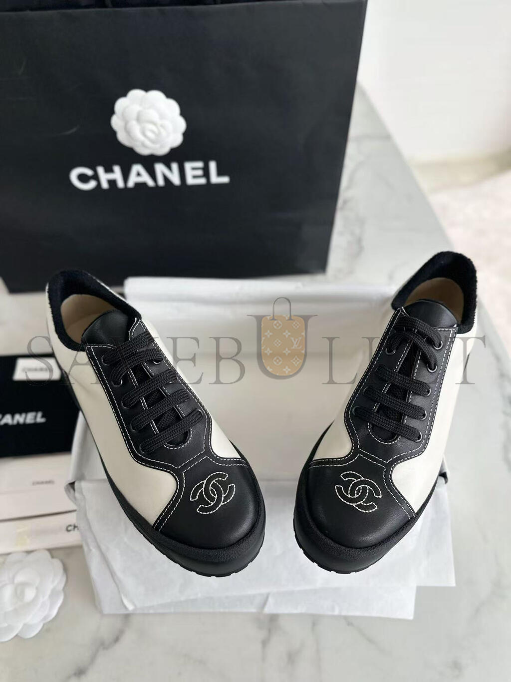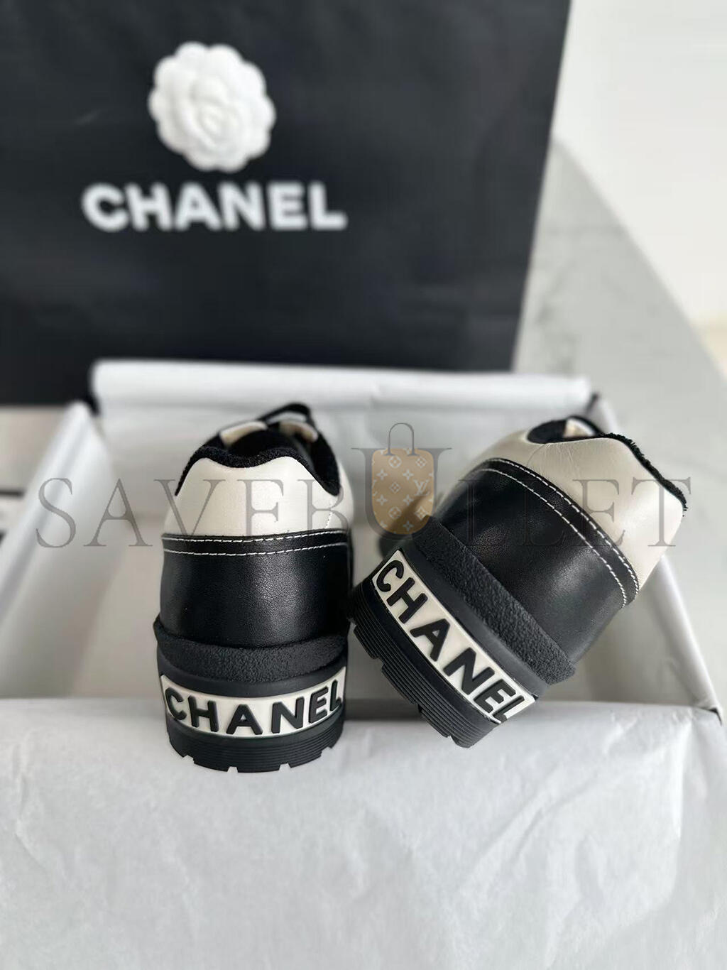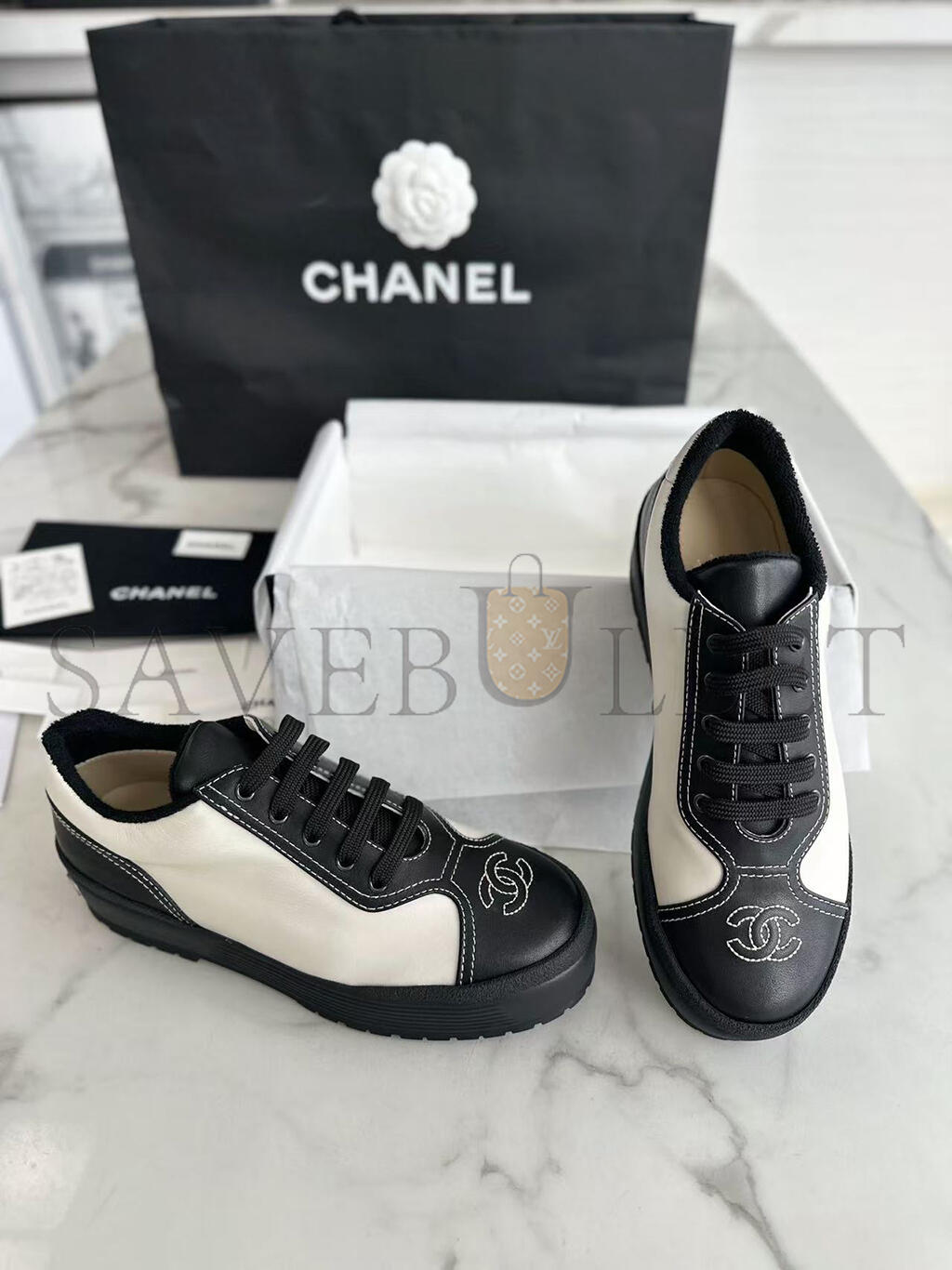 CHANEL CHANEL BLACK LEATHER CC PLATFORM SNEAKERS