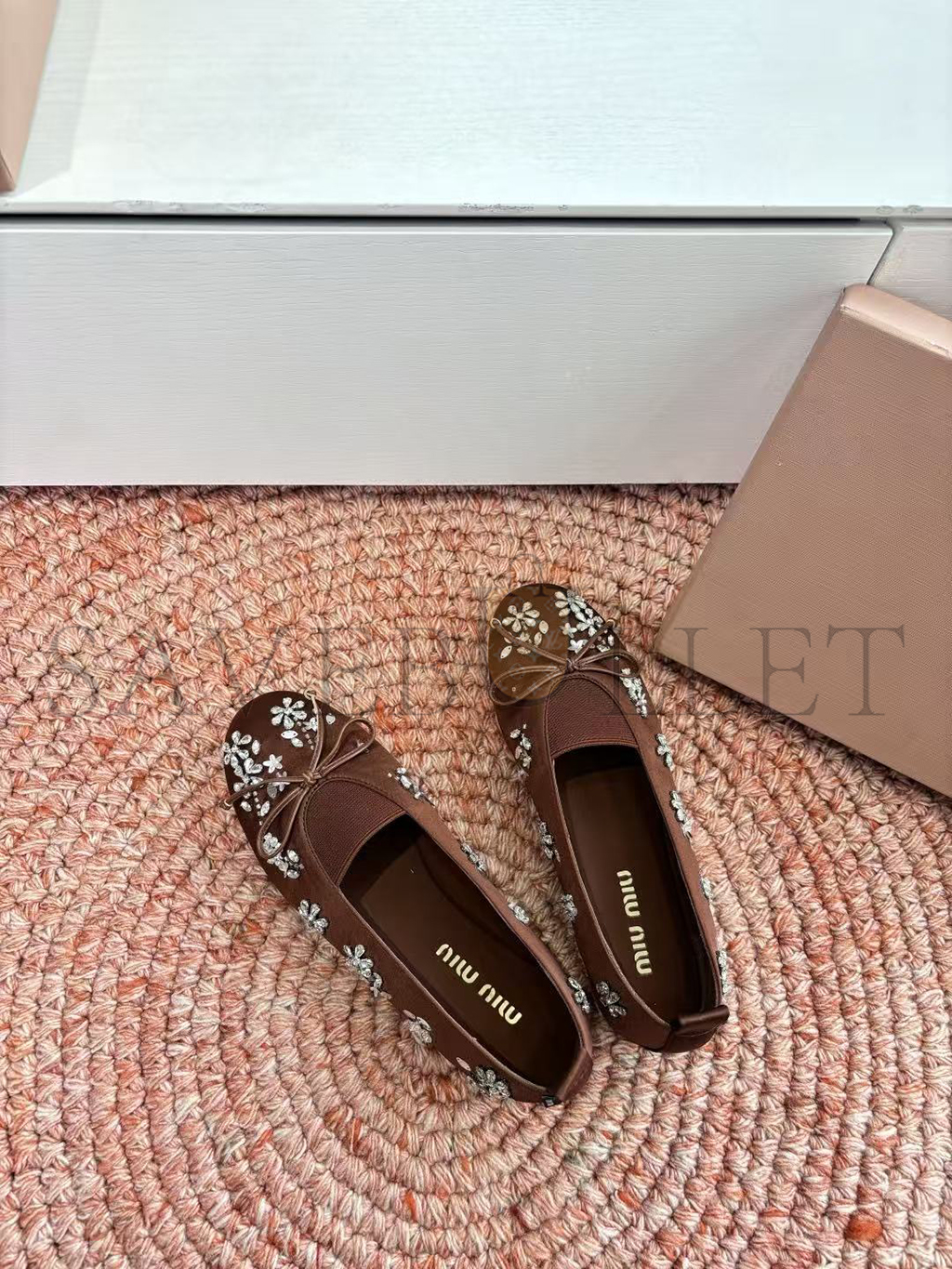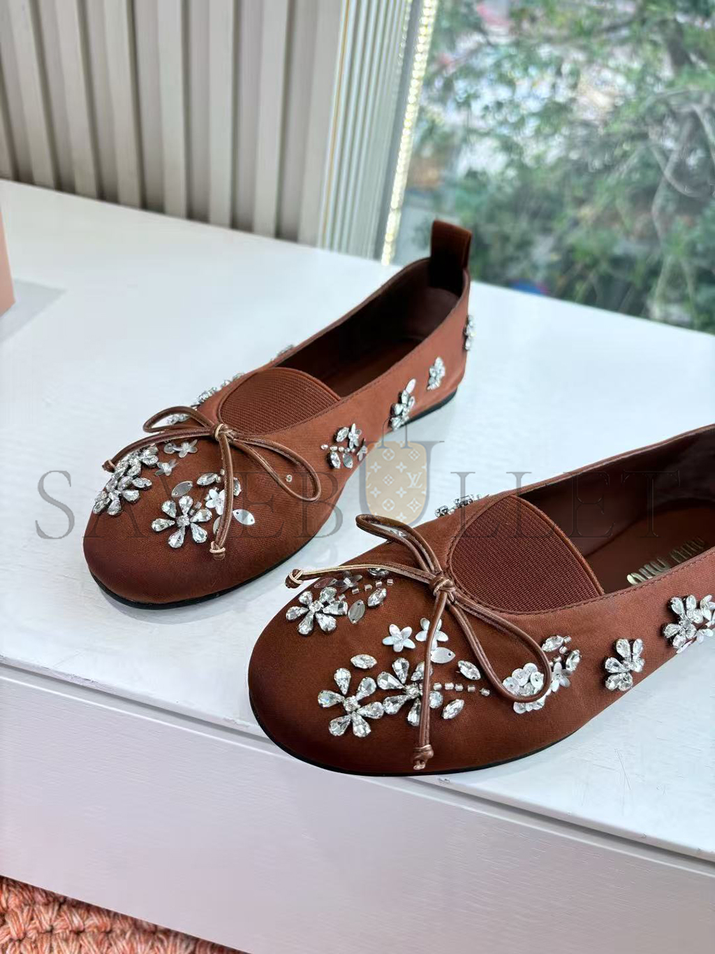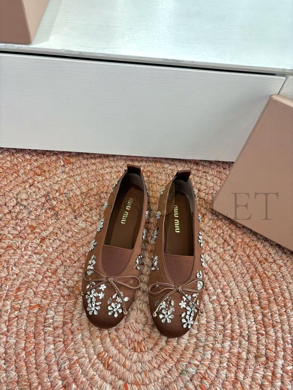 MIU MIU EMBROIDERED DRILL BALLERINAS