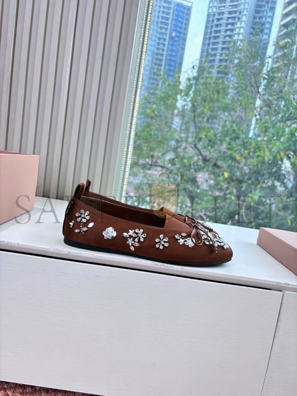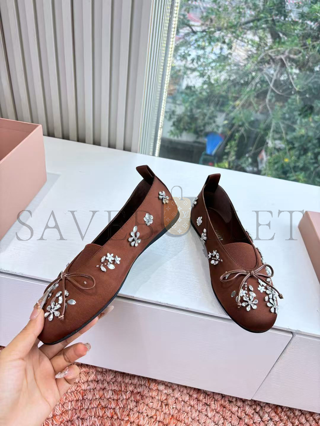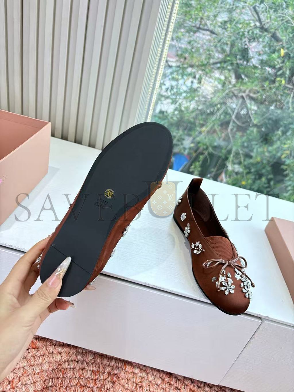 MIU MIU EMBROIDERED DRILL BALLERINAS
