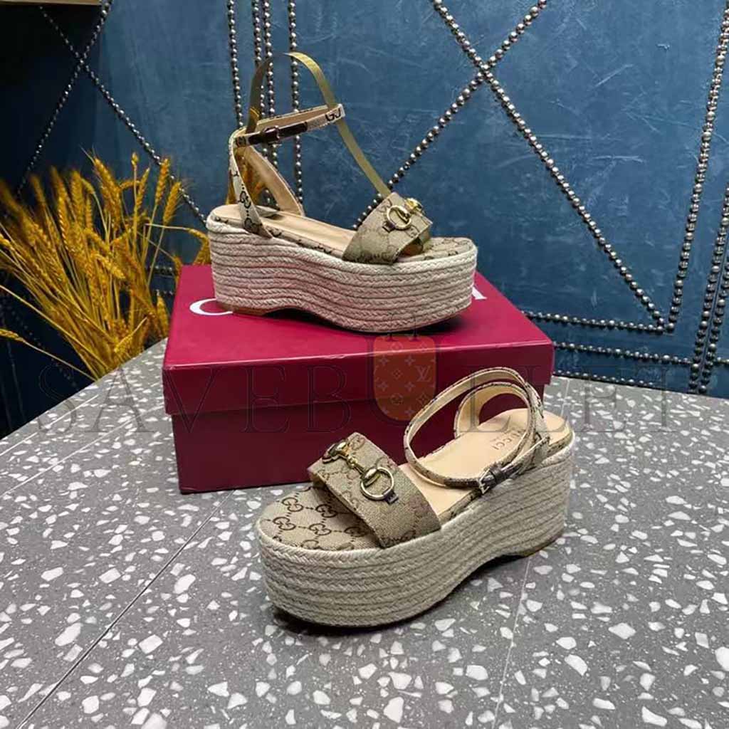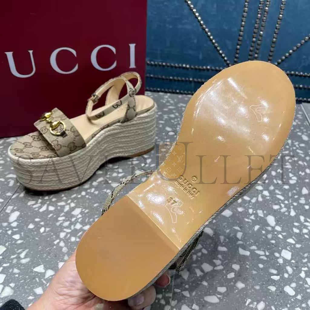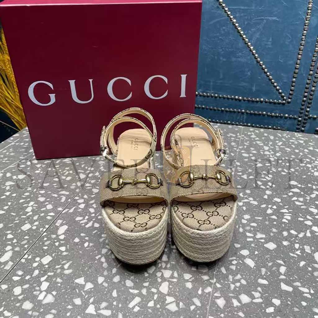 GUCCI LADY HORSEBIT GG PLATFORM ESPADRILLE SANDALS 816692