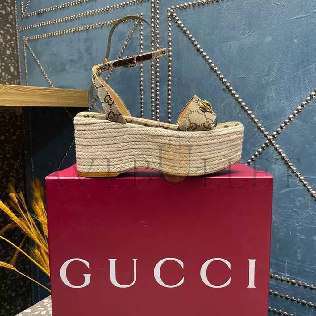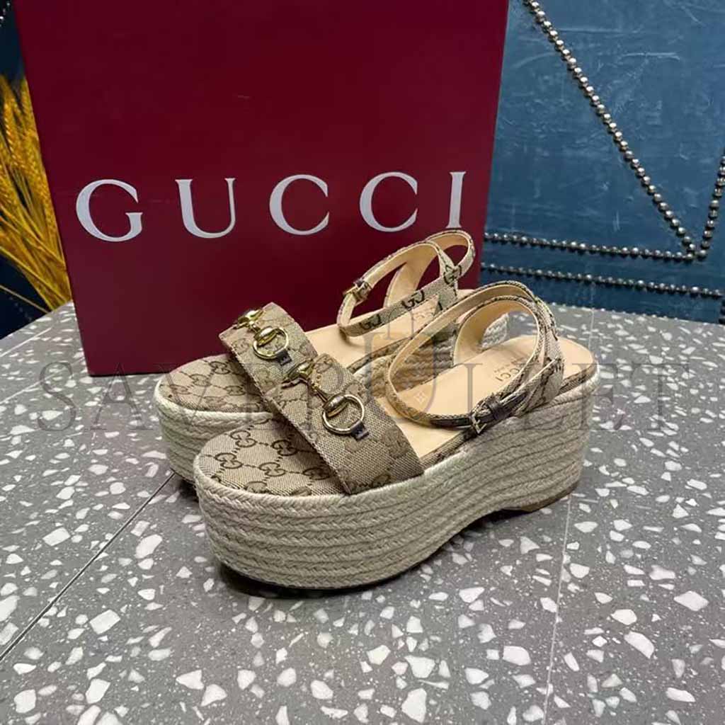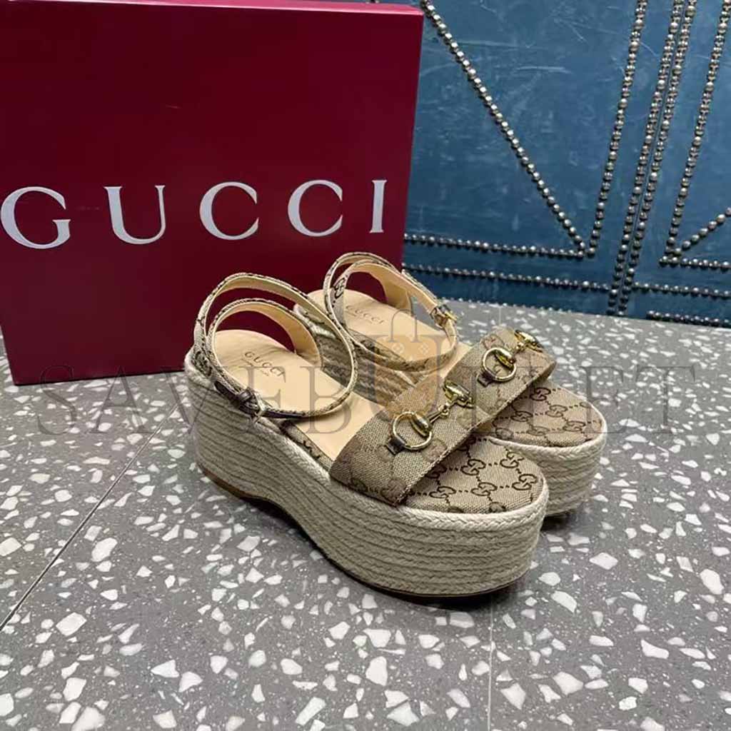 GUCCI LADY HORSEBIT GG PLATFORM ESPADRILLE SANDALS 816692