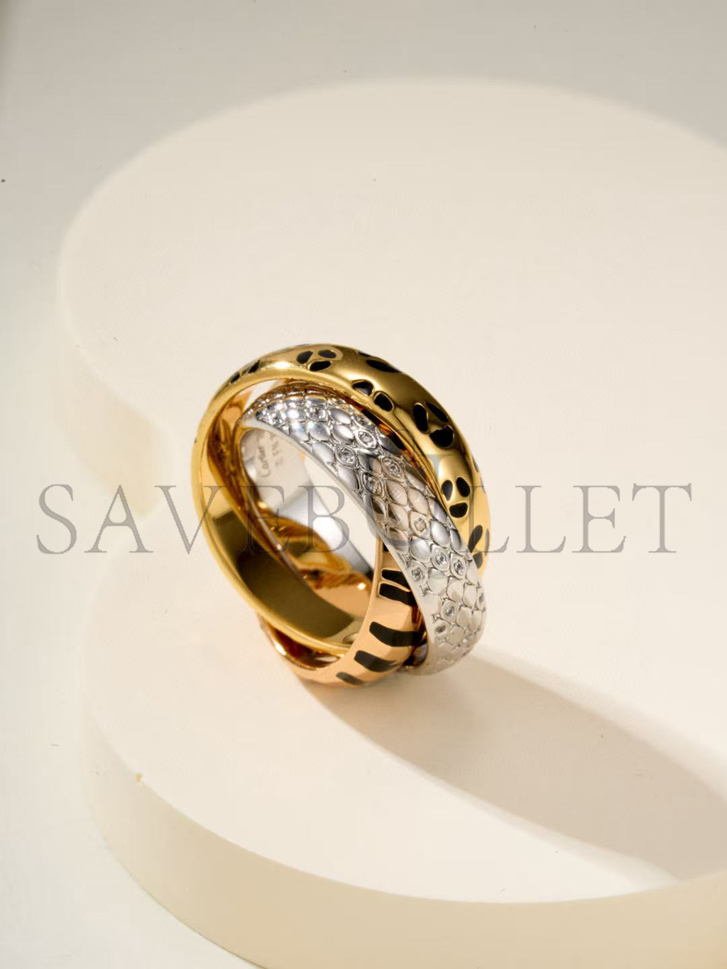CARTIER LACQUERED GOLD AND SEMI-PAVÉD DIAMOND TRINITY RING CRB4241700