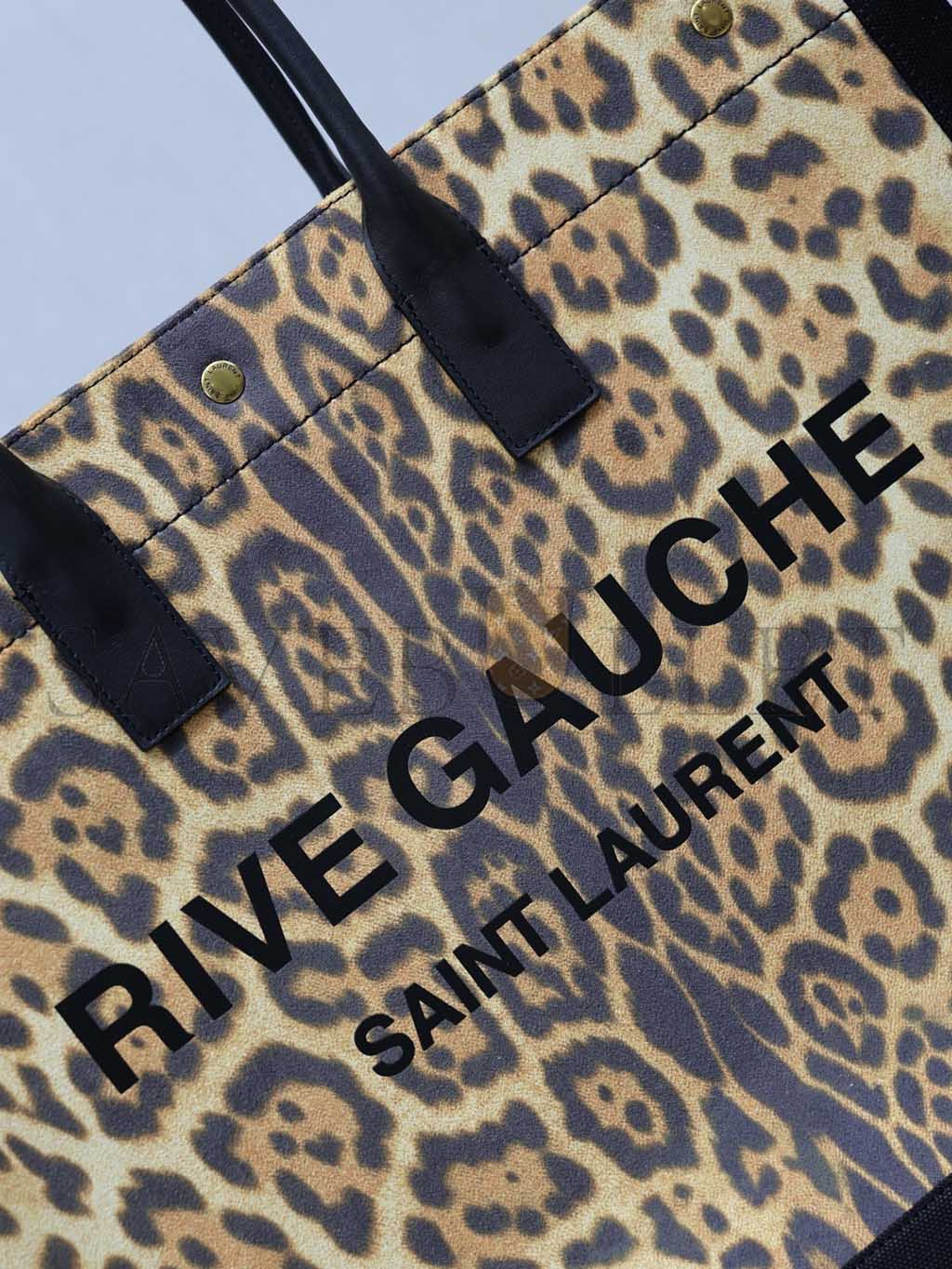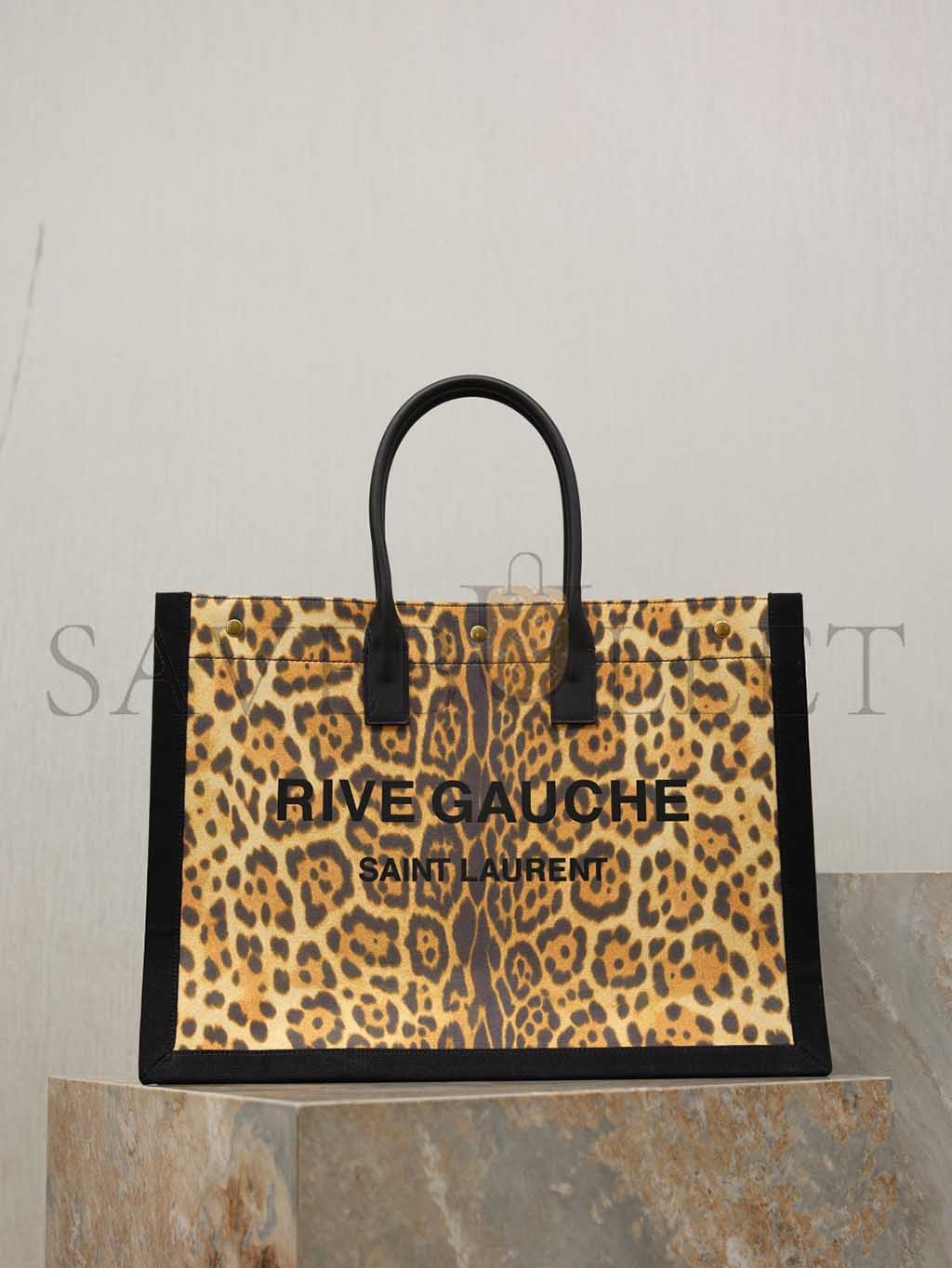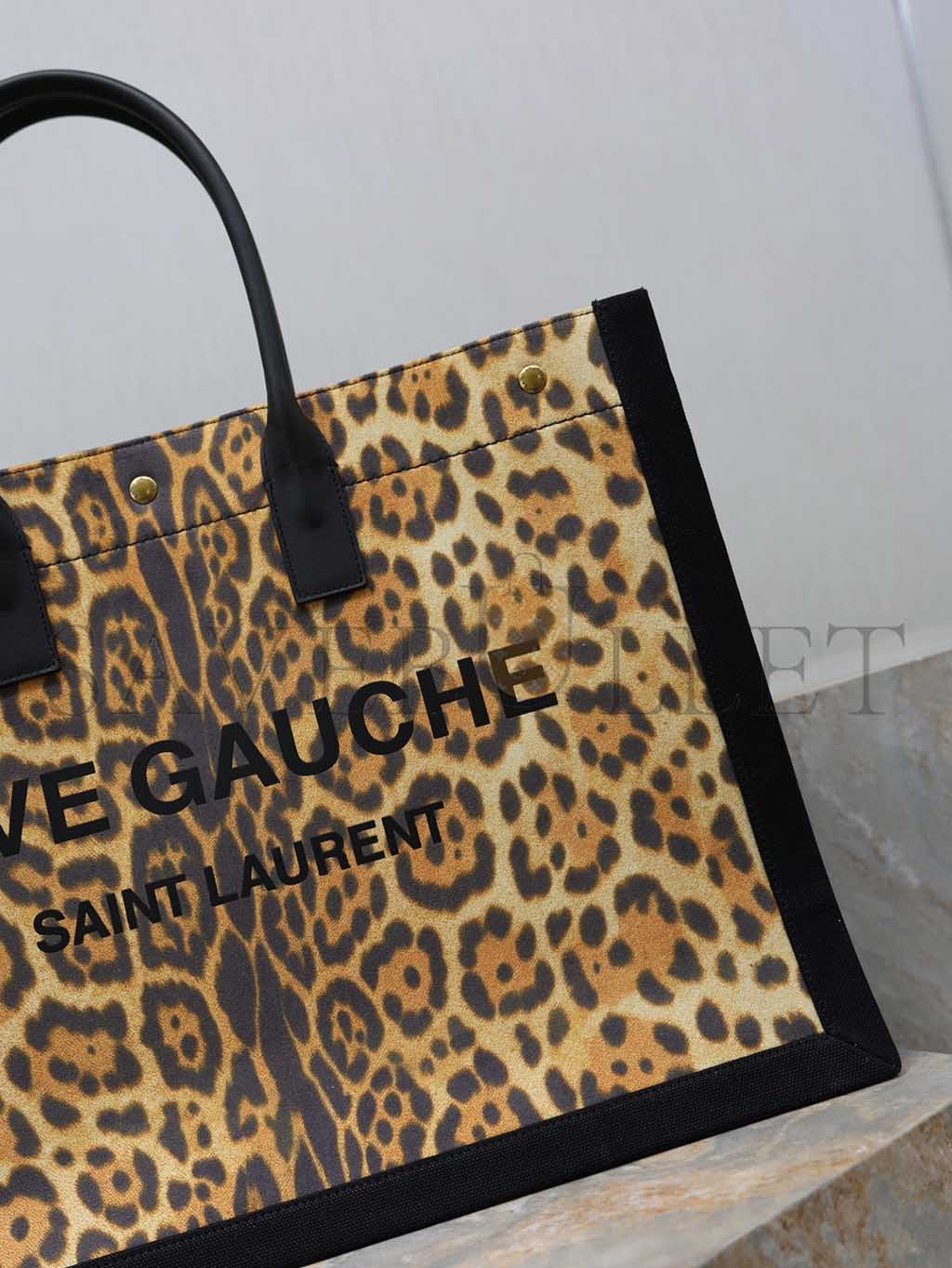 YSL WOMEN'S BROWN RIVE GAUCHE LEOPARD PRINT CANVAS & LEATHER TOTE 509415 (48*36*16cm)