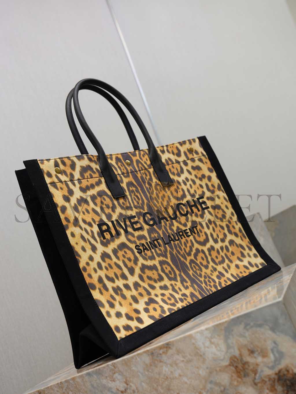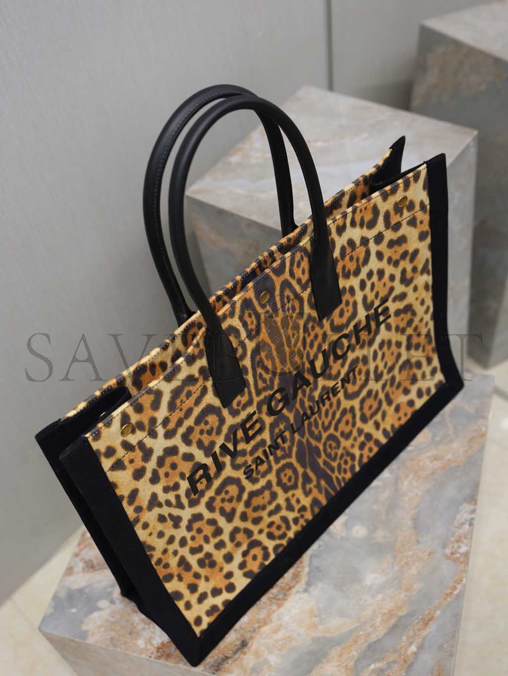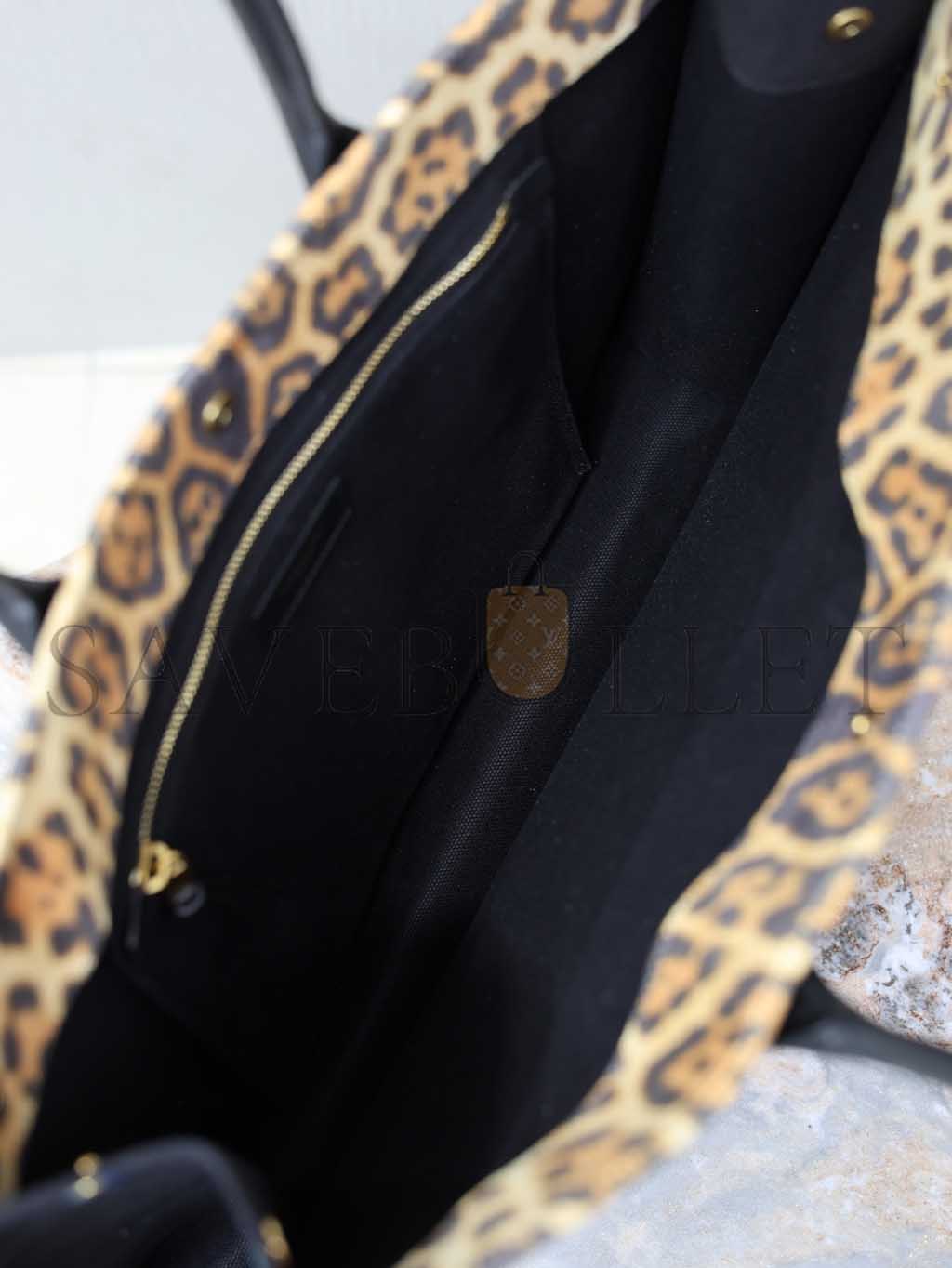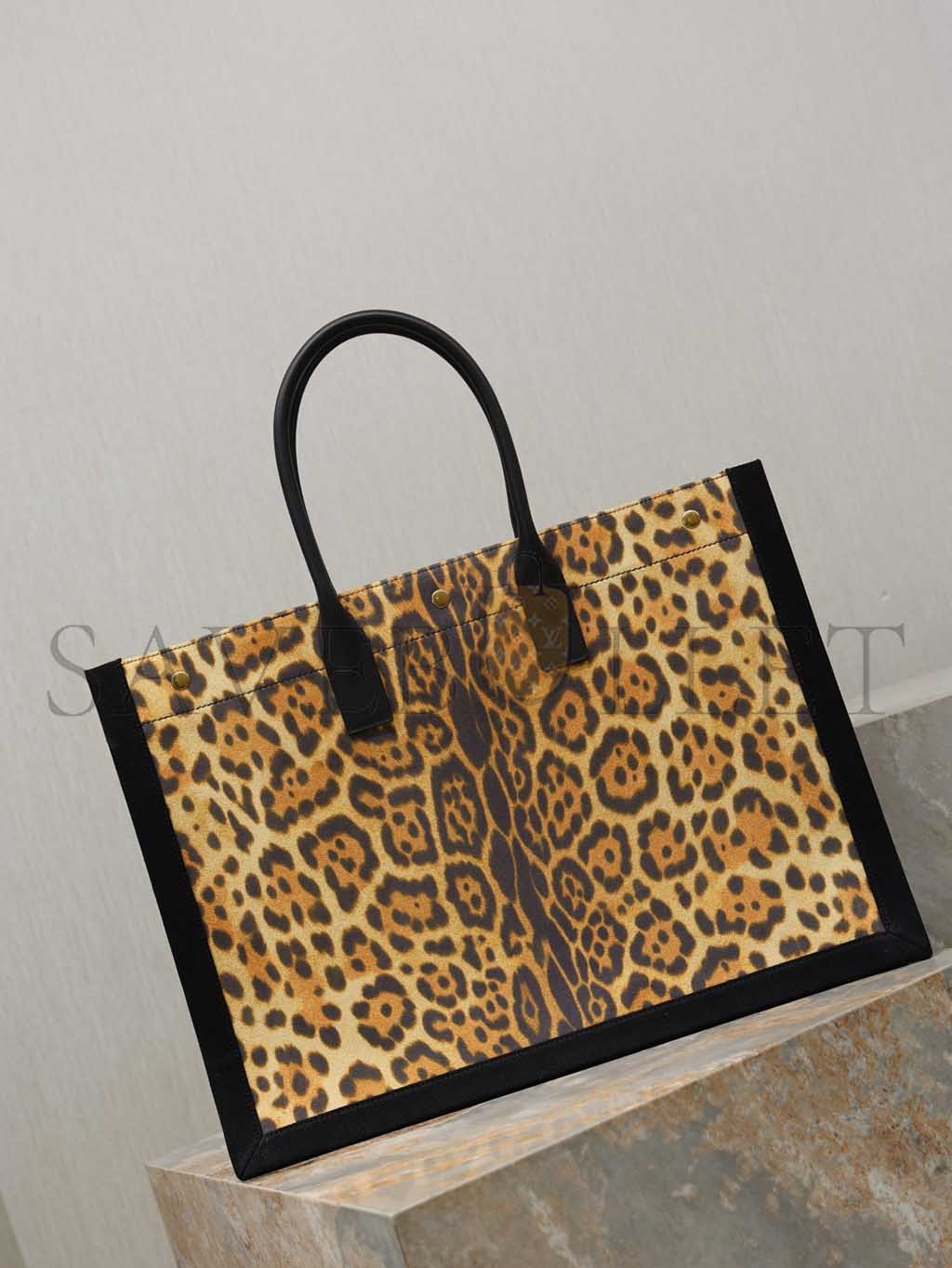 YSL WOMEN'S BROWN RIVE GAUCHE LEOPARD PRINT CANVAS & LEATHER TOTE 509415 (48*36*16cm)