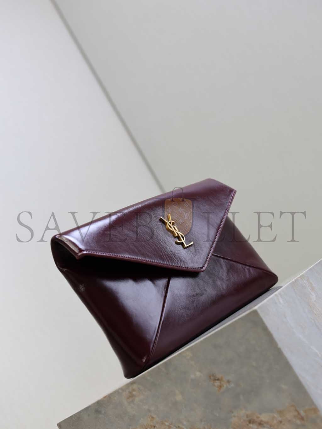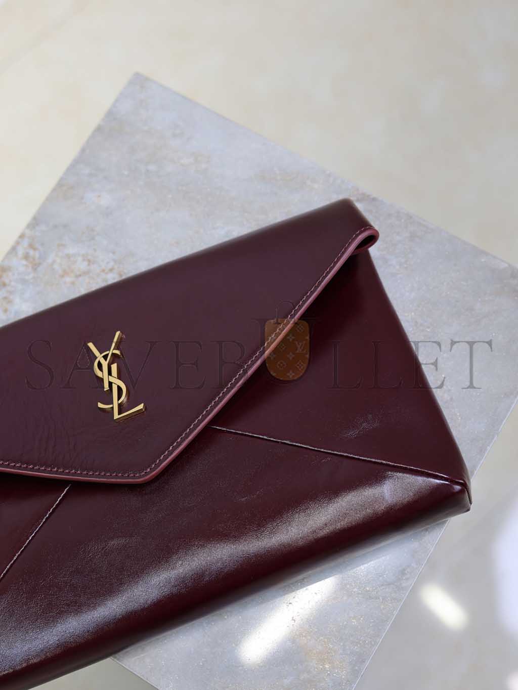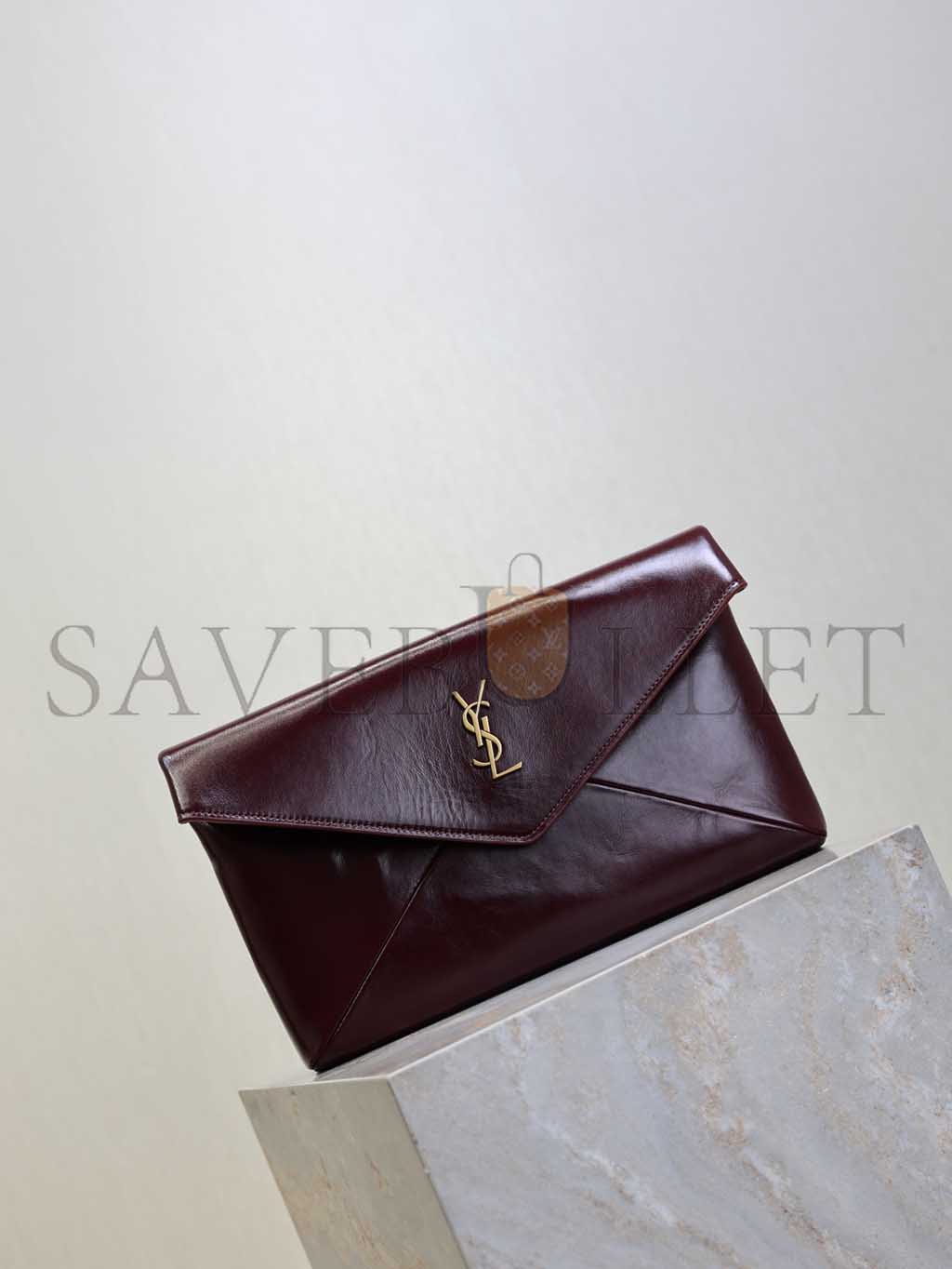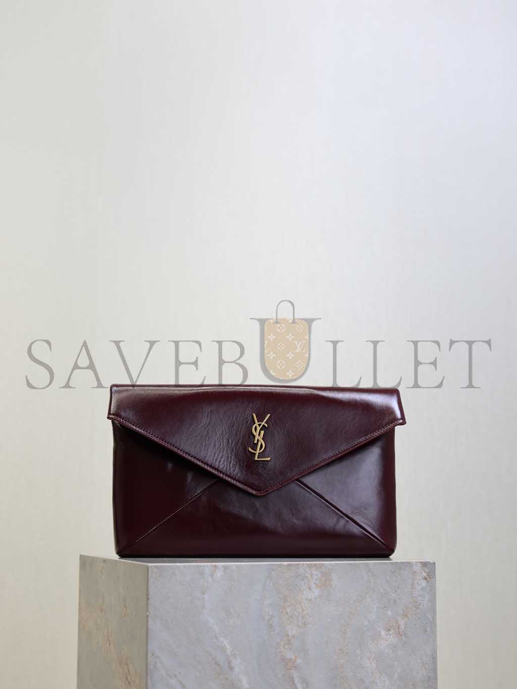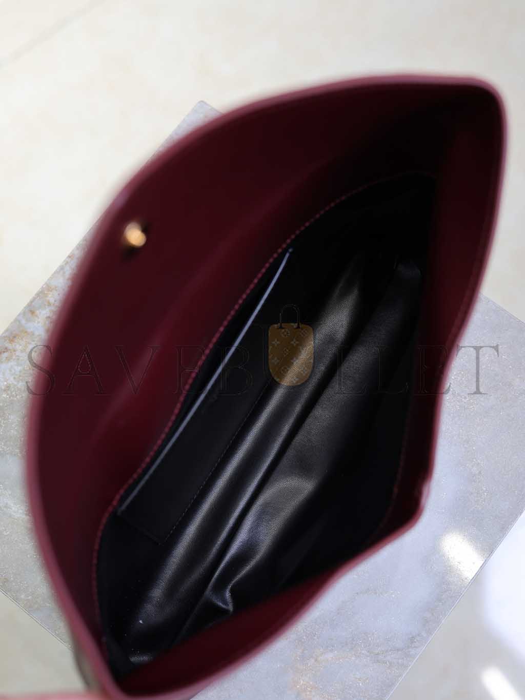 YSL LAMBSKIN CASSANDRE ENVELOPE POUCH DARK RUBY 769307 (29.5*18*4.5cm)
