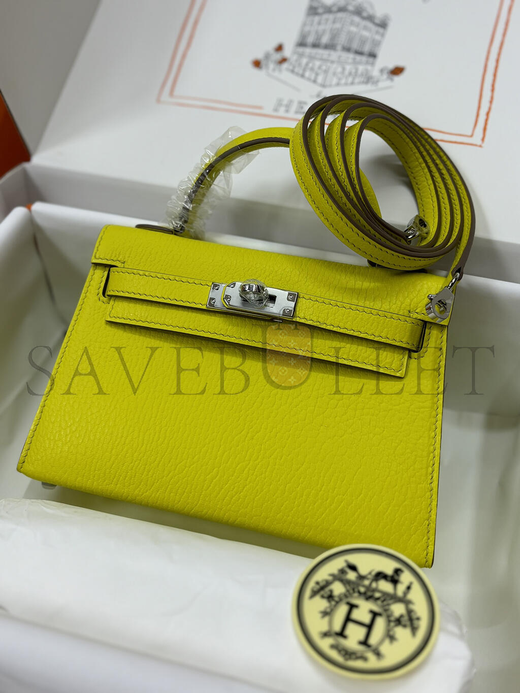 HERMÈS MINI KELLY II LIME CHEVRE LEATHER PALLADIUM HARDWARE (19*12*5.5cm)