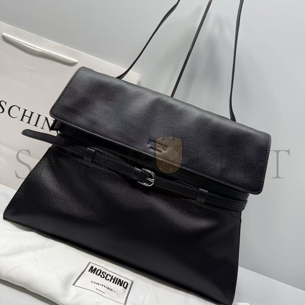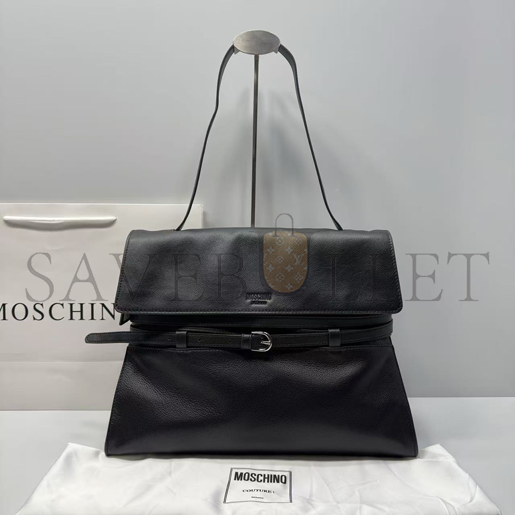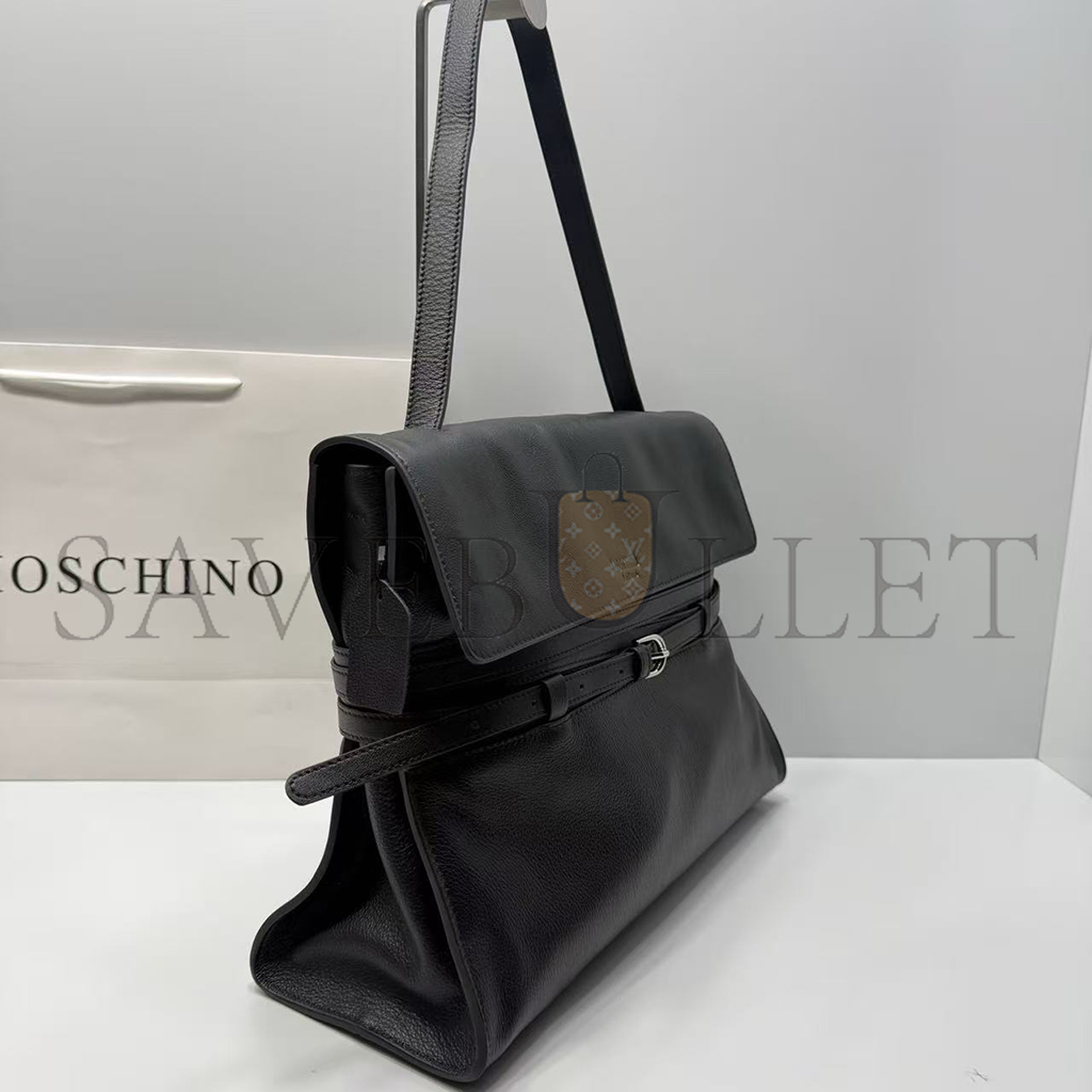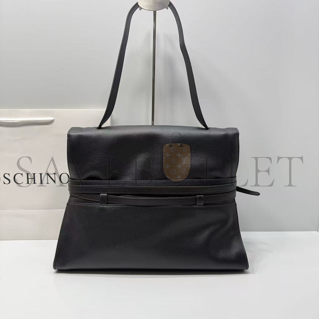 MOSCHINO TIE ME BELTED LEATHER TOTE BAG (38.5*31*15cm)