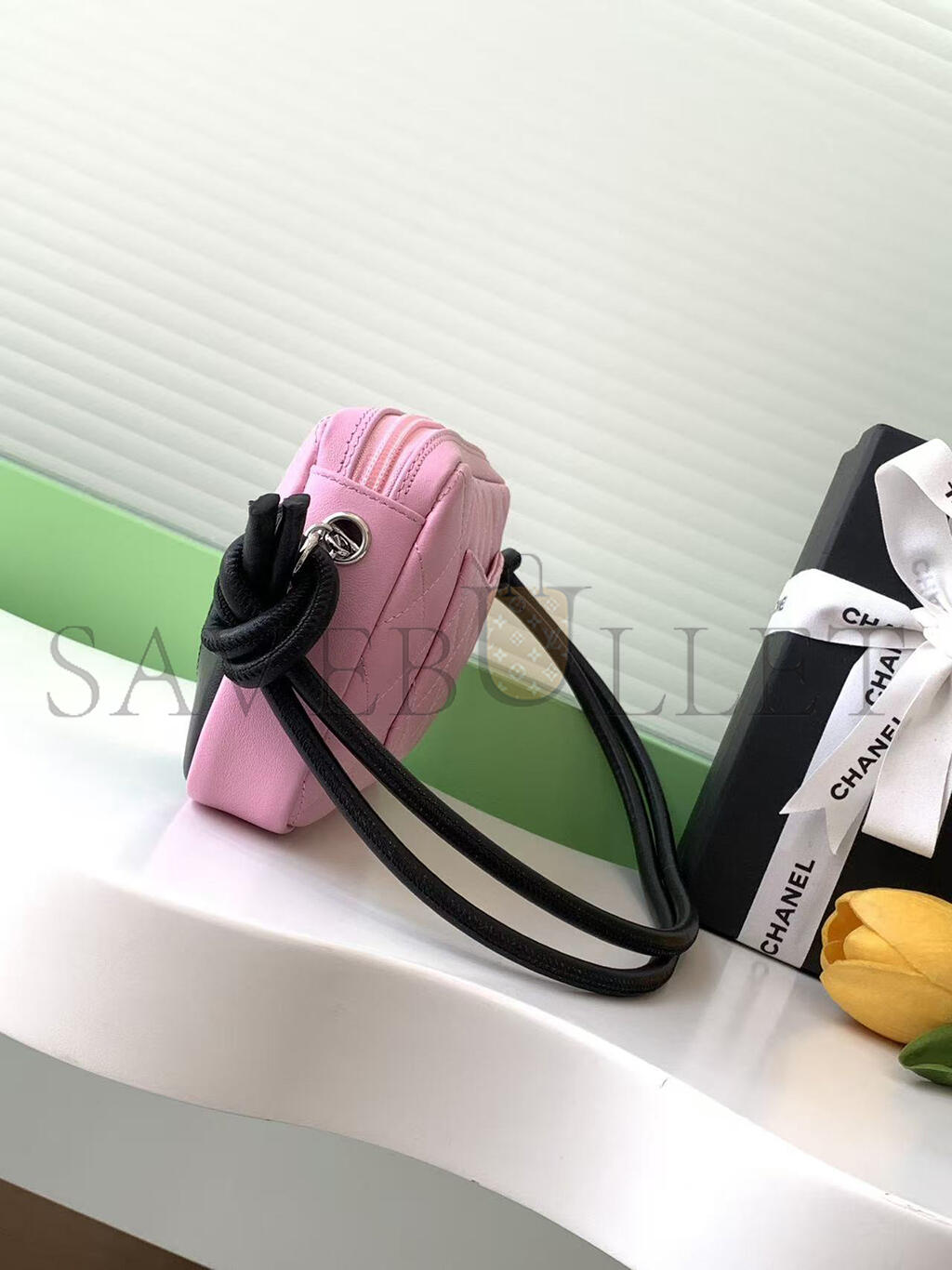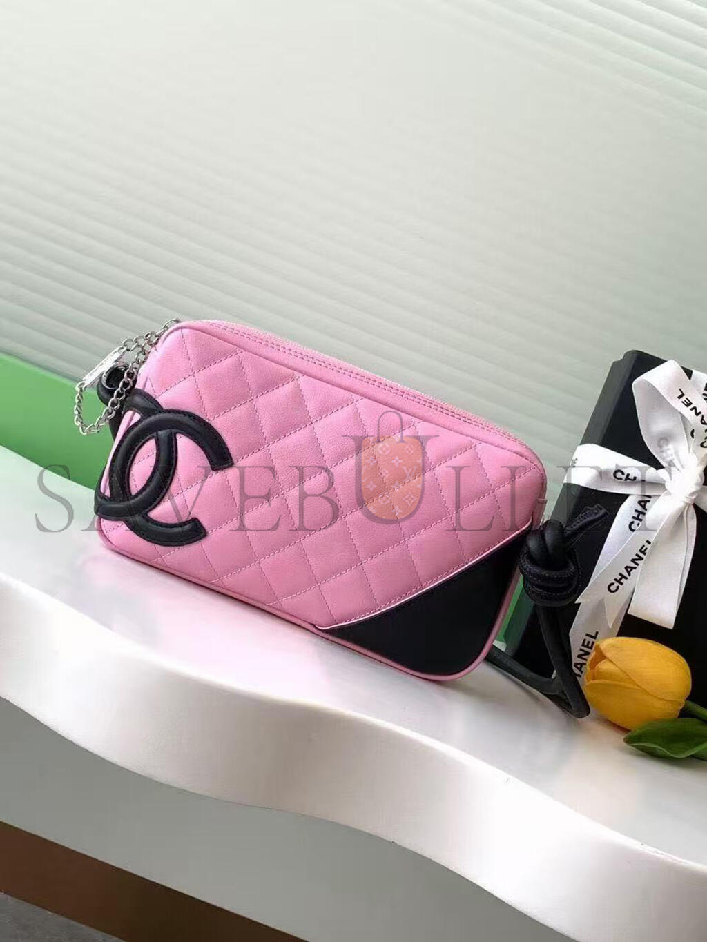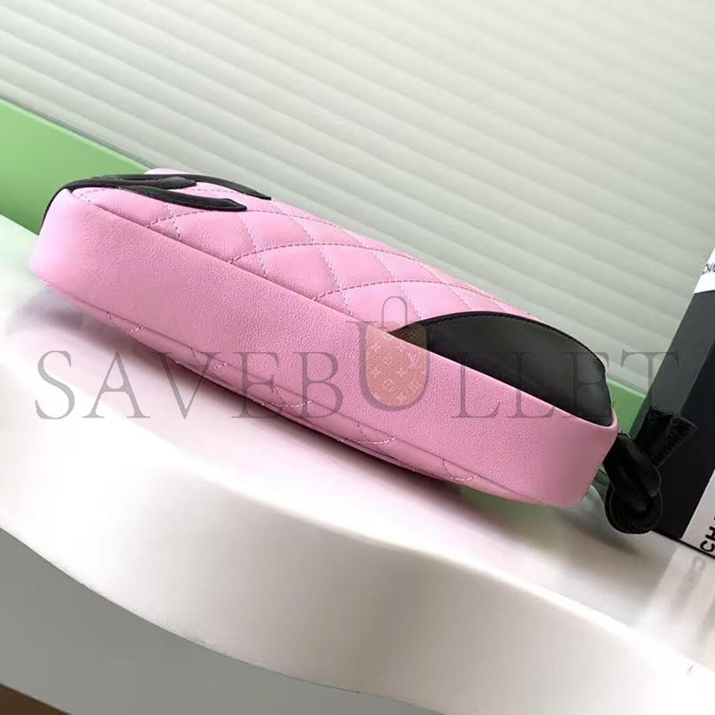 CHANEL QUILTED CAMBON POCHETTE PINK BLACK (22*12*3cm)