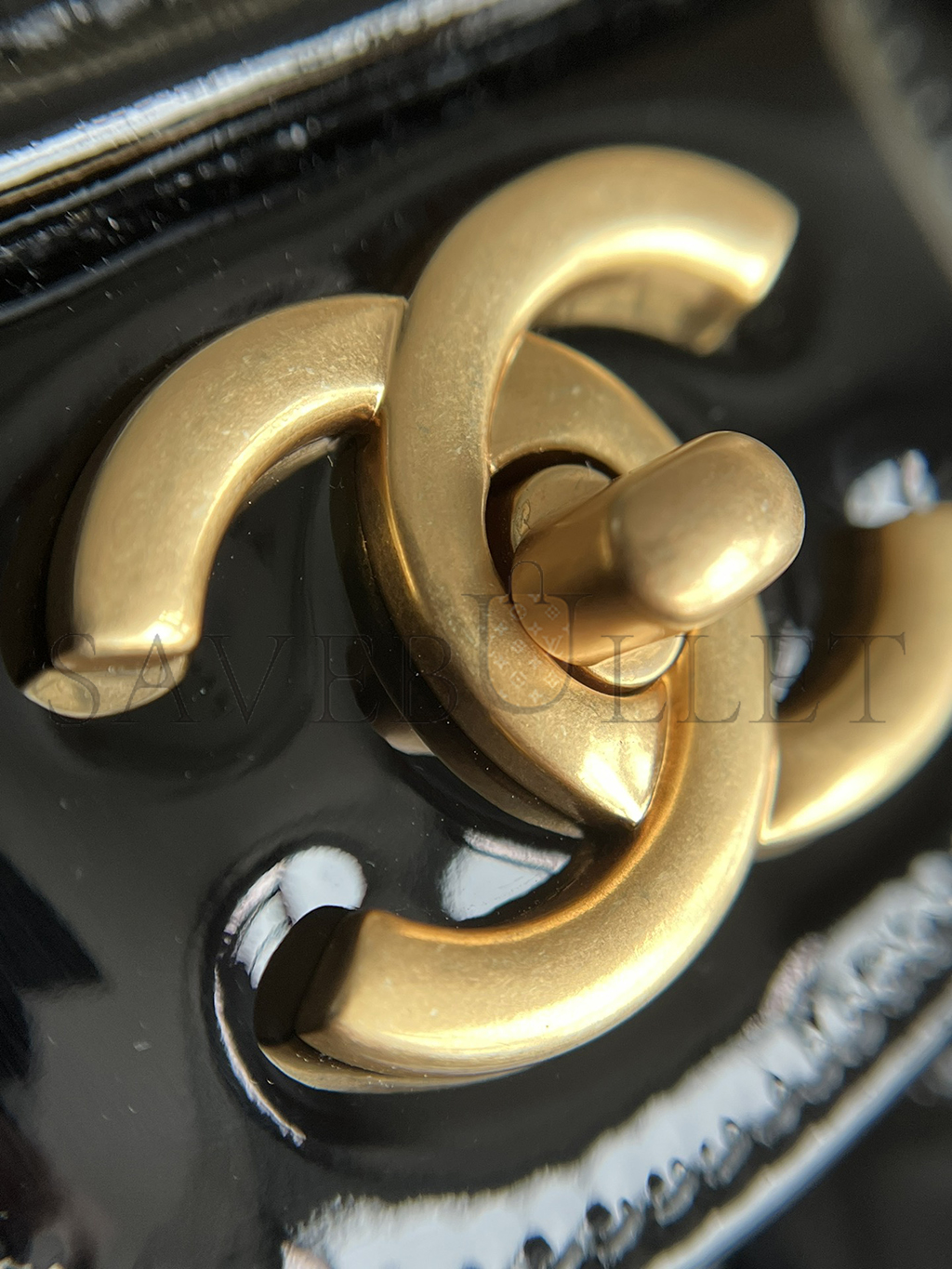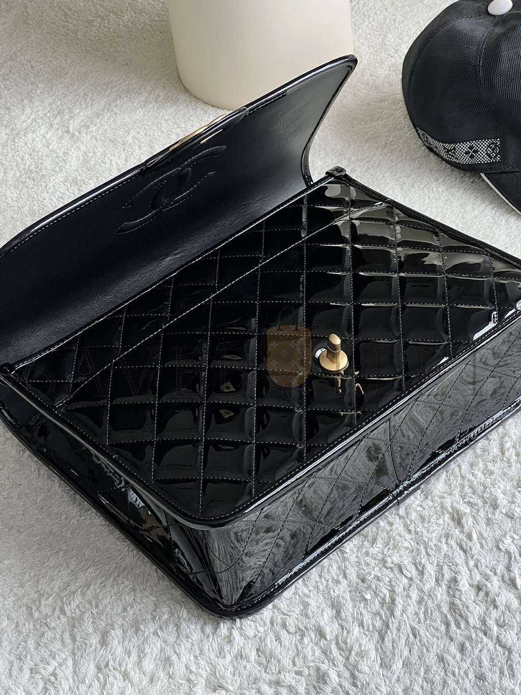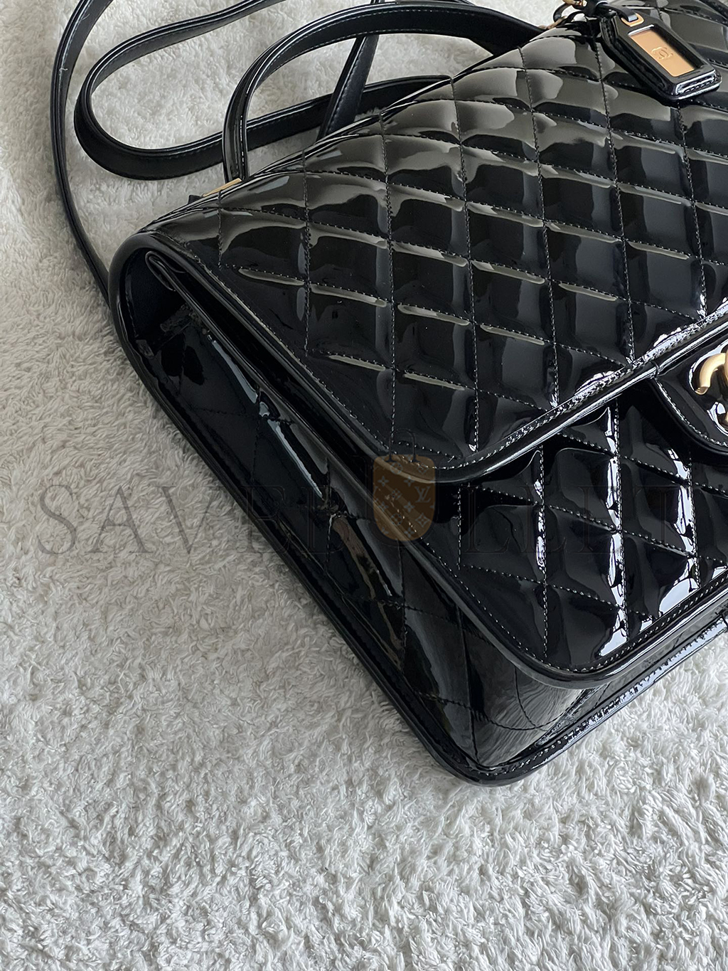 CHANEL MASTER LARGE FLAP BACKPACK BLACK PATENT ANTIQUE GOLD HARDWARE (30*23*10cm)