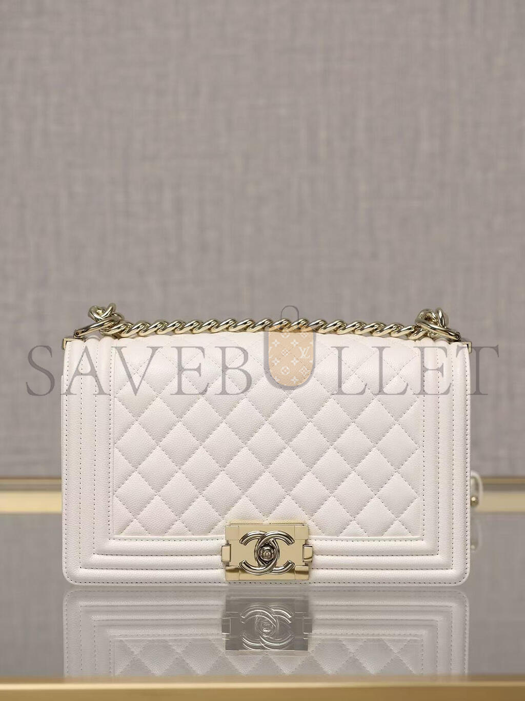 CHANEL CAVIAR MEDIUM QUILTED BOY FLAP WHITE A67086 (25*15*8cm)
