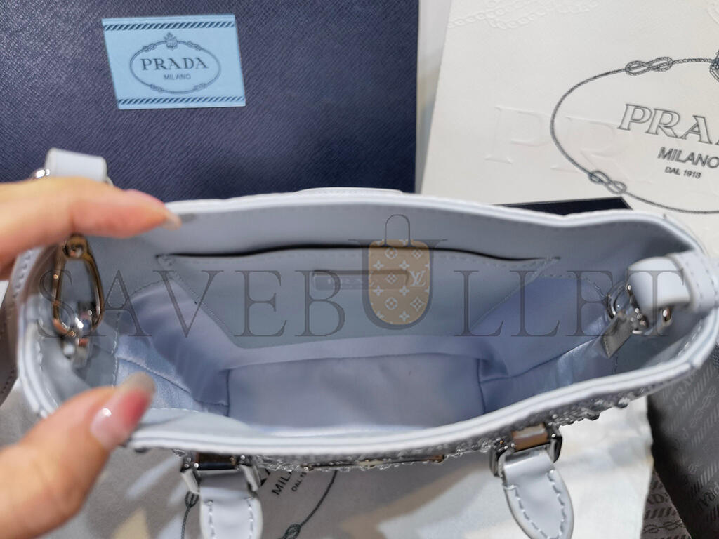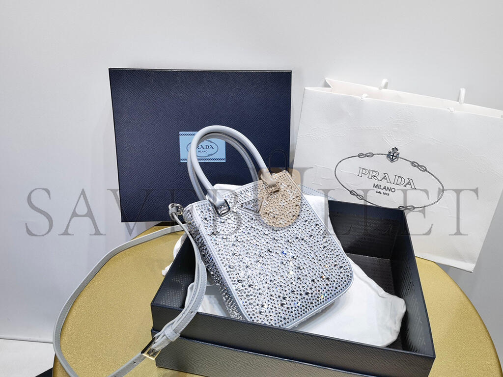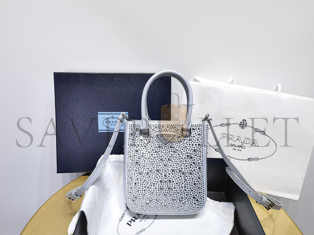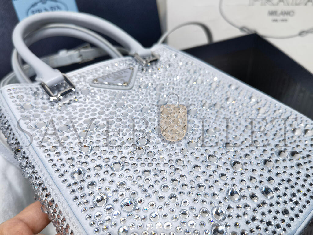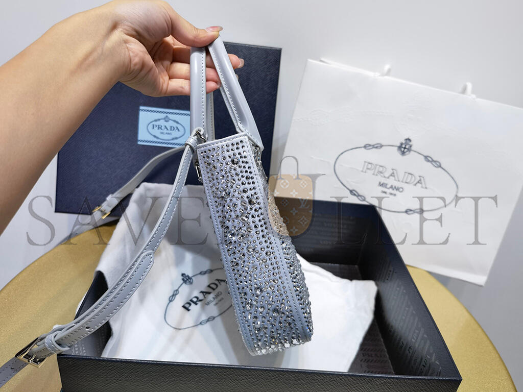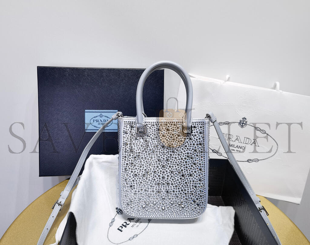 PRADA SMALL SATIN TOTE BAG WITH CRYSTALS 1BA331 (17.5*15*5cm)