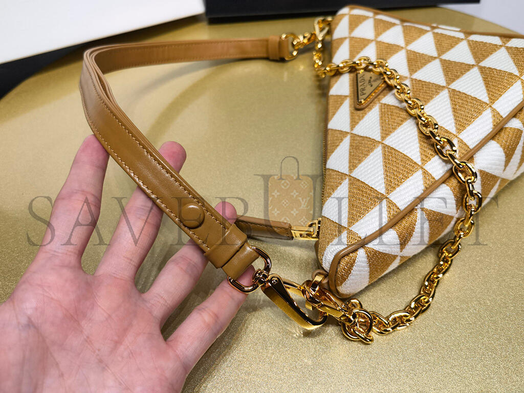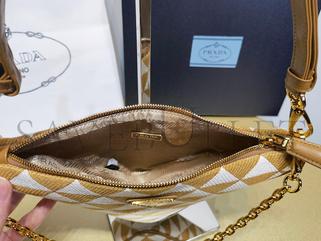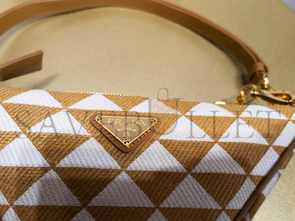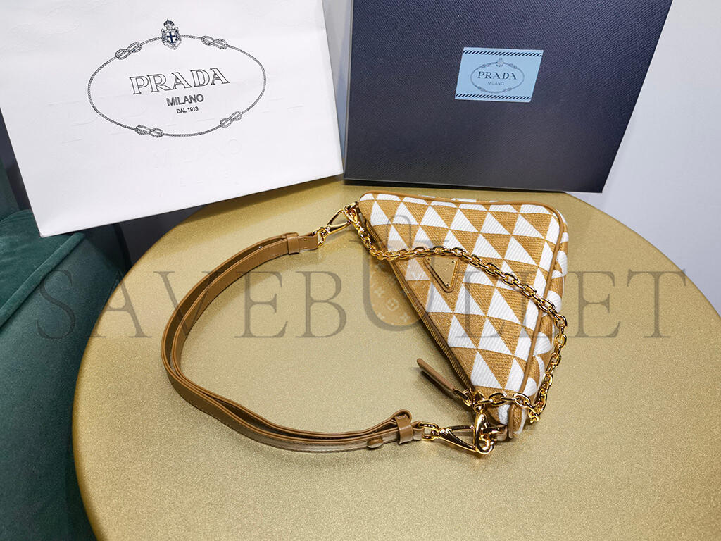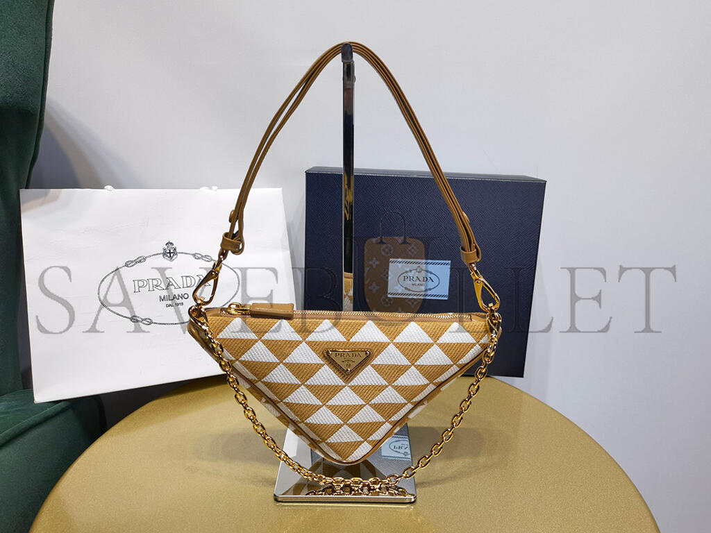 PRADA SYMBOLE TRIANGLE BAG JACQUARD MINI NEUTRAL 1BC543 (27*14*6.5cm)