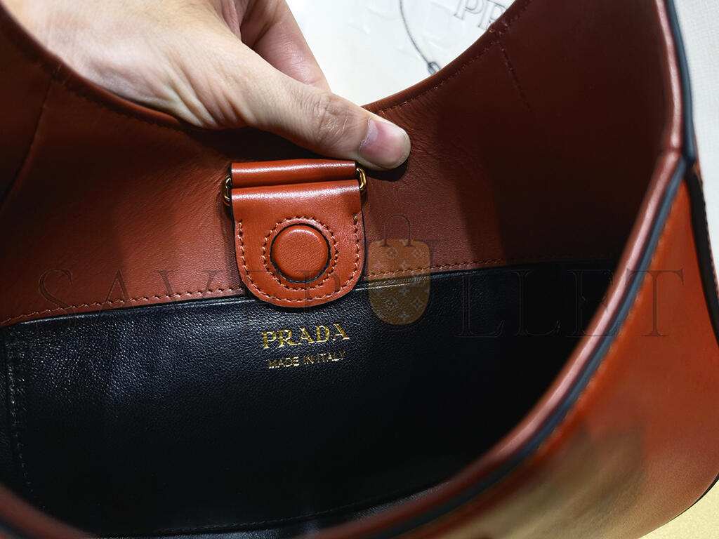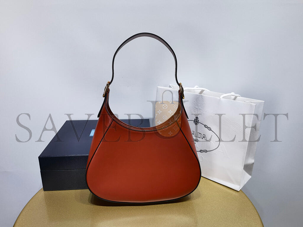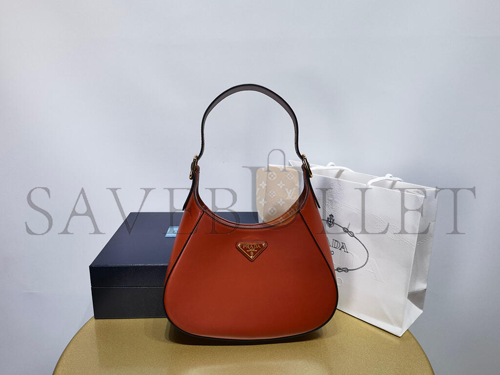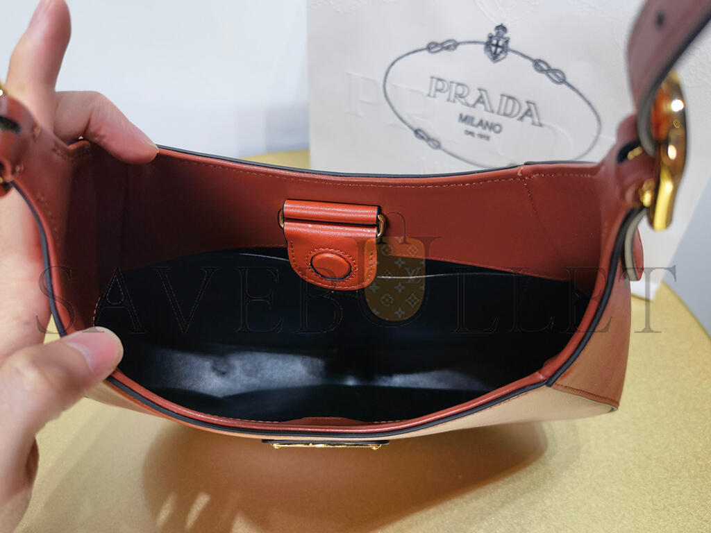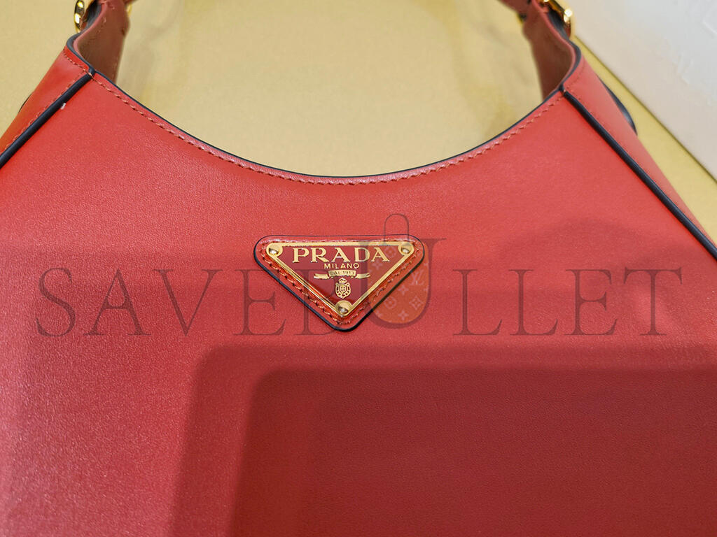 PRADA LEATHER SHOULDER BAG WITH ENAMELED METAL TRIANGLE LOGO AND METAL HARDWARE BERRY 1BC179 (26*19*5cm)