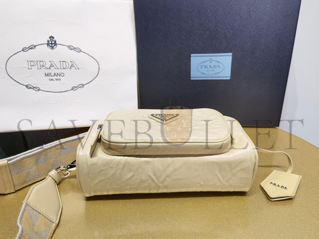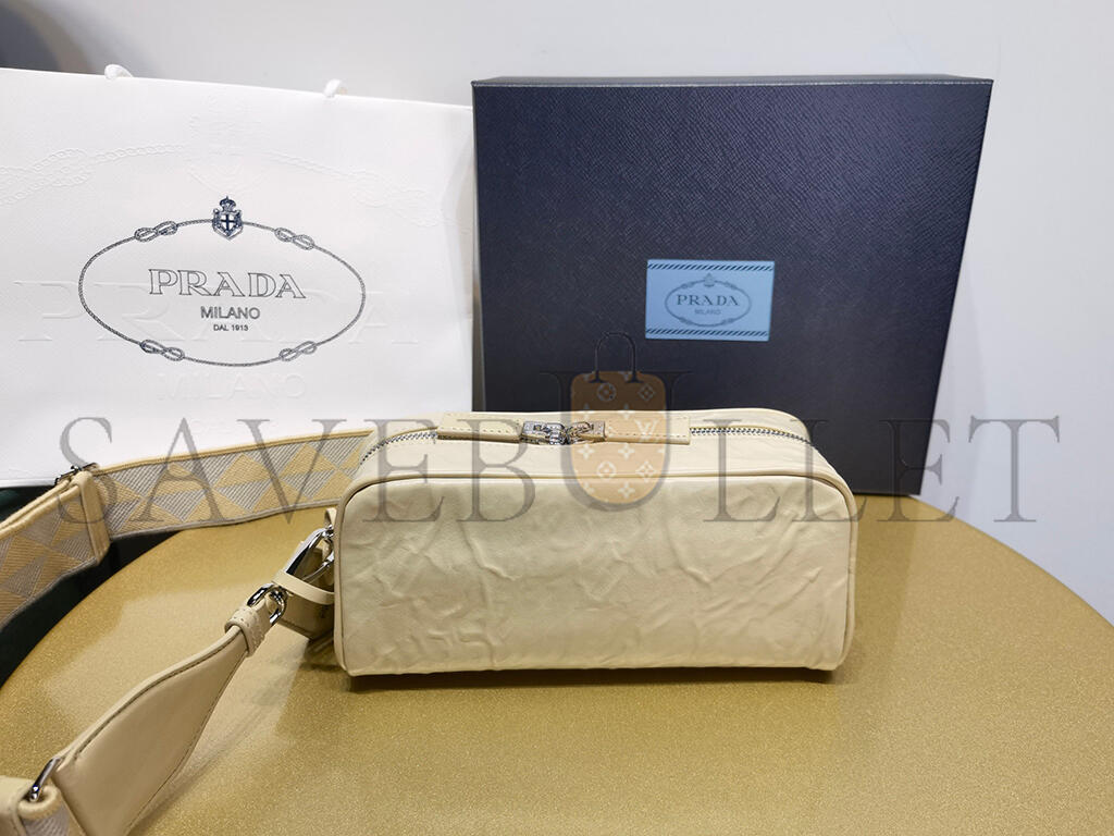 PRADA NAPPA LEATHER CROSSBODY BAG SHOULDER BAG WOMEN'S BEIGE 1BH198 (22*10.5*7cm)