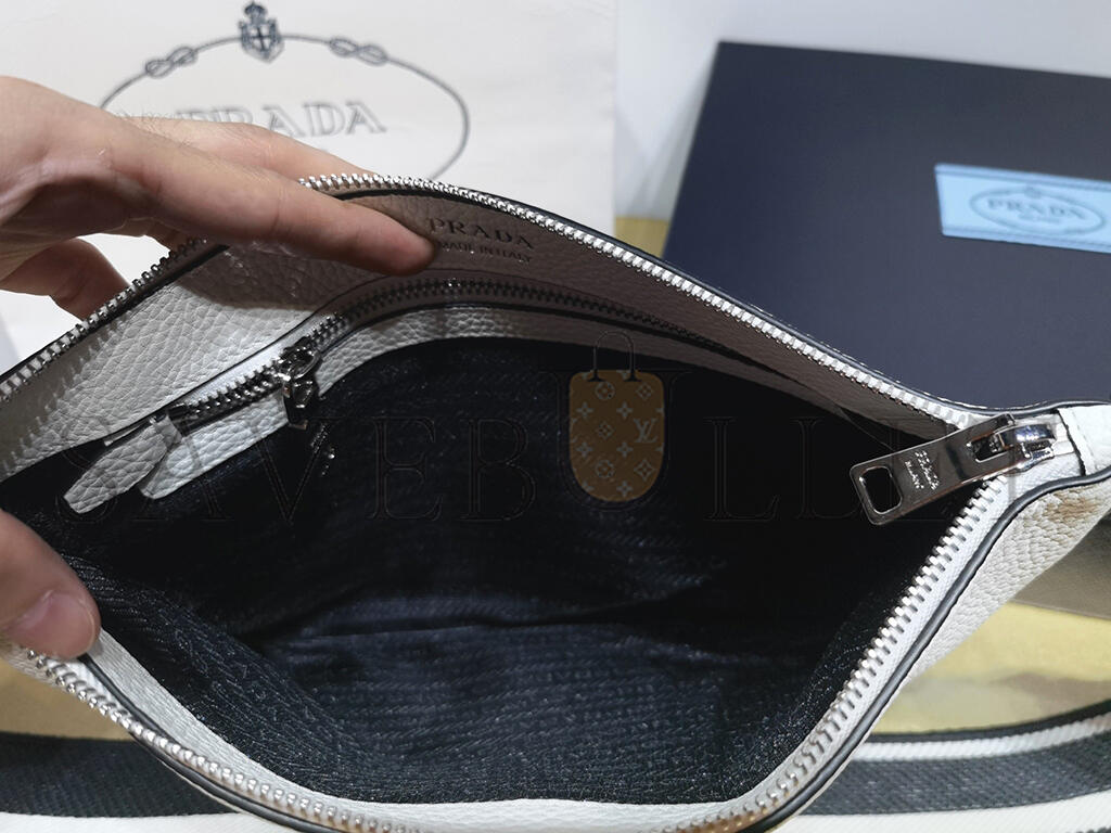 PRADA MONOCHROME LOGO ZIP CLOSURE LEATHER CROSSBODY SHOULDER BAG 1BH050 (30*19.5cm)