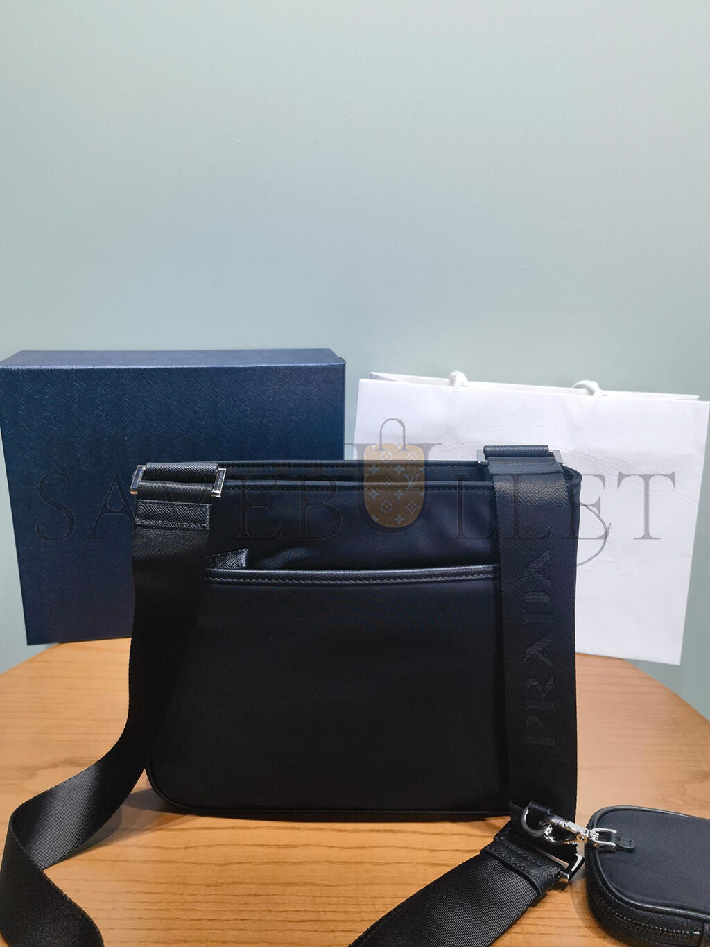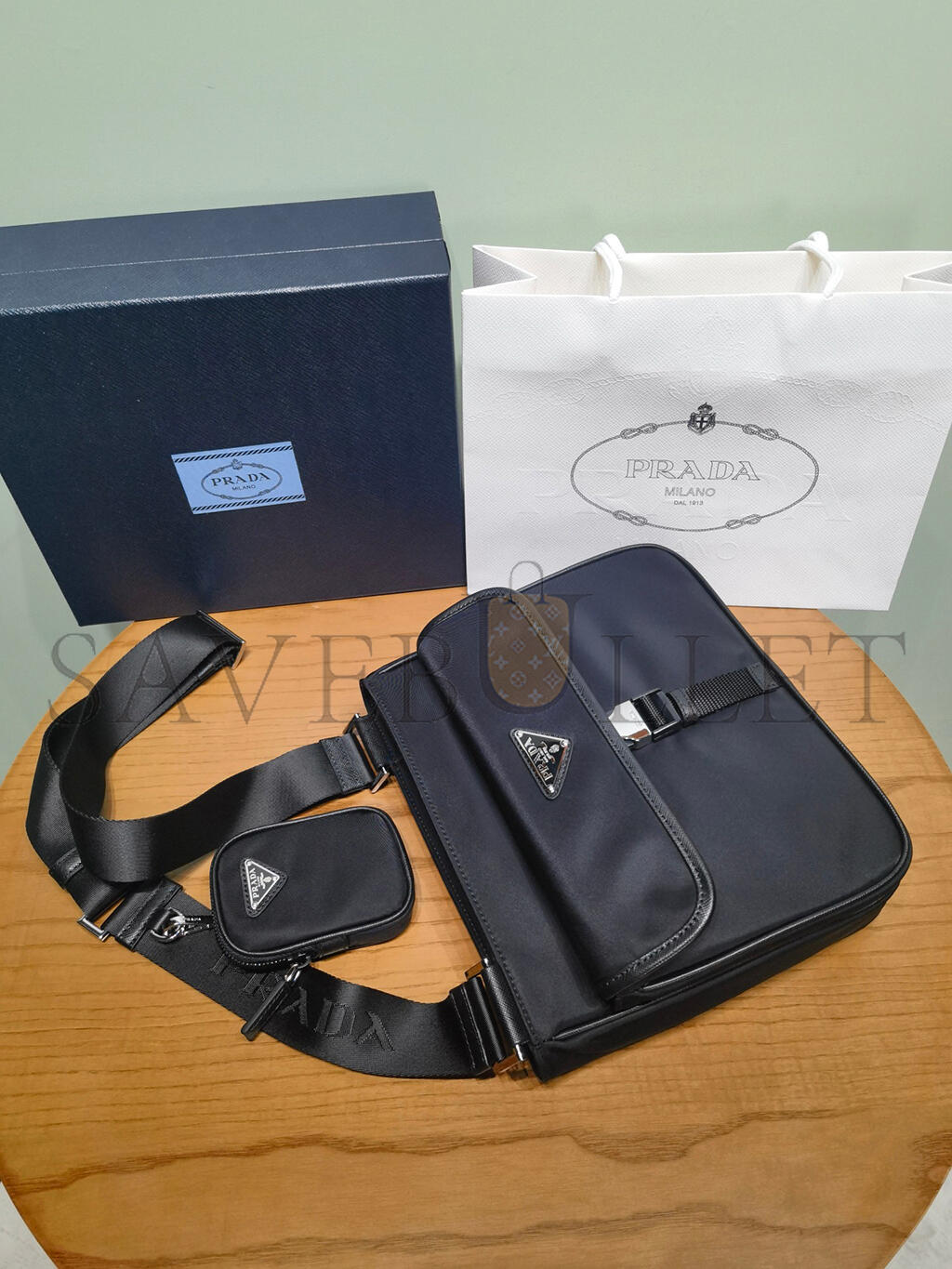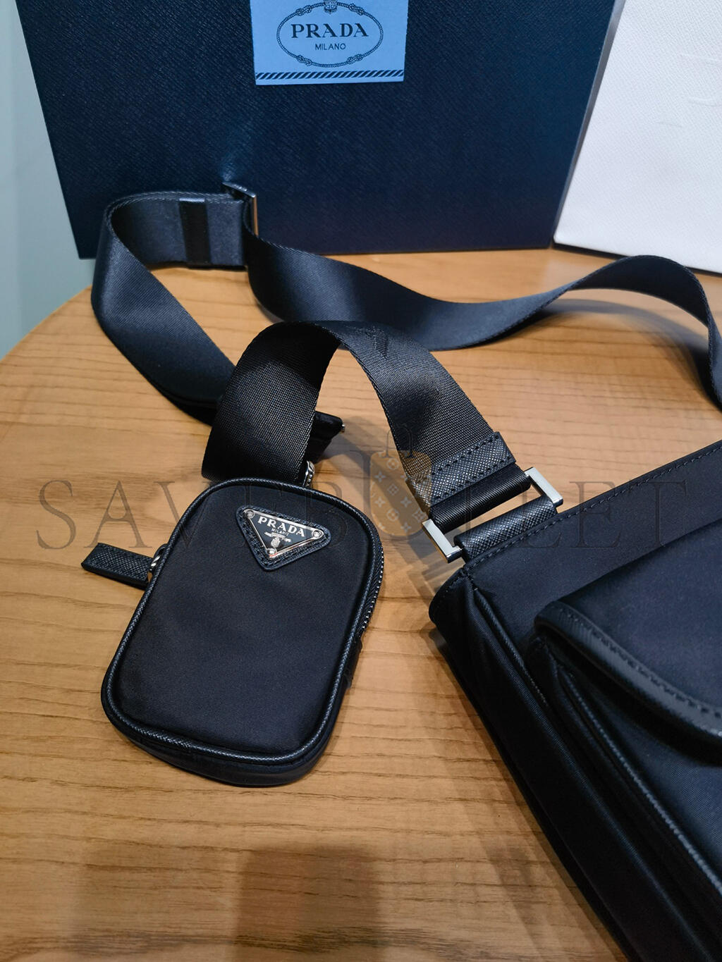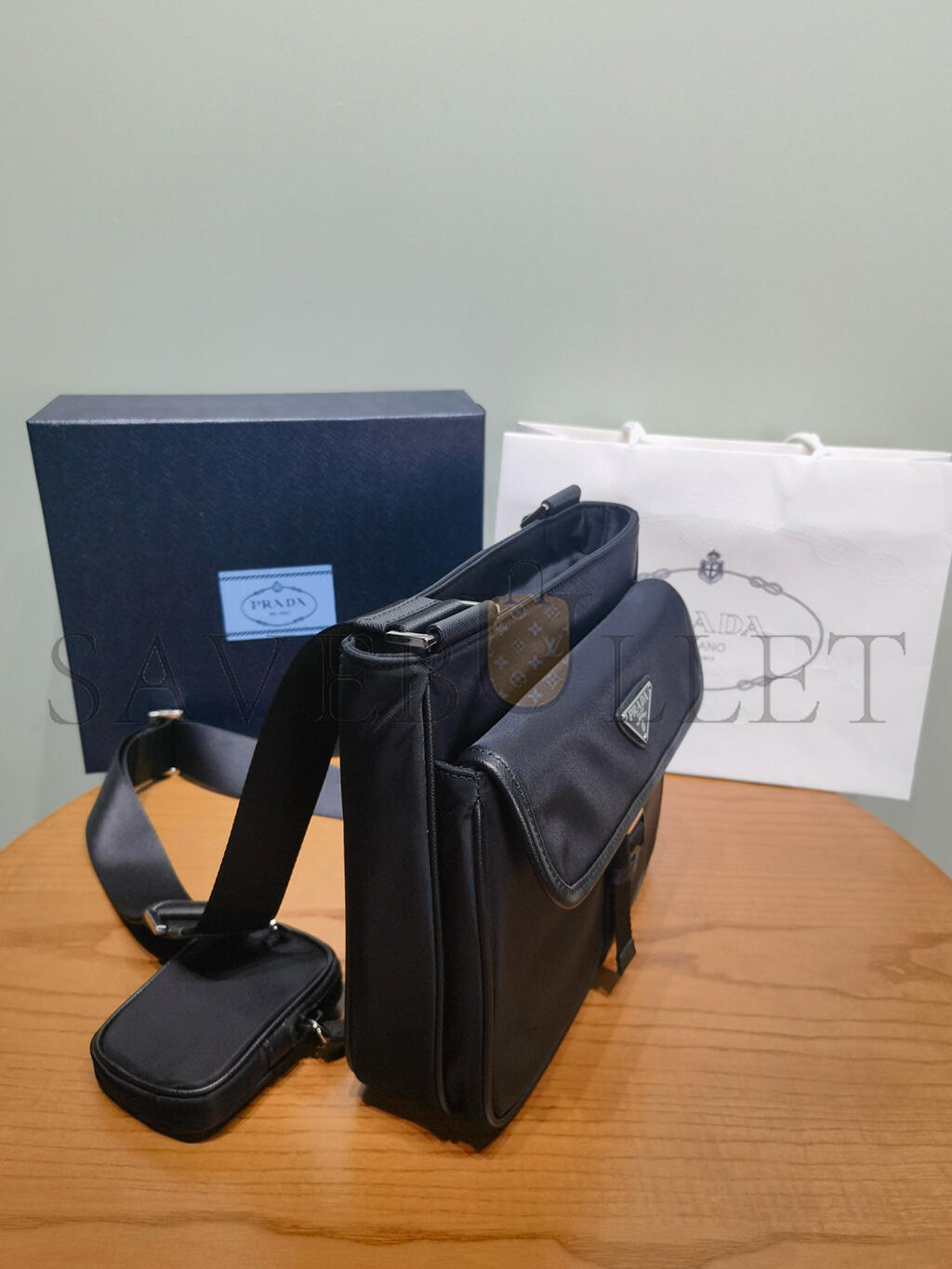 PRADA RE-NYLON AND SAFFIANO LEATHER SHOULDER BAG 2VH110 (25*22*7cm)