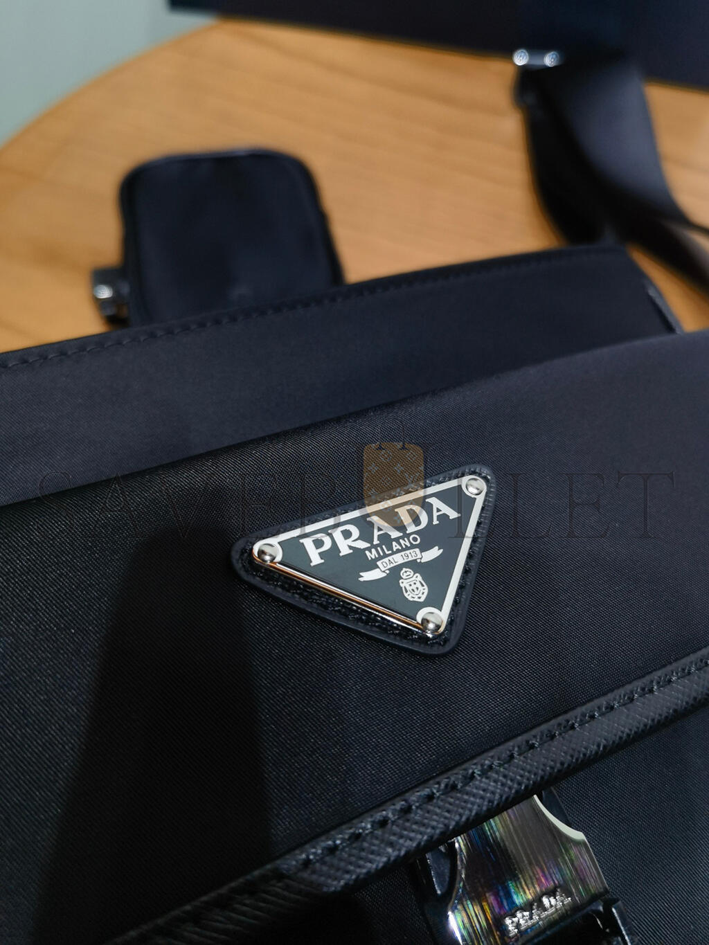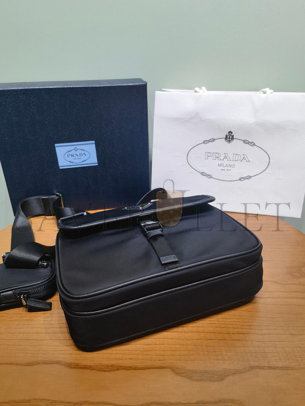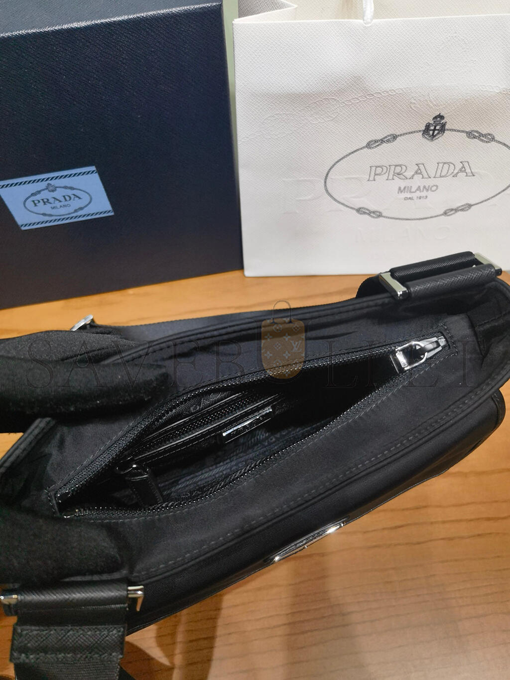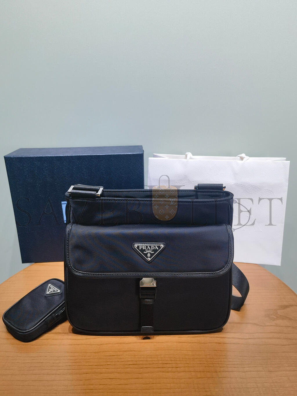 PRADA RE-NYLON AND SAFFIANO LEATHER SHOULDER BAG 2VH110 (25*22*7cm)