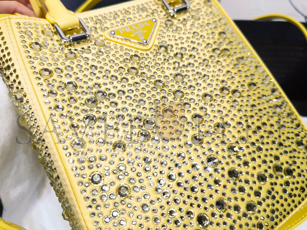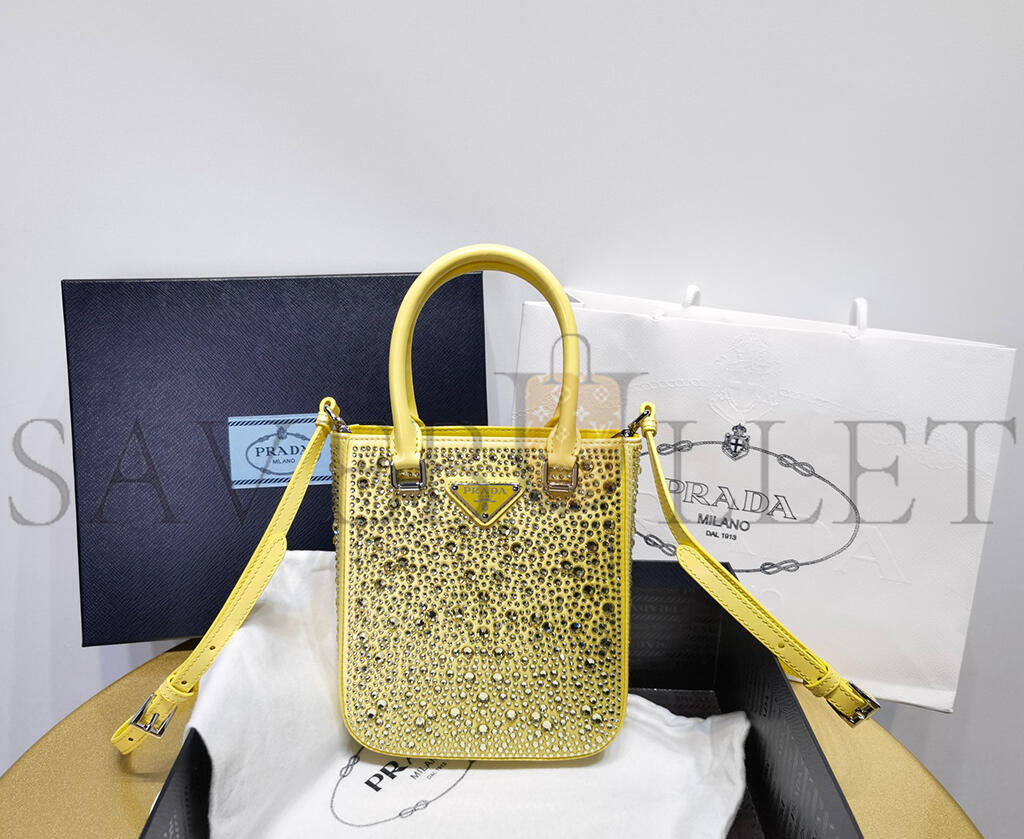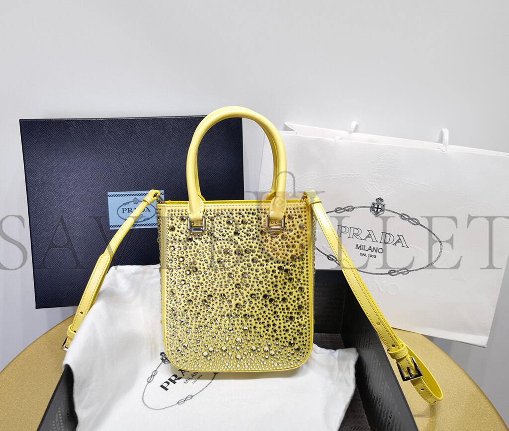 PRADA SMALL SATIN TOTE BAG WITH CRYSTALS 1BA331 (17.5*15*5cm)