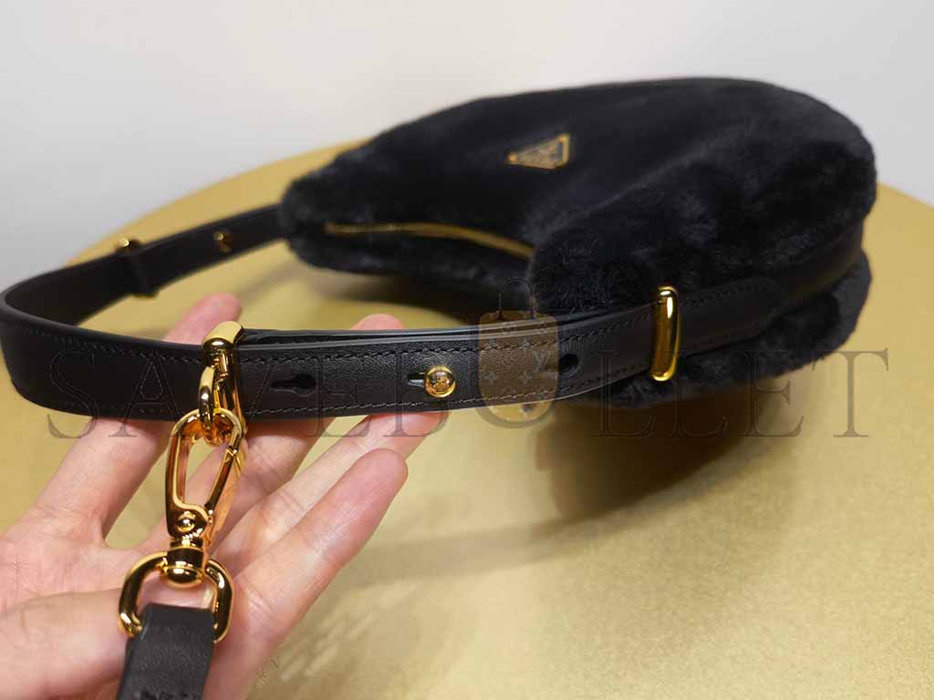 PRADA SHEARLING AND LEATHER ARQU SATCHEL 1BC194 (22.5*18.5*6.5cm)