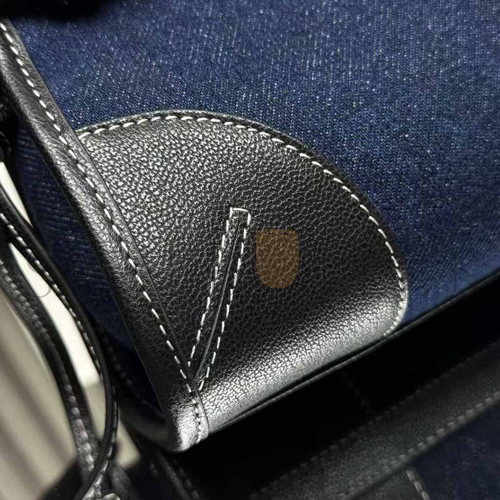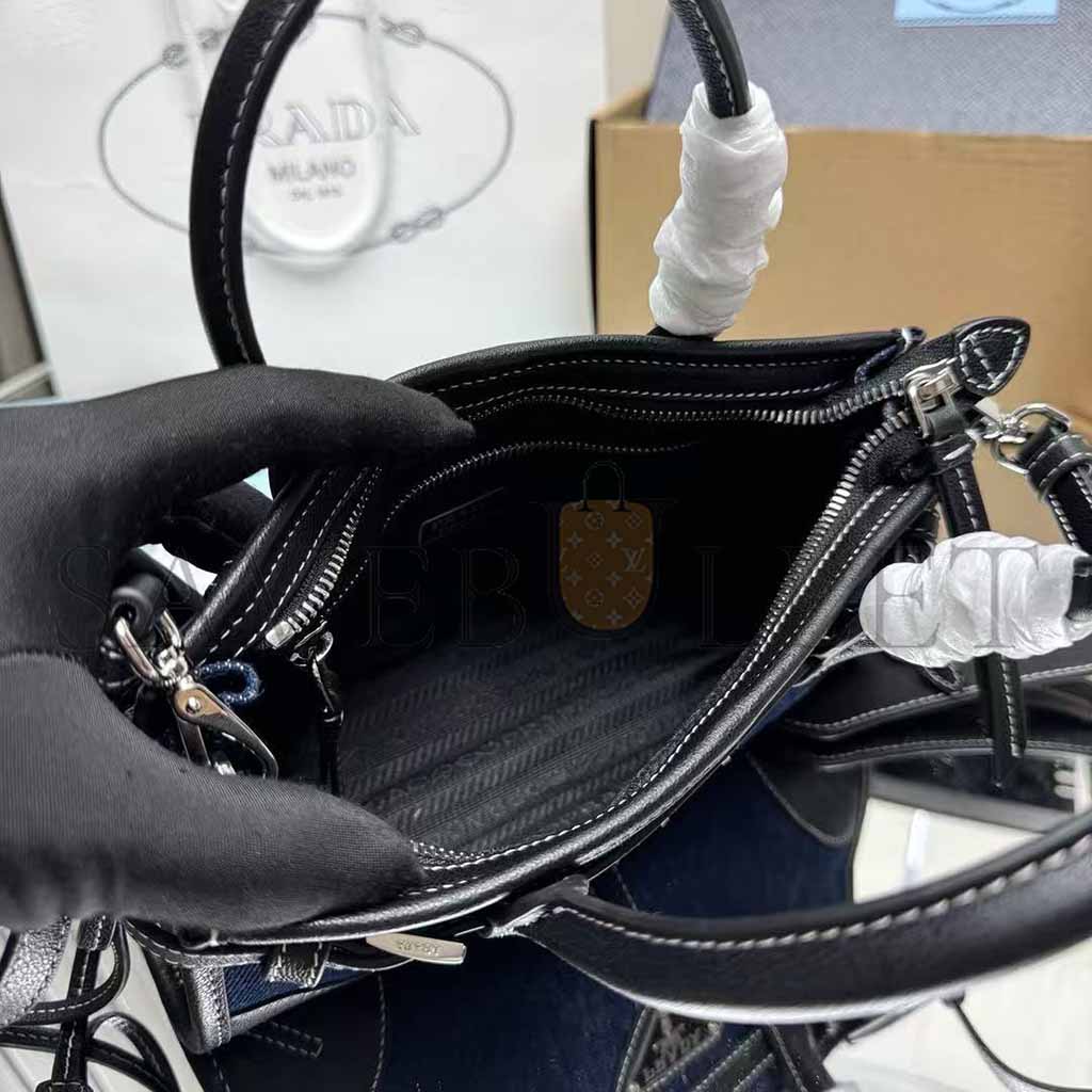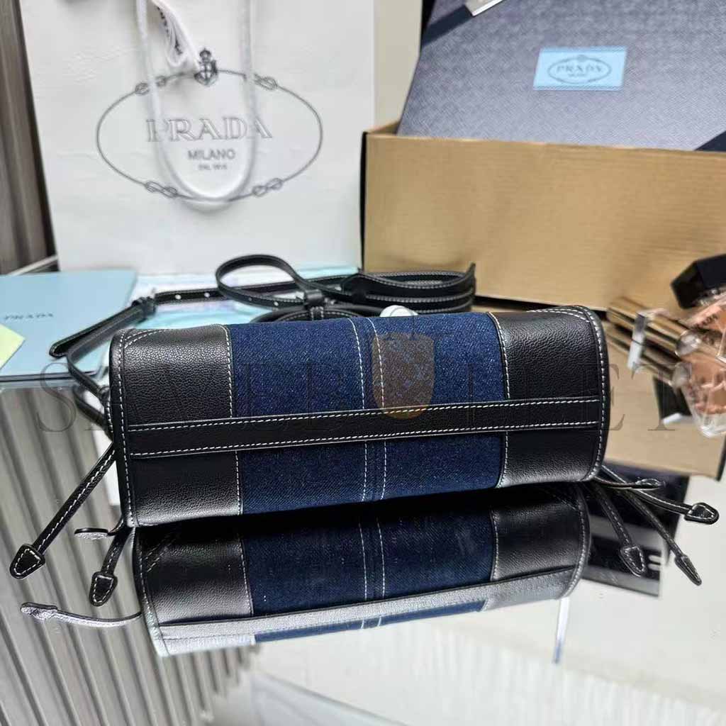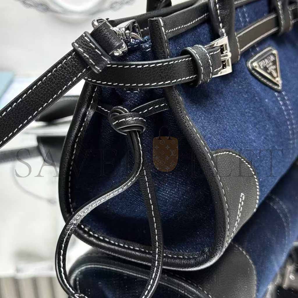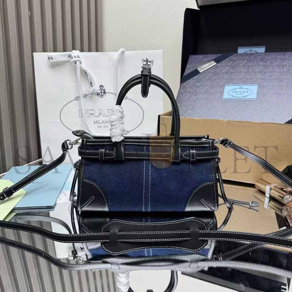 PRADA MINI TRIANGULAR METAL LOGO DENIM TOTE BAG 1BA486 (24*23*9cm)