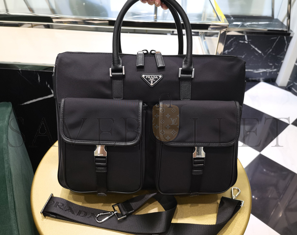 PRADA NYLON BUSINESS BAG HANDBAG BLACK 2VE017 (40*32*7cm)