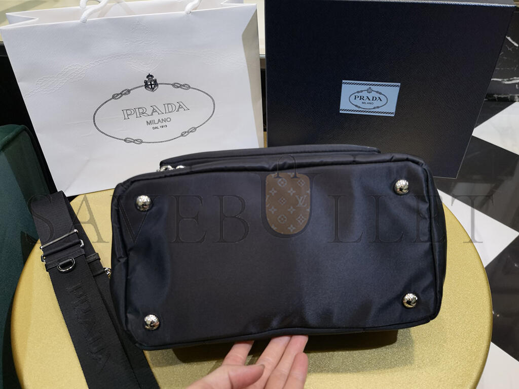 PRADA BLACK TESSUTO NYLON CONVERTIBLE HANDBAG 1BG364 (28*20*15cm)