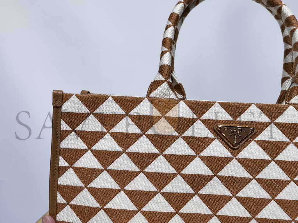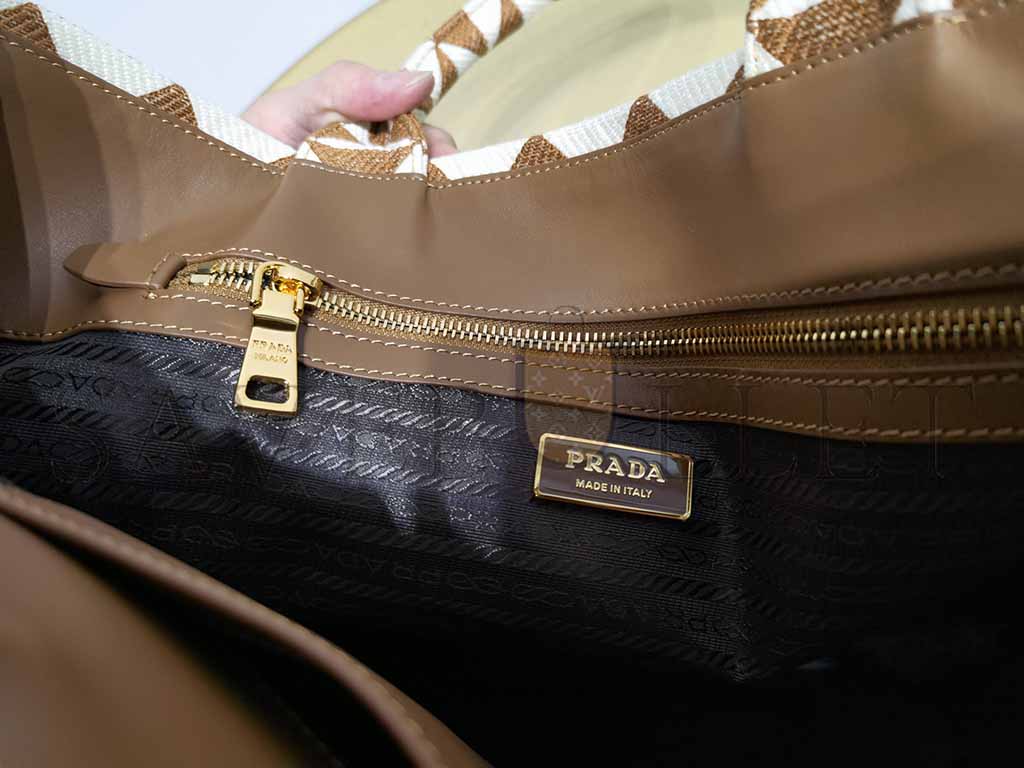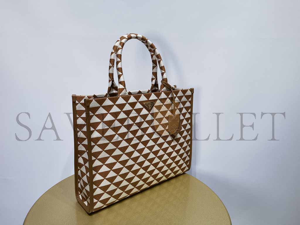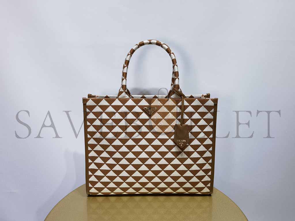 PRADA BROWN CREAM LARGE SYMBOLE TOTE 1BA356 (39*31*11cm)
