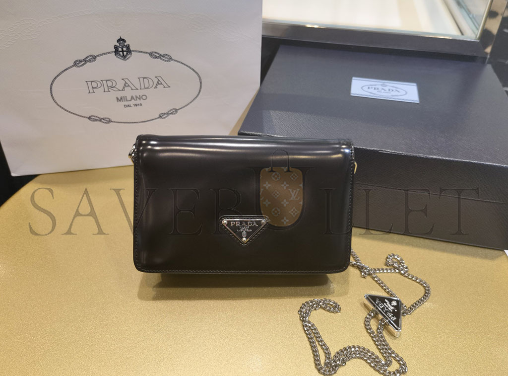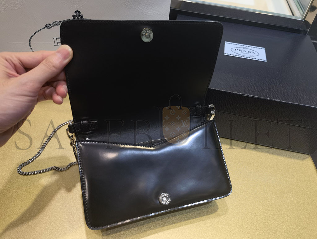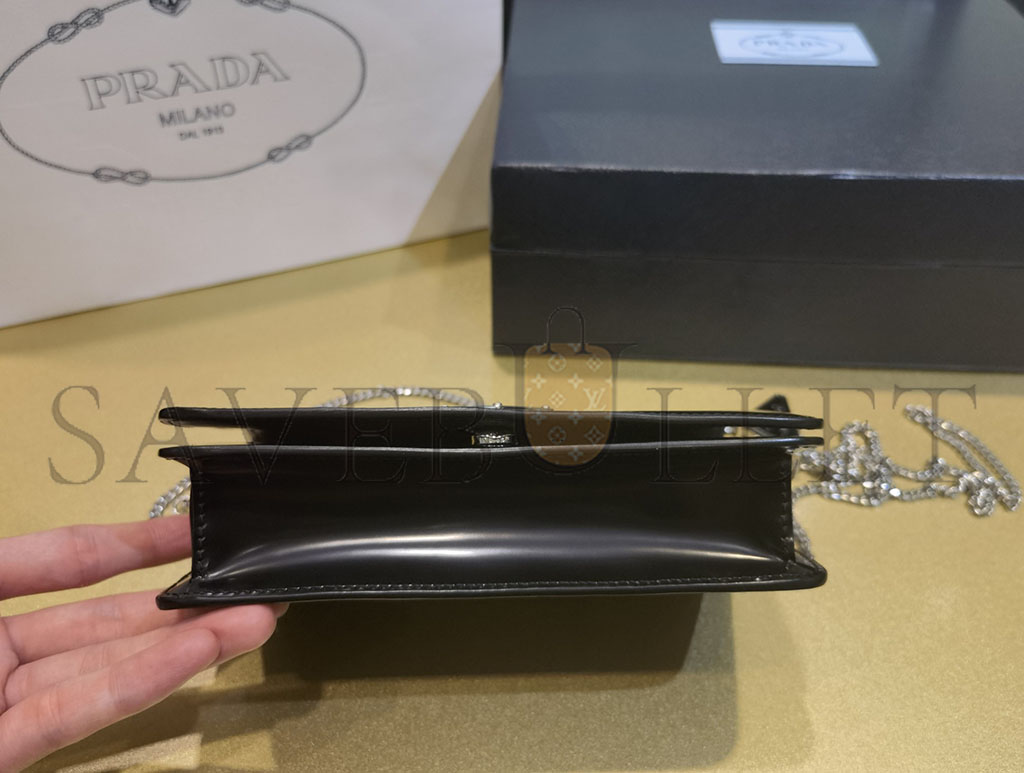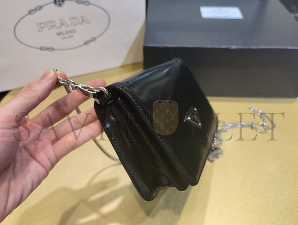 PRADA LOGO-PLAQUE MICRO LEATHER SHOULDER BAG 1BD307 (19*10.5*3.5cm)