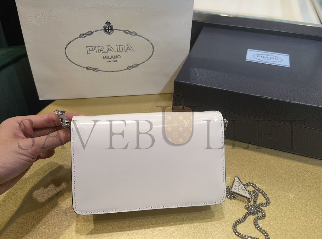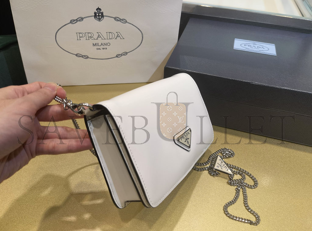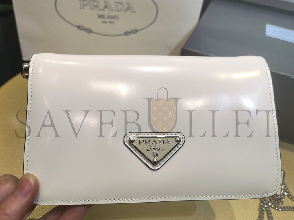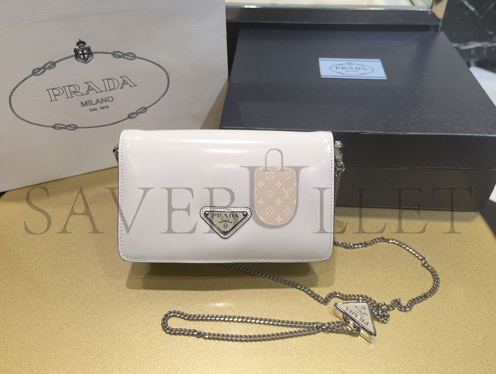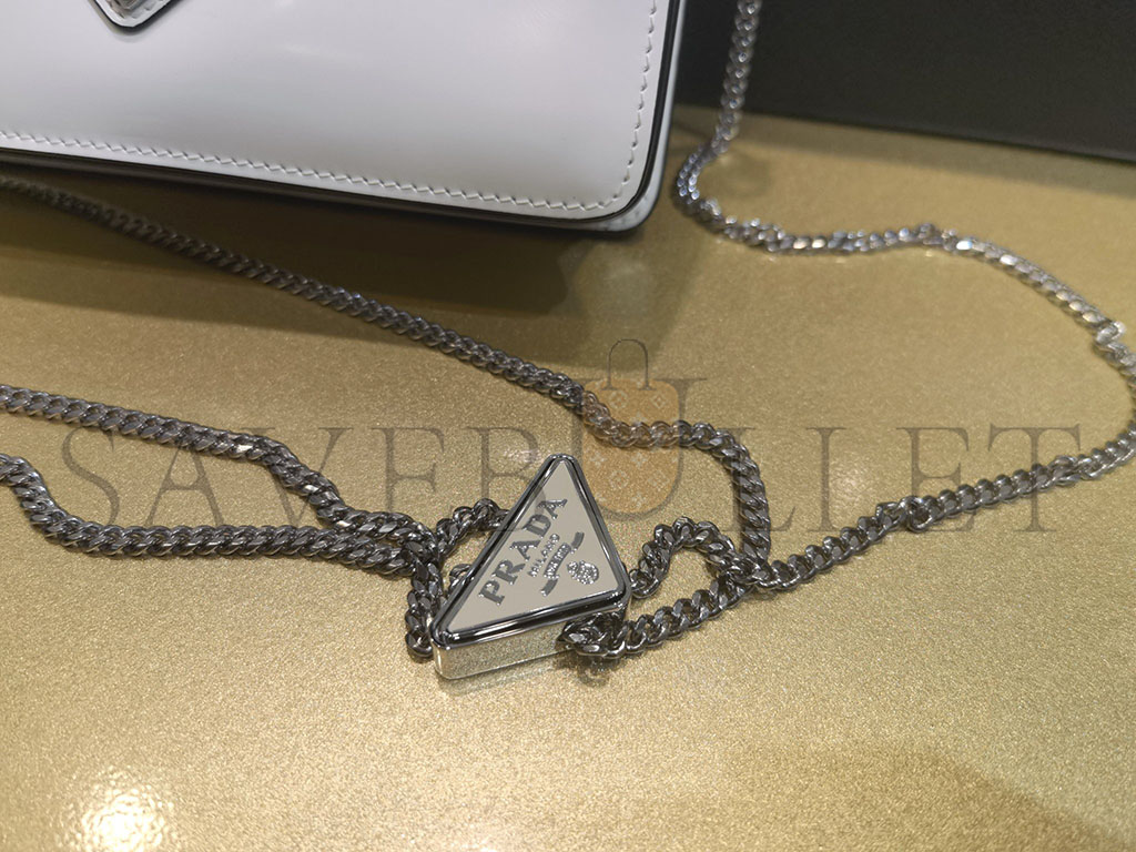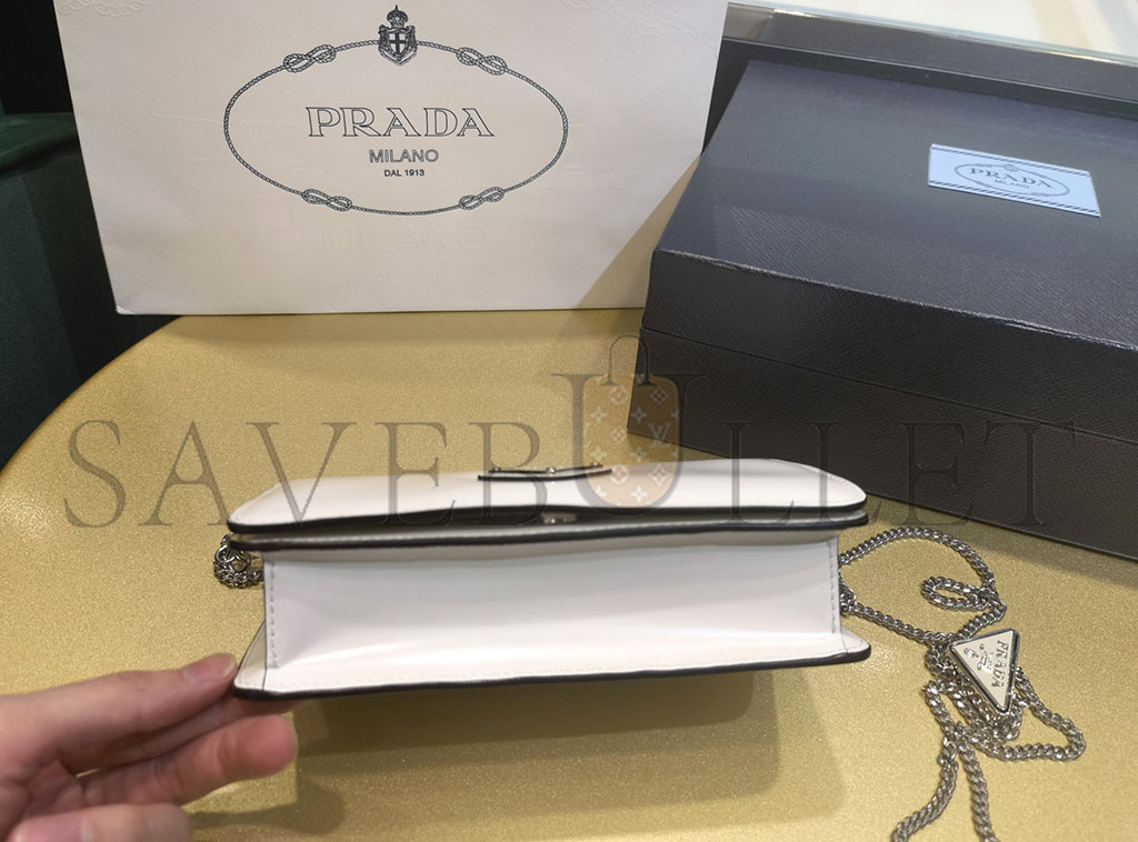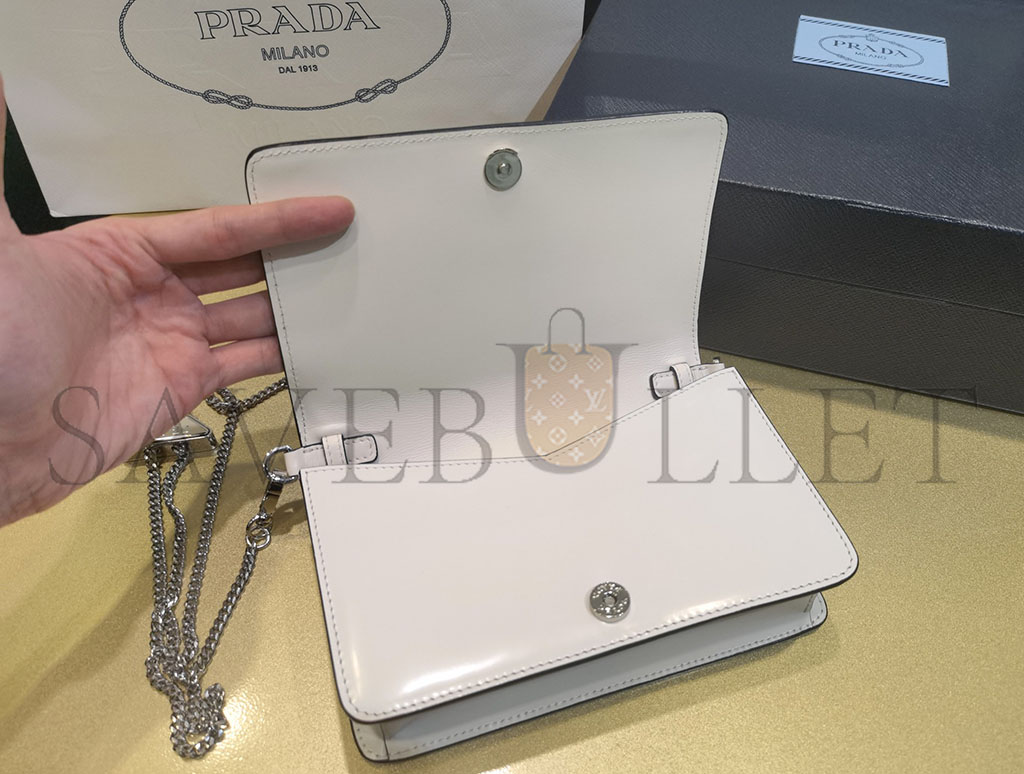 PRADA LOGO LEATHER WALLET ON CHAIN IN WHITE 1BD307 (19*10.5*3.5cm)