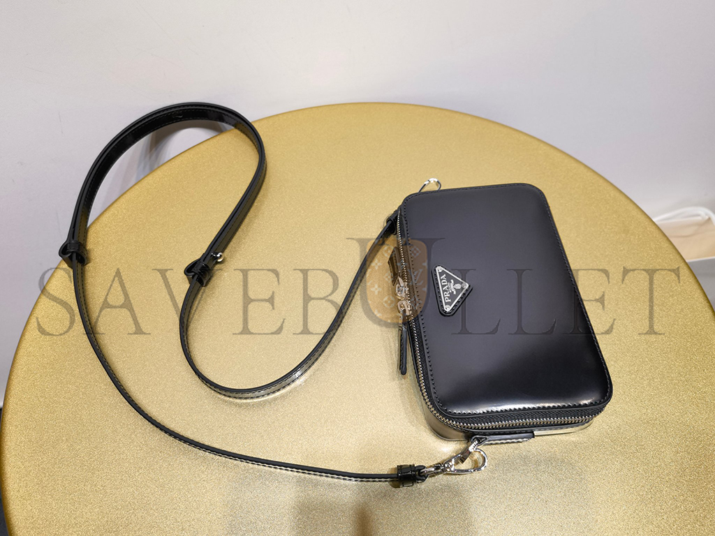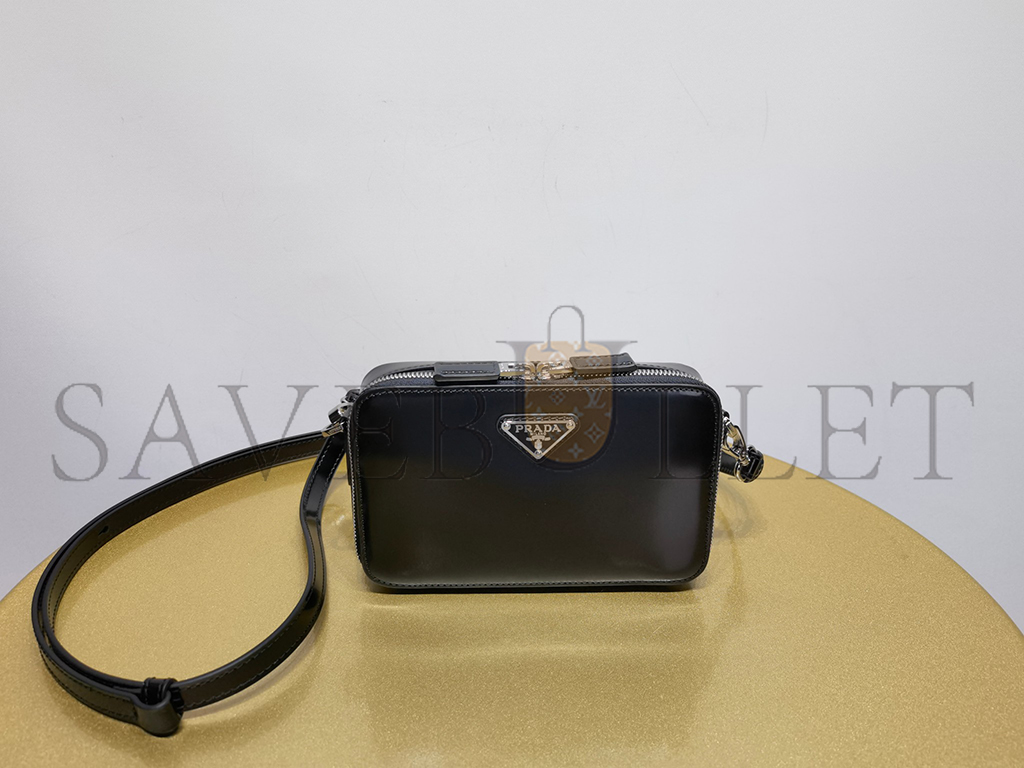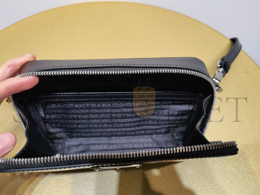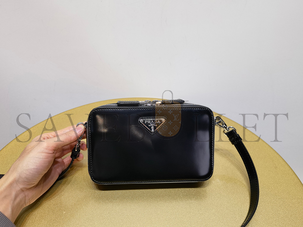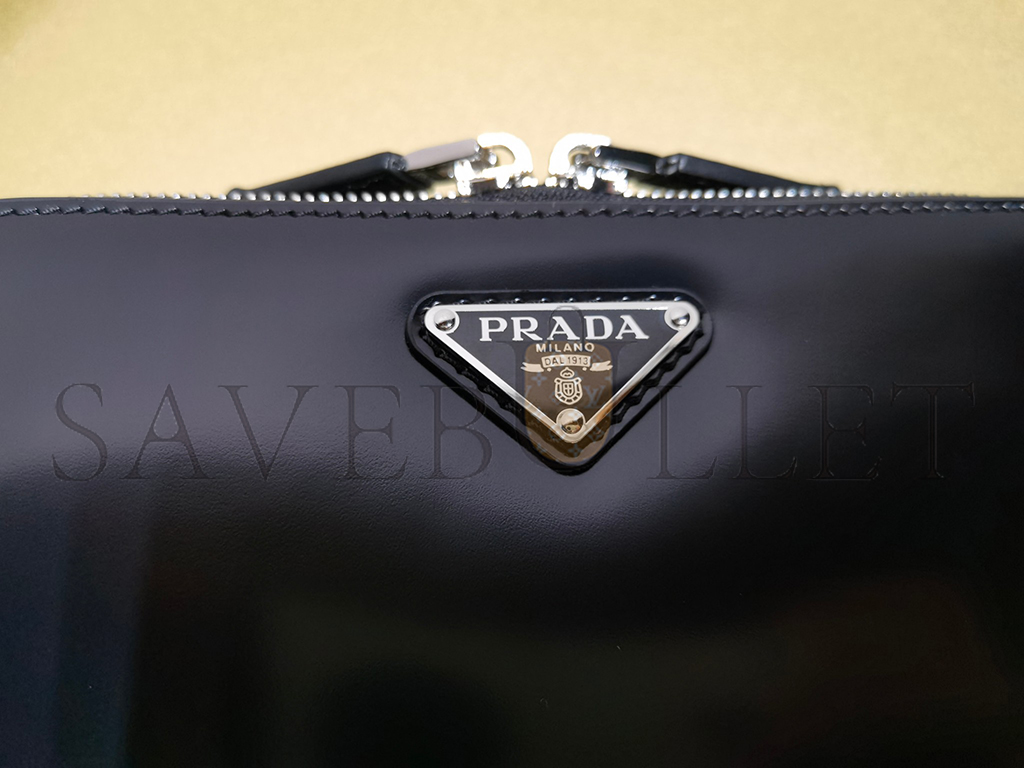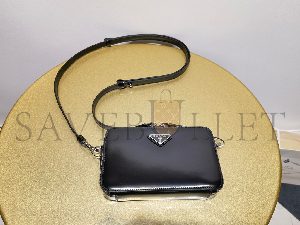 PRADA BLACK LEATHER BRIQUE CROSS BODY BAG 2VH173 (19*11.5*3.5cm)